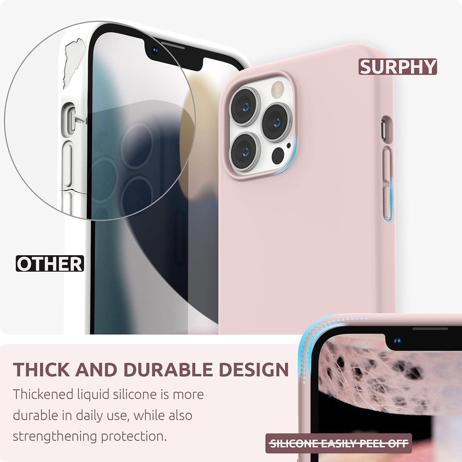 SURPHY Silicone Case Compatible with iPhone 13 Pro Max Case (6.7 inch 2021), Liquid Silicone Phone Case (with Microfiber Lining) Designed for iPhone 13 Pro Max 6.7 (Pink Sand)(Pink Sand)