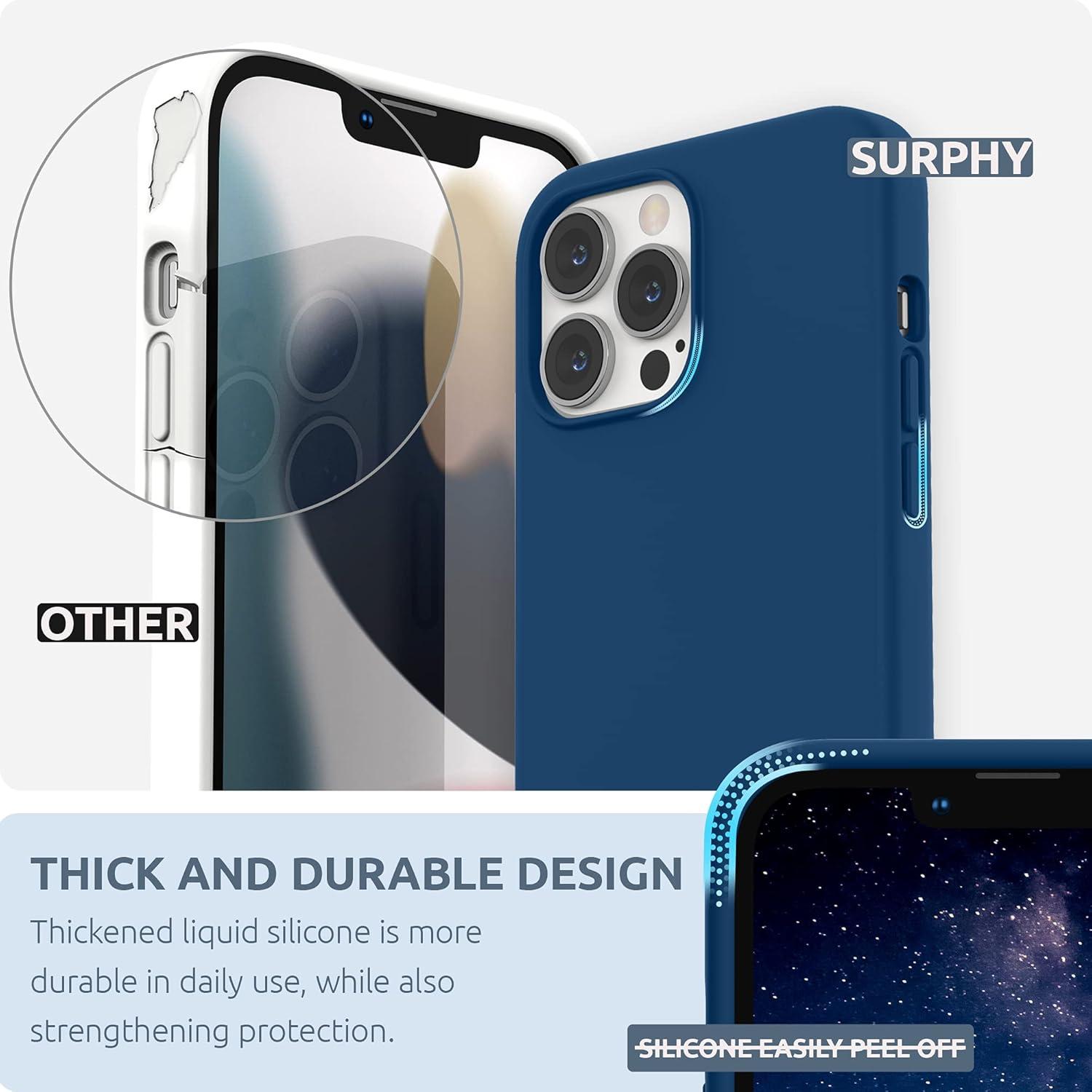 SURPHY Silicone Case Compatible with iPhone 13 Pro Max Case (6.7 inch 2021), Liquid Silicone Phone Case (with Microfiber Lining) Designed for iPhone 13 Pro Max 6.7 (Pink Sand)(Blue Horizon)