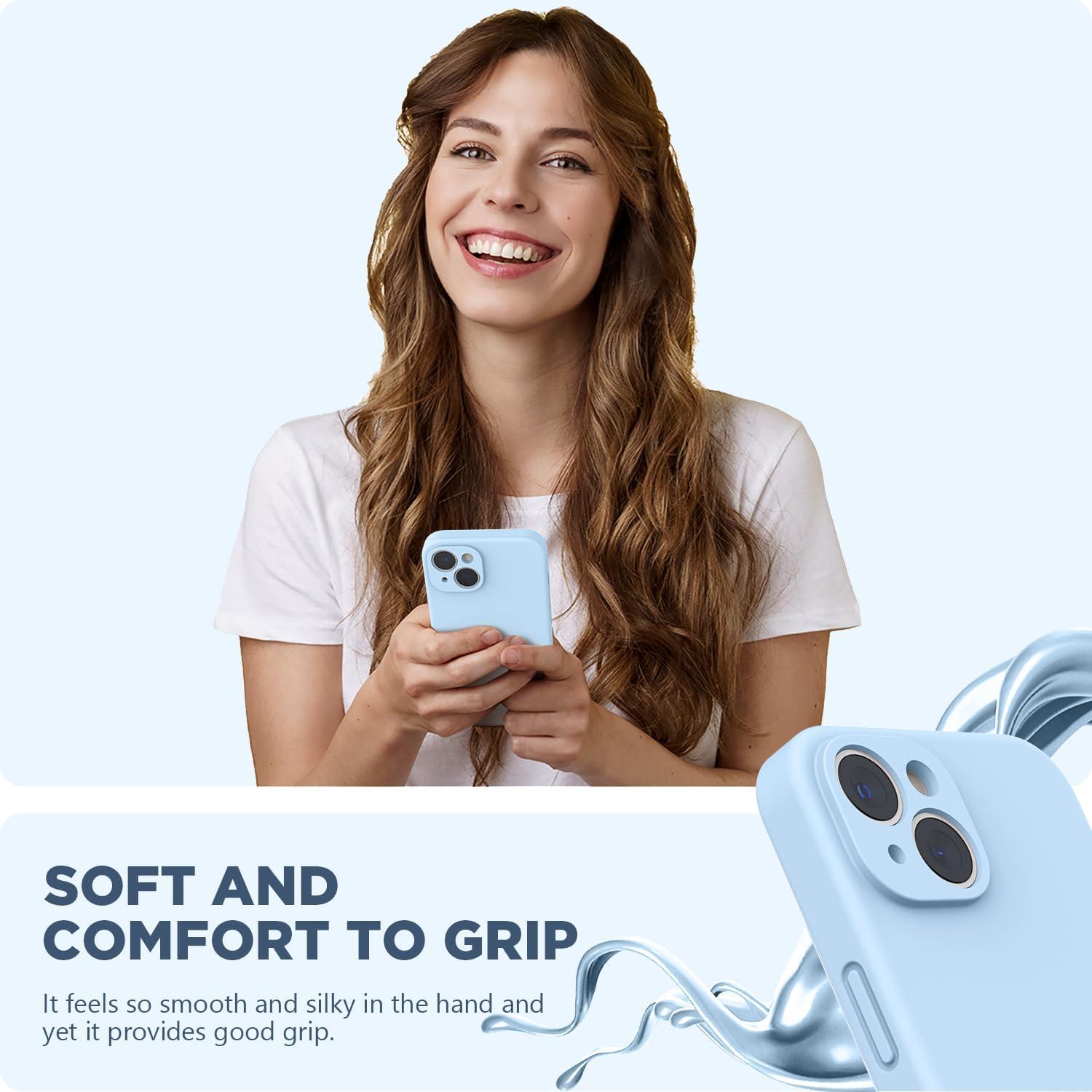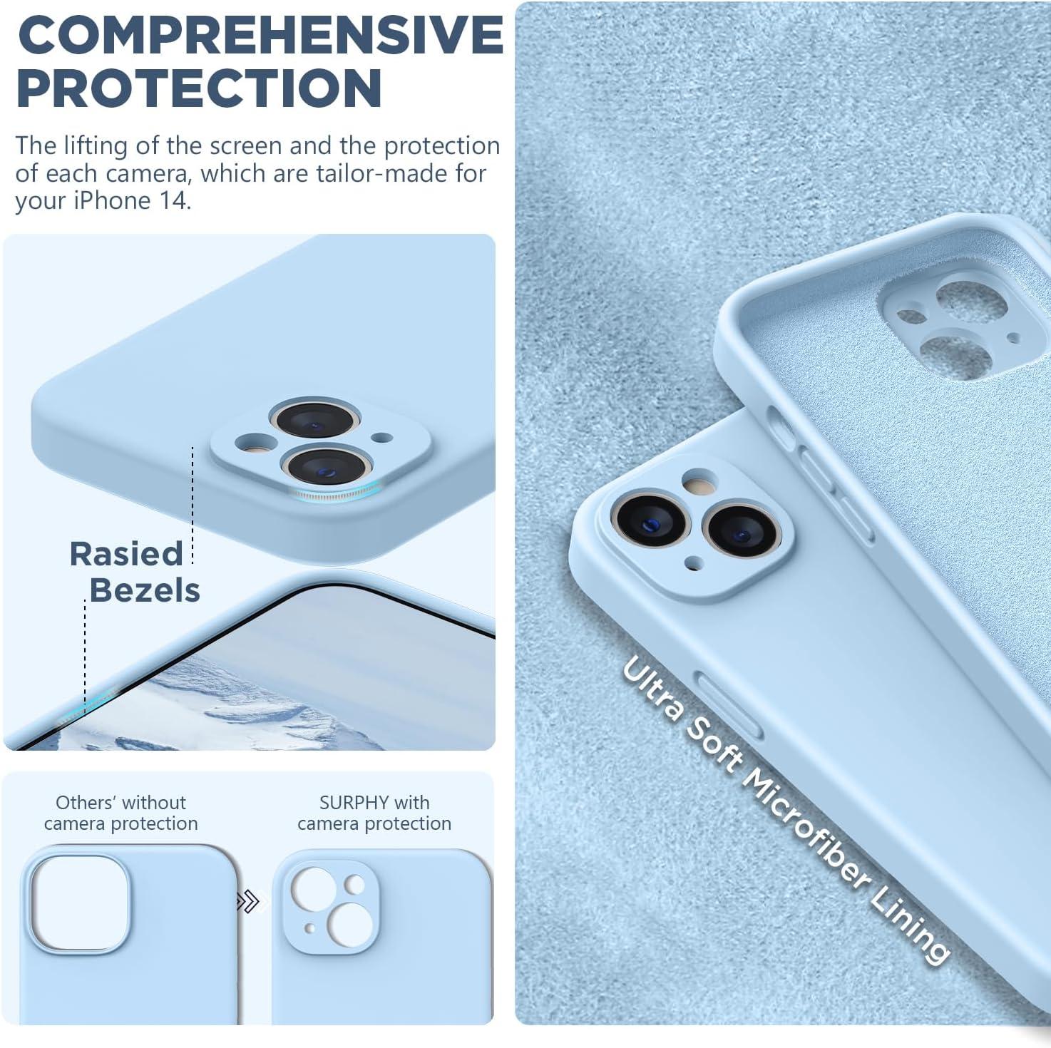 SURPHY Compatible with iPhone 14 Case with Screen Protector (Camera Protection & Soft Microfiber Lining) Liquid Silicone Phone Case 6.1 inch 2022, Red(Light Blue)