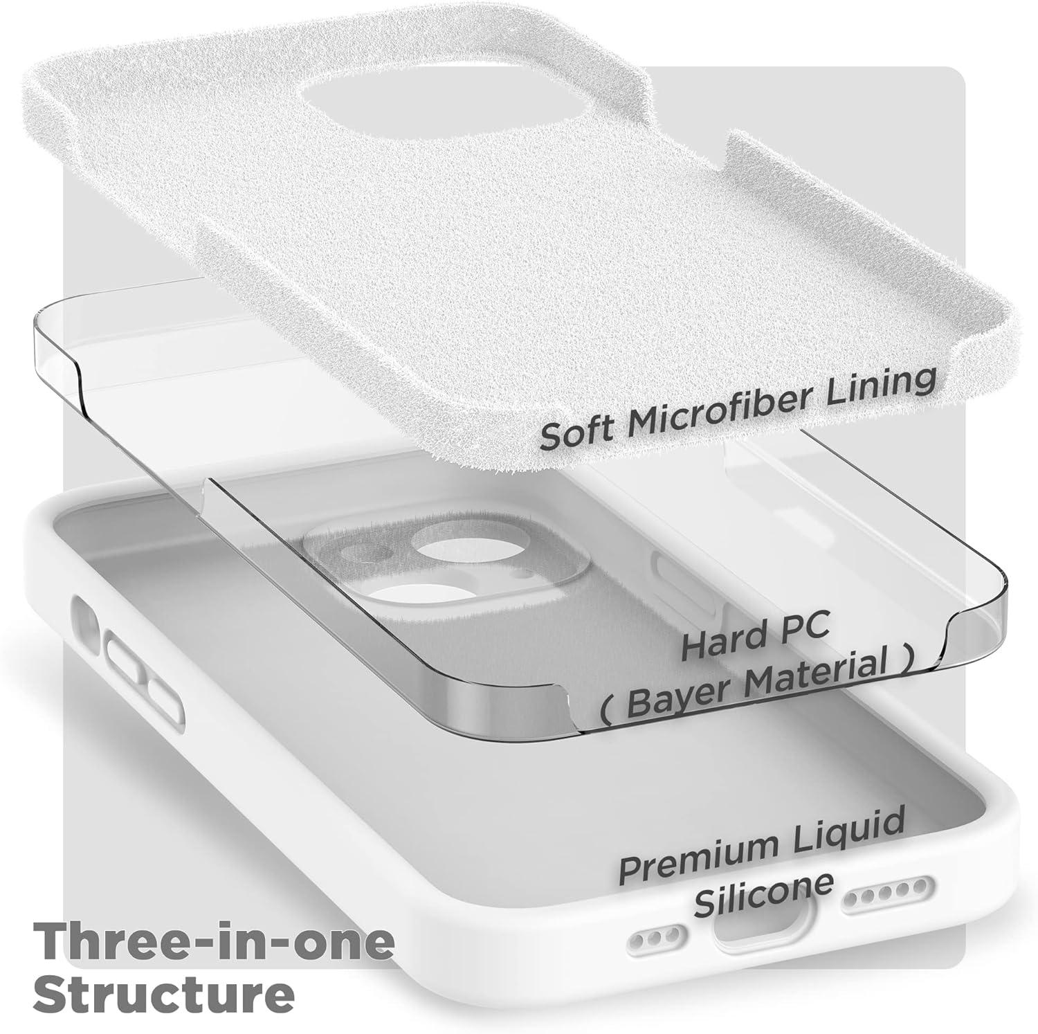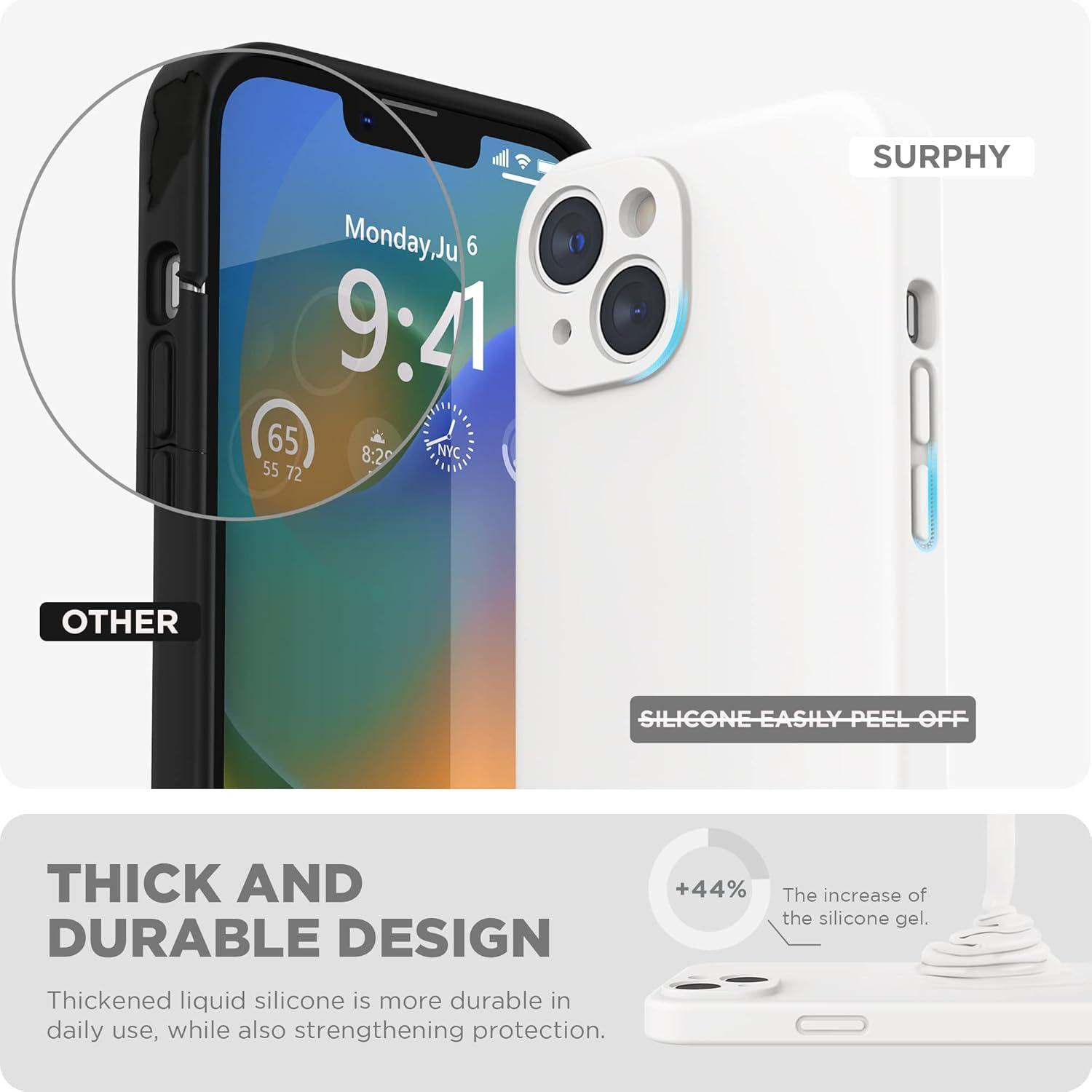 SURPHY Compatible with iPhone 14 Case with Screen Protector (Camera Protection & Soft Microfiber Lining) Liquid Silicone Phone Case 6.1 inch 2022, Red(White)