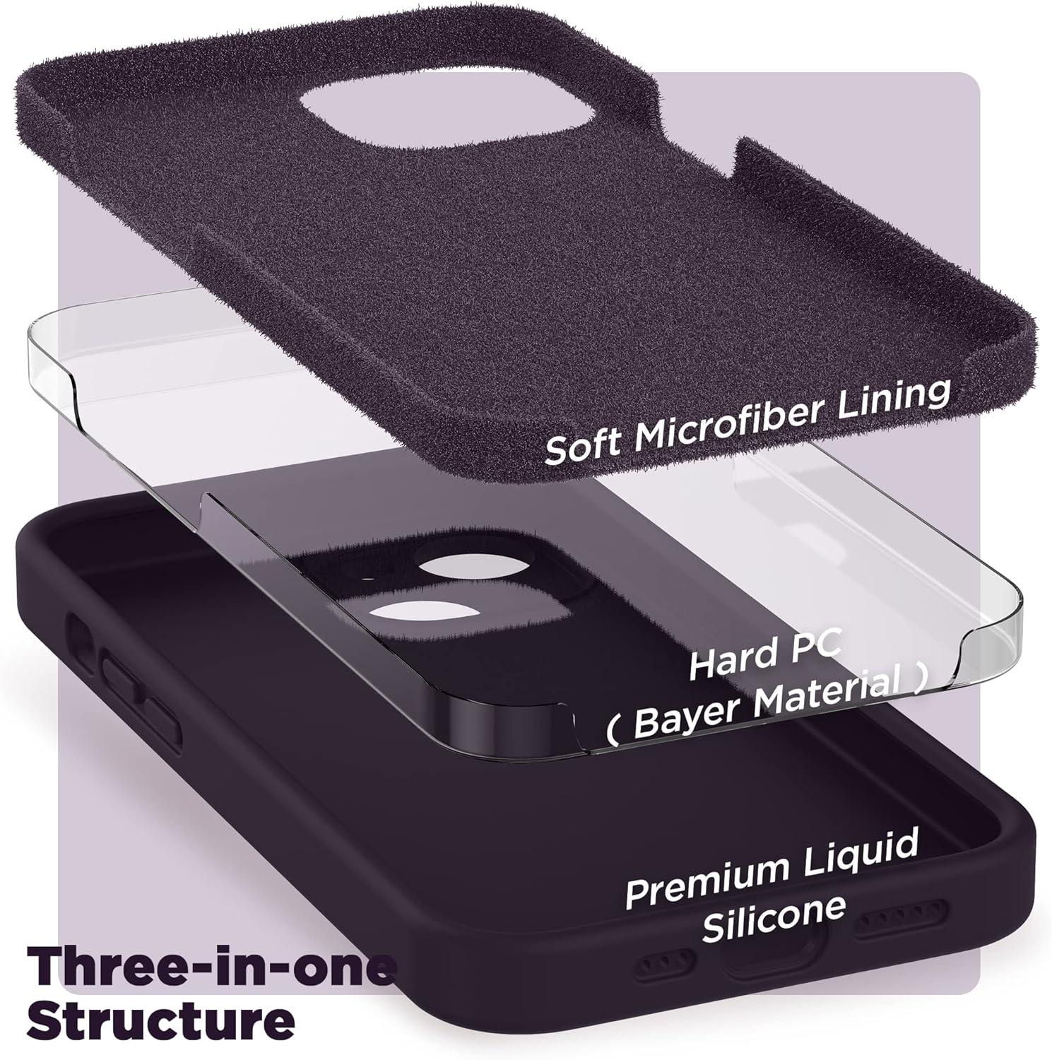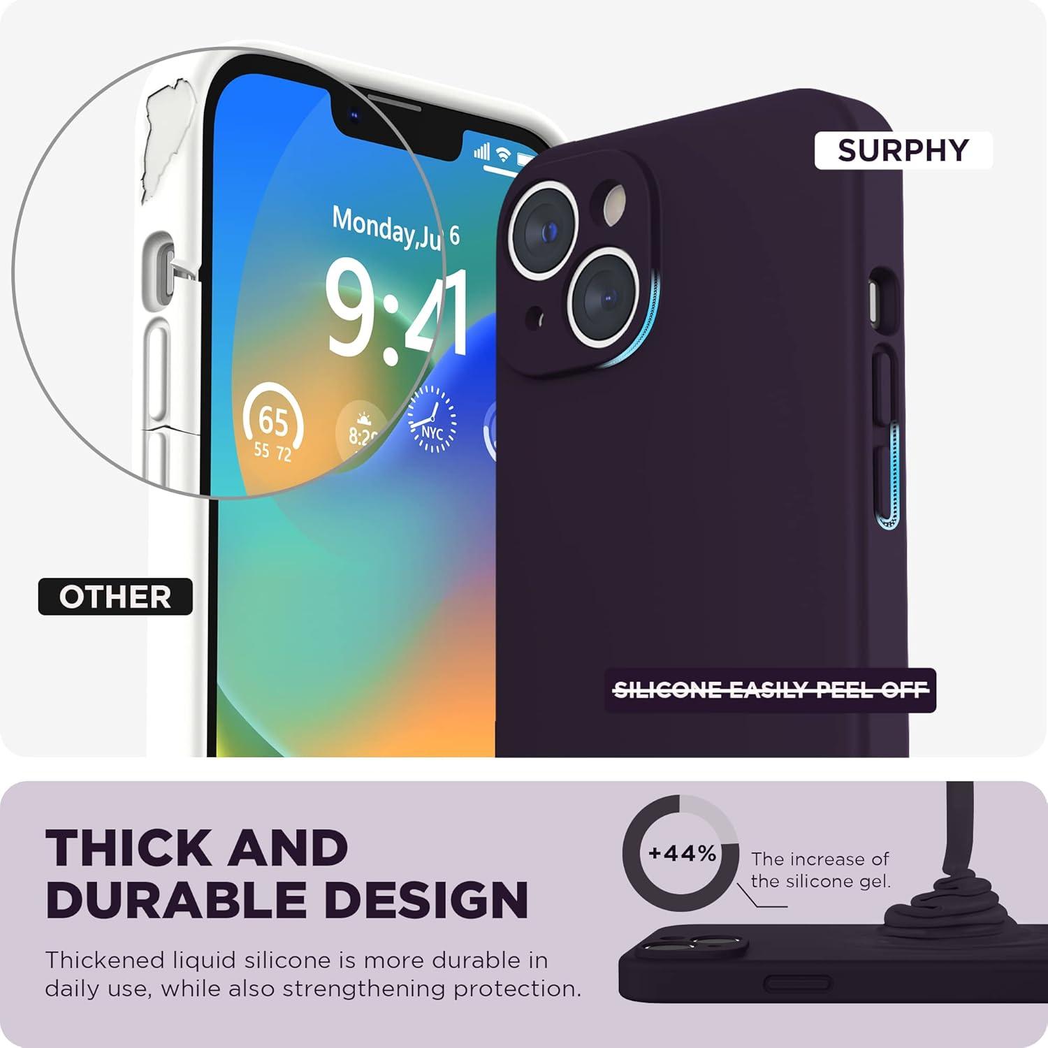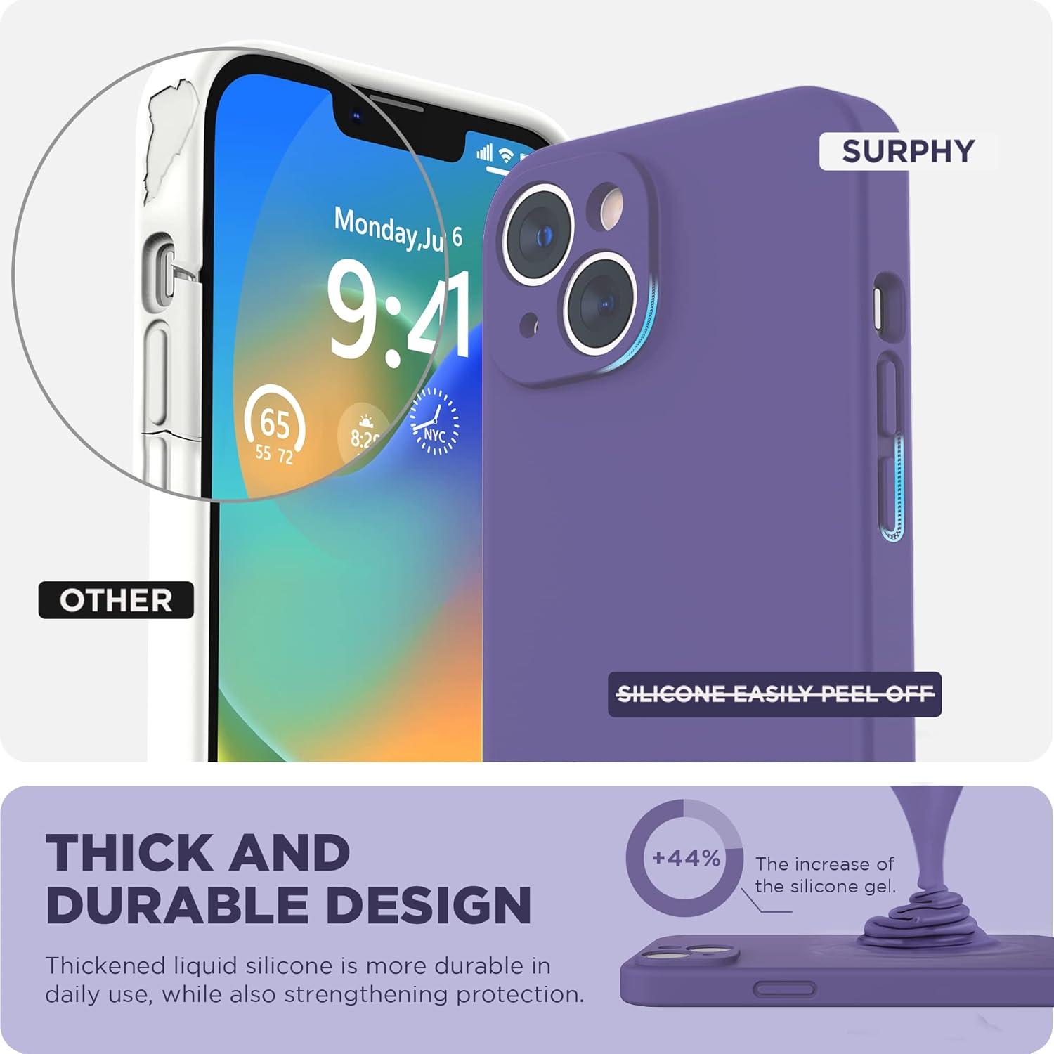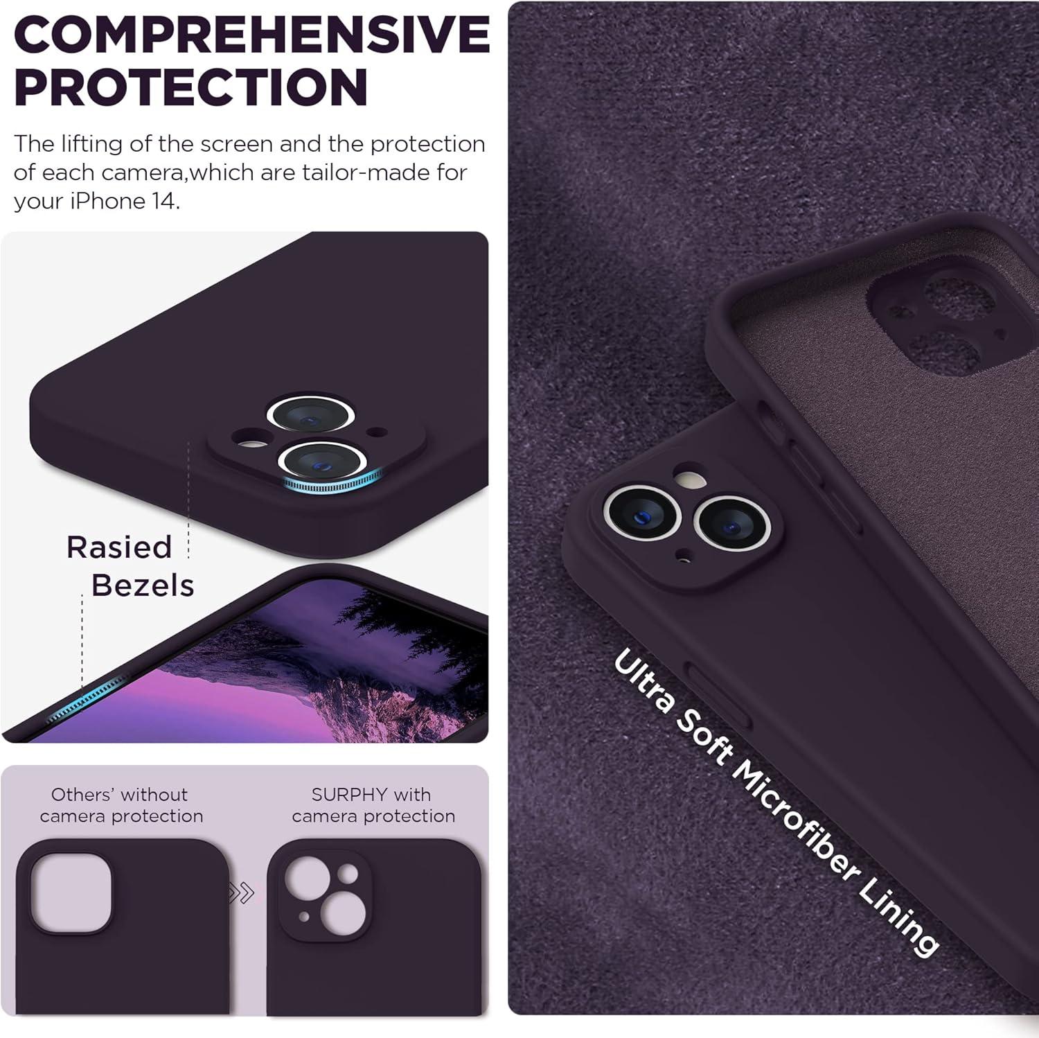 SURPHY Compatible with iPhone 14 Case with Screen Protector (Camera Protection & Soft Microfiber Lining) Liquid Silicone Phone Case 6.1 inch 2022, Red(Iris Purple)