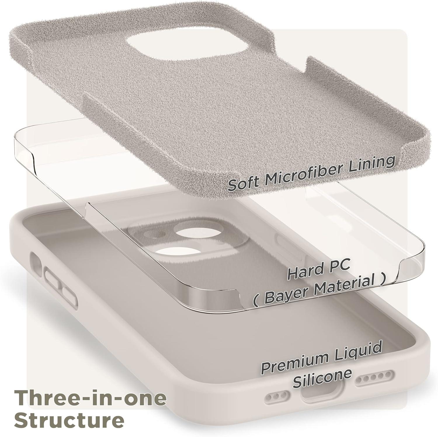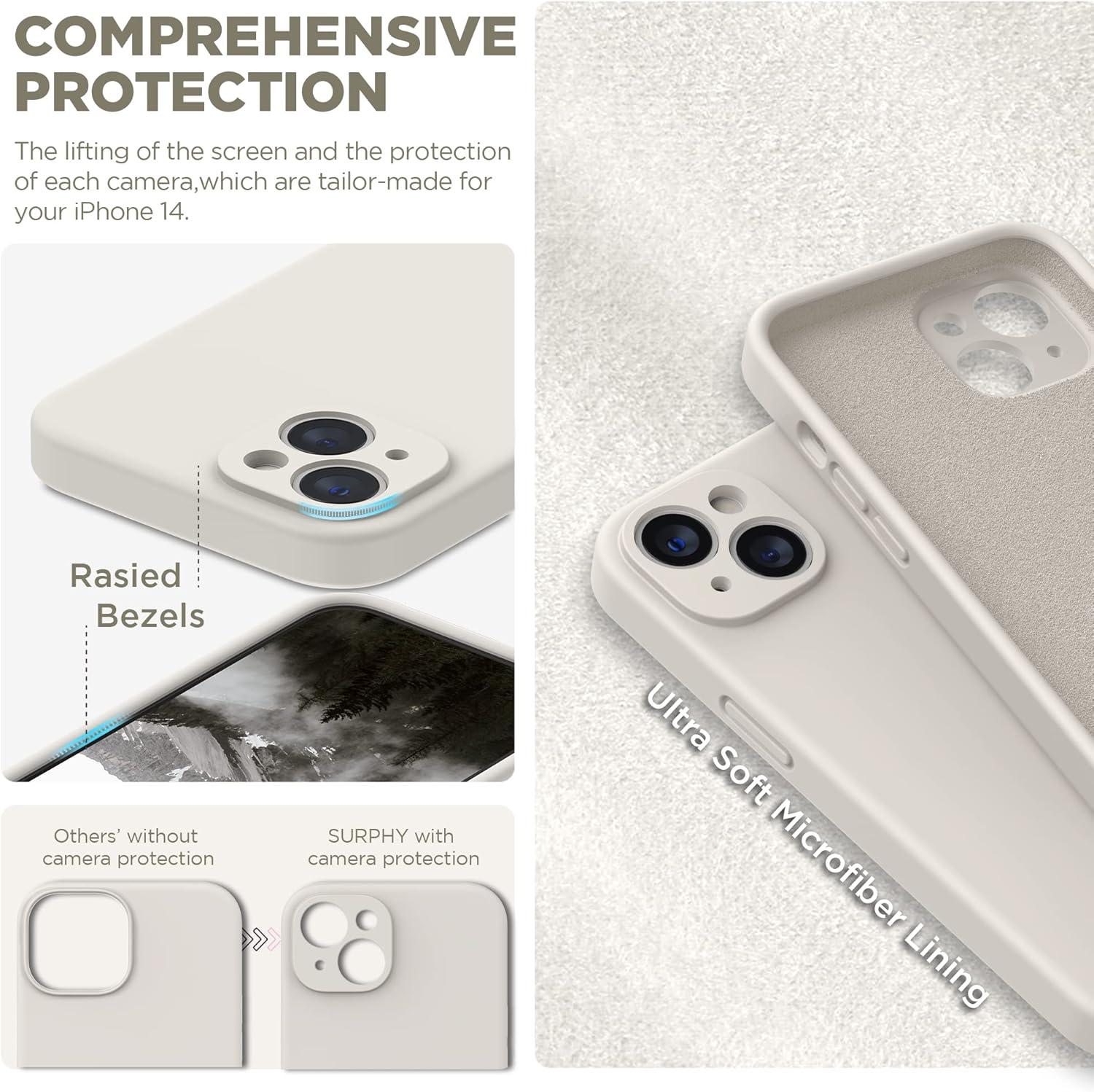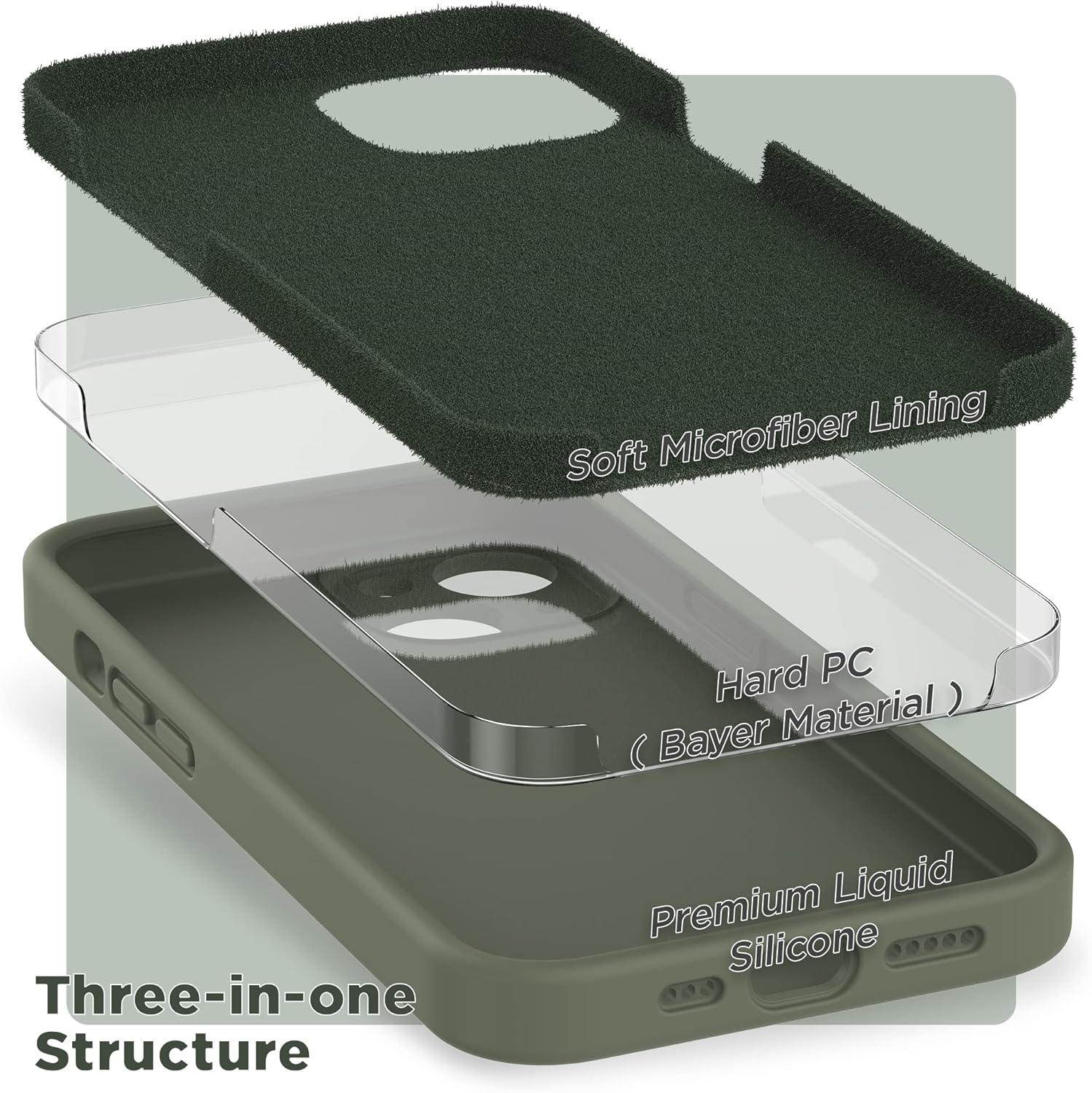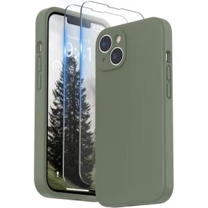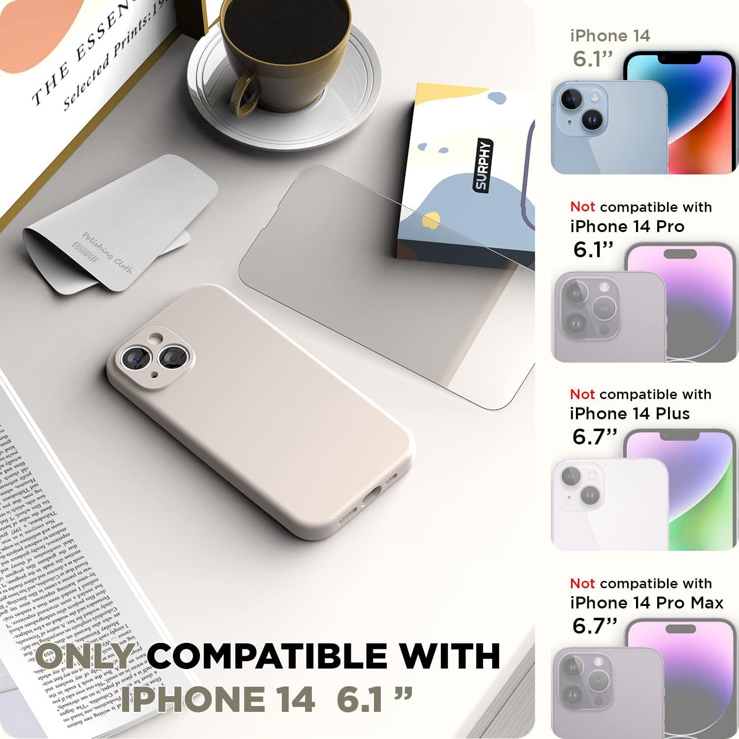 SURPHY (4 in 1 Designed for iPhone 14 Case Compatible with MagSafe (6.1 inch, 2022), with 2 Pack Screen Protector + Camera Cover, Liquid Silicone Phone Case (Cactus Green)(Stone)