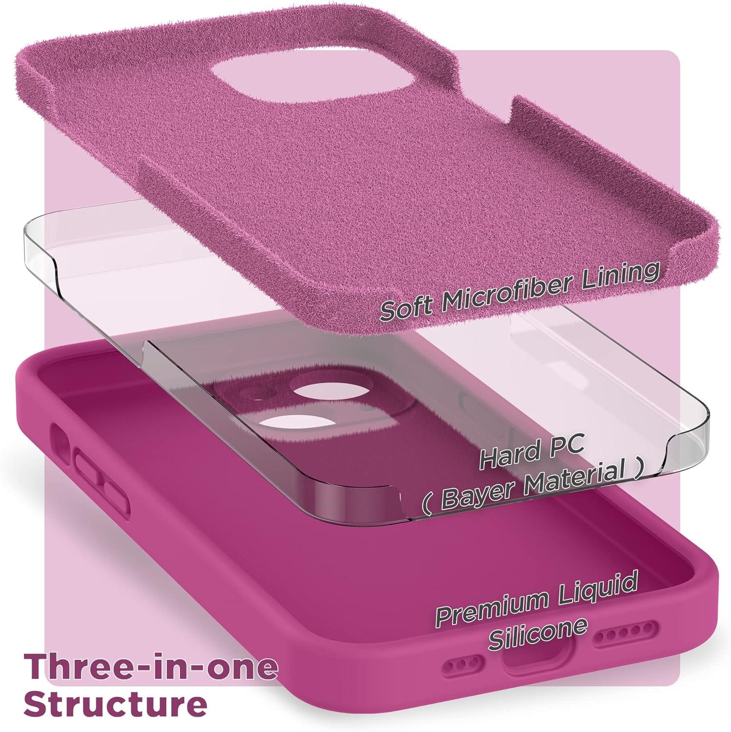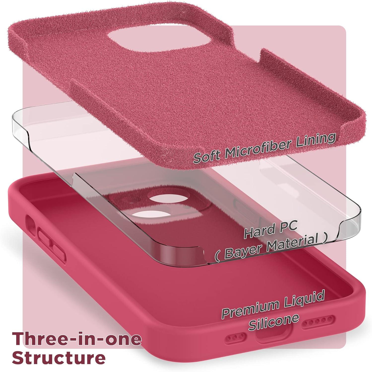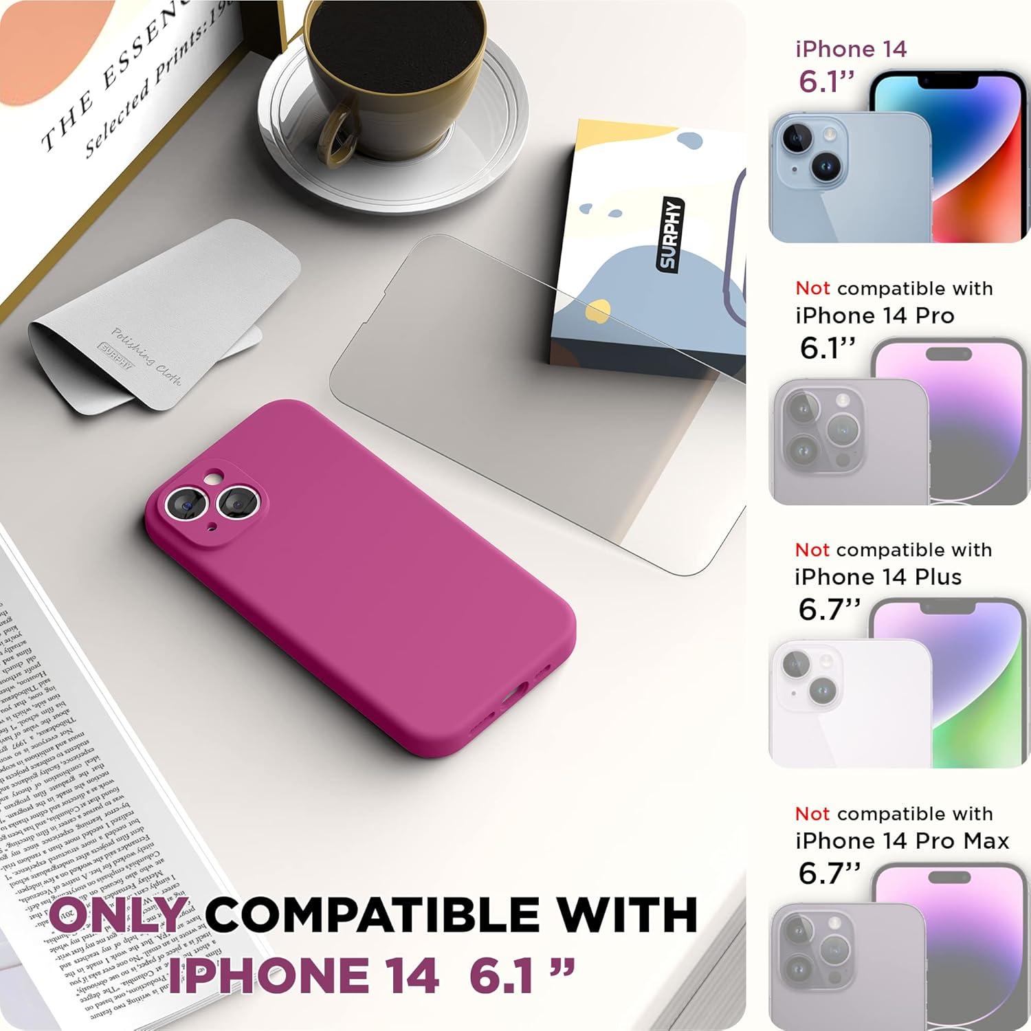 SURPHY Compatible with iPhone 14 Case with Screen Protector (Camera Protection & Soft Microfiber Lining) Liquid Silicone Phone Case 6.1 inch 2022, Red(Hot Pink)
