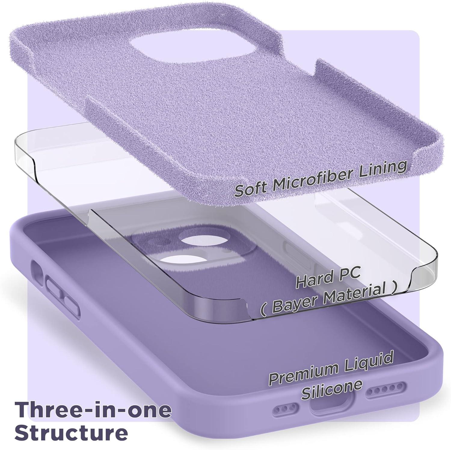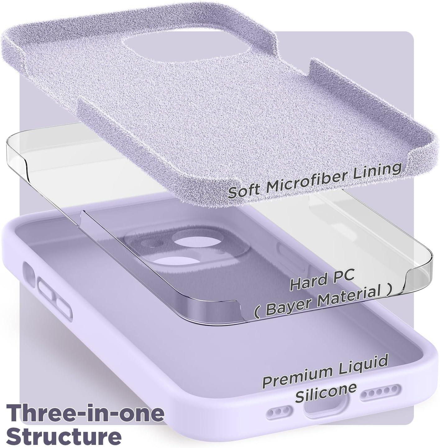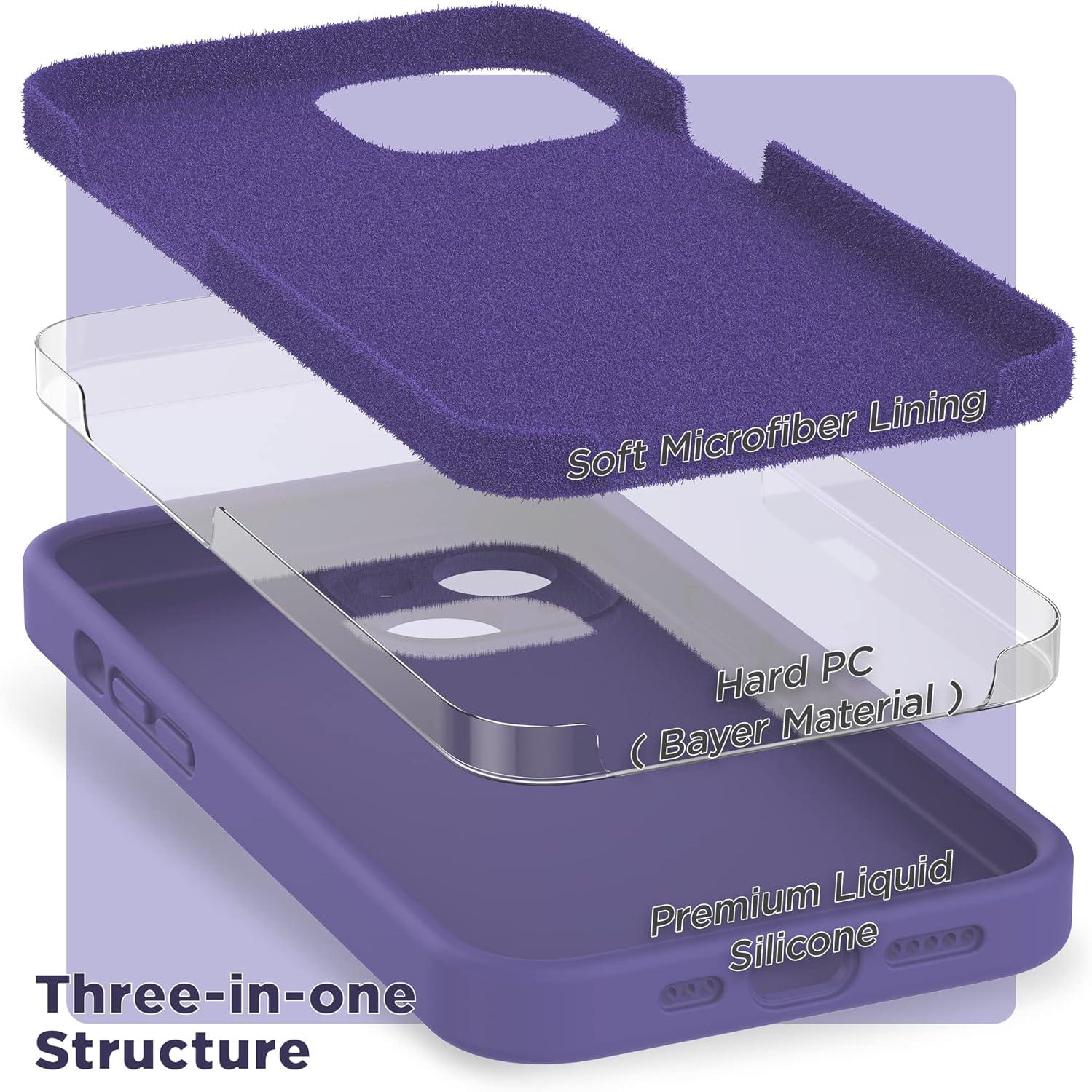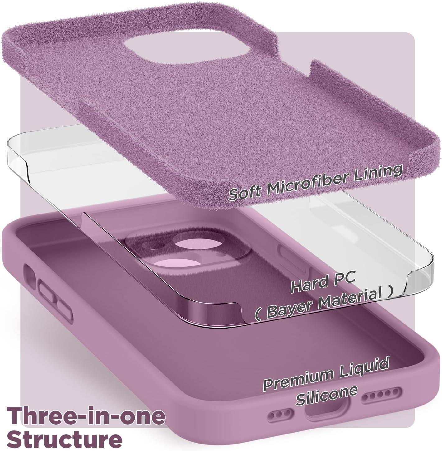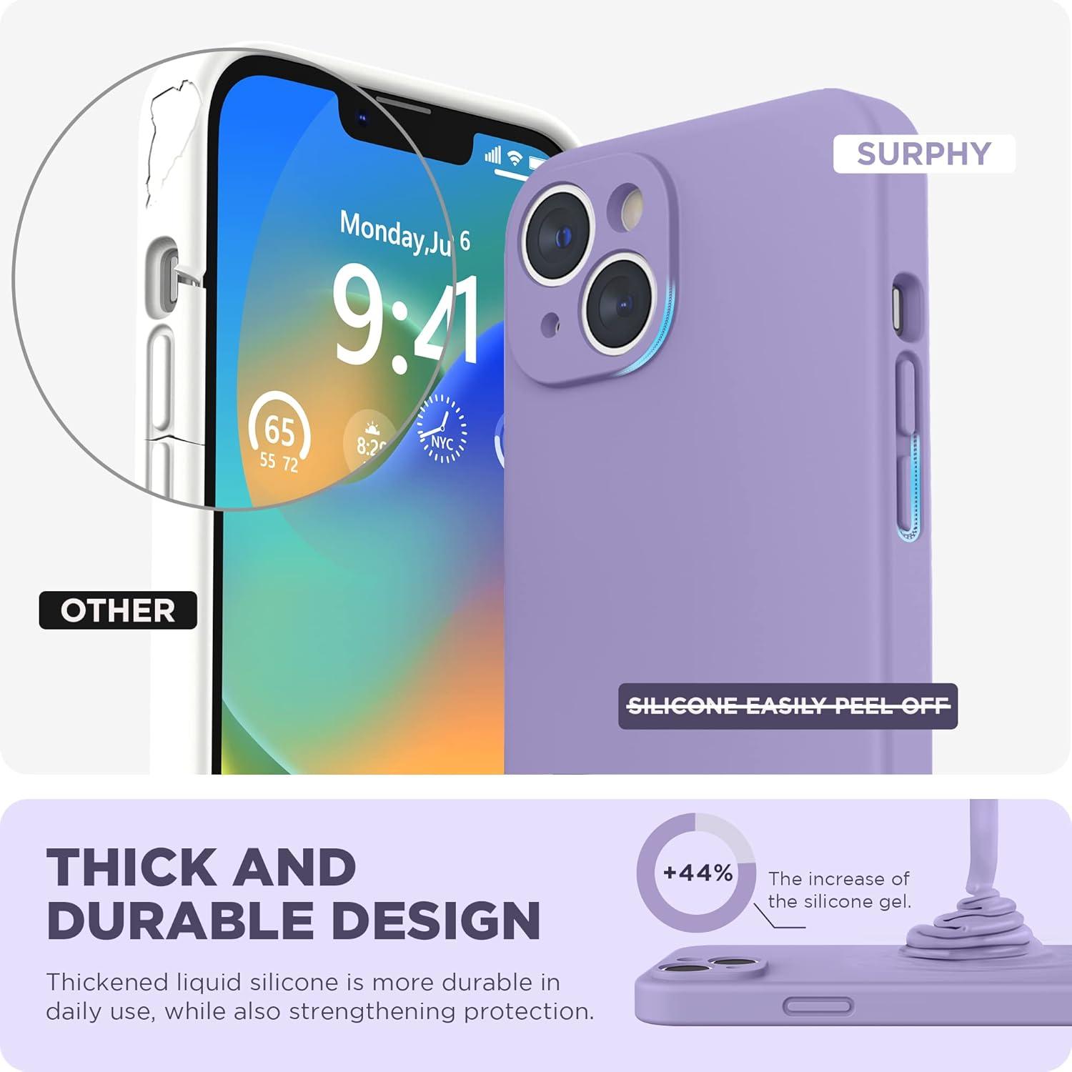 SURPHY Compatible with iPhone 14 Case with Screen Protector (Camera Protection & Soft Microfiber Lining) Liquid Silicone Phone Case 6.1 inch 2022, Red(Lilac Purple)