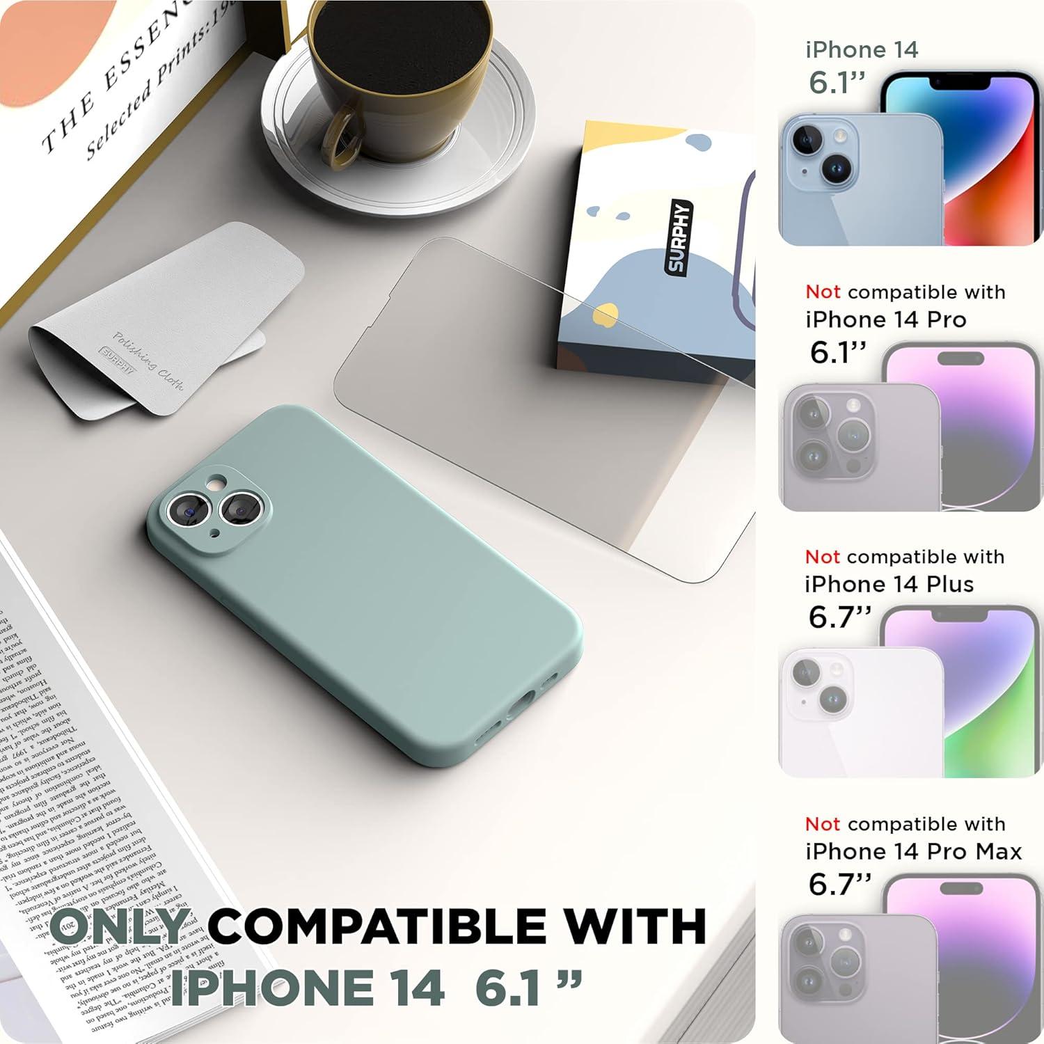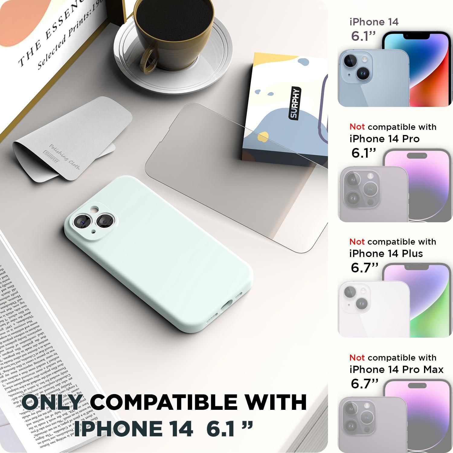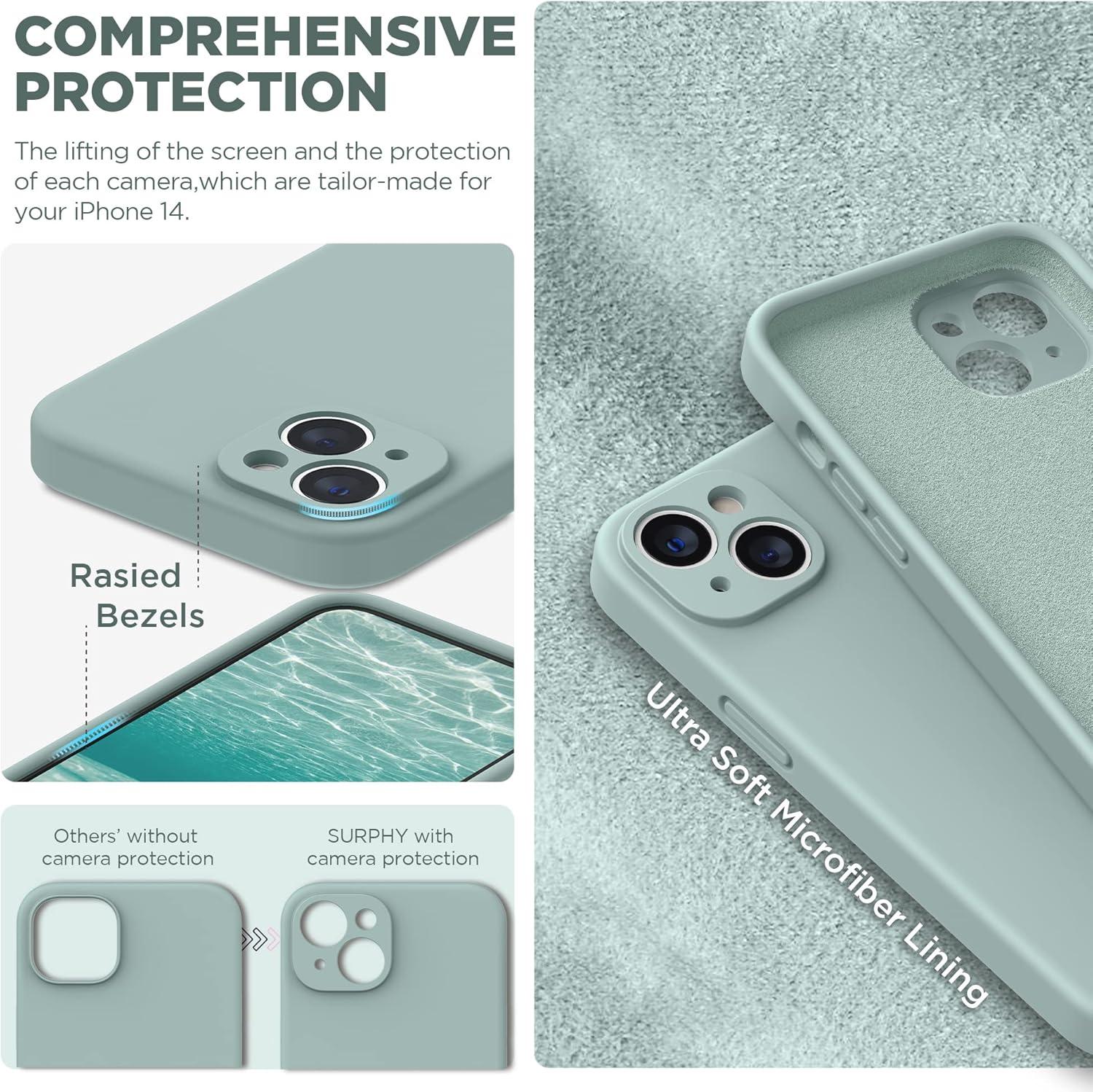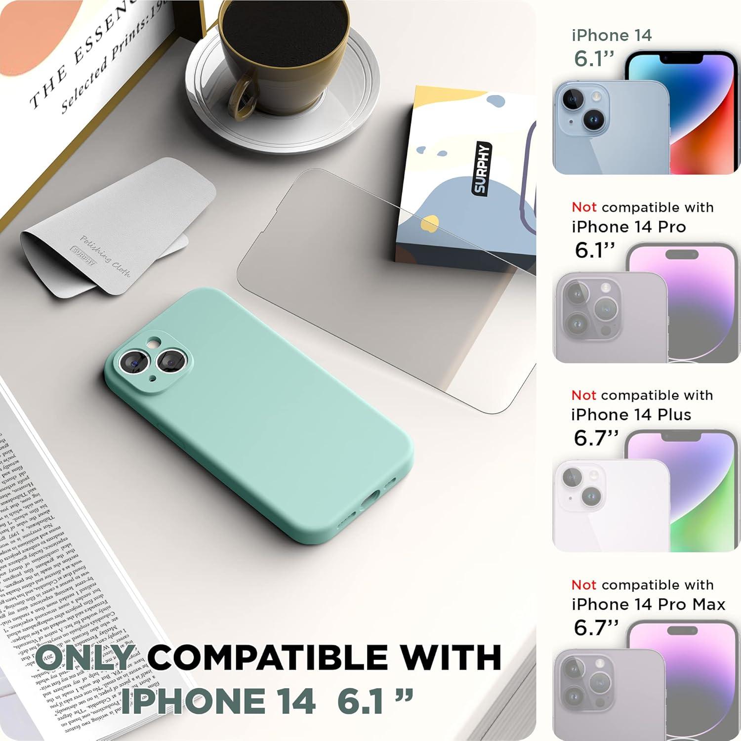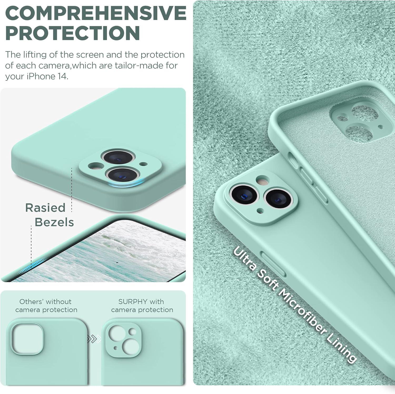 SURPHY (4 in 1 Designed for iPhone 14 Case Compatible with MagSafe (6.1 inch, 2022), with 2 Pack Screen Protector + Camera Cover, Liquid Silicone Phone Case (Cactus Green)(Soft Mint)
