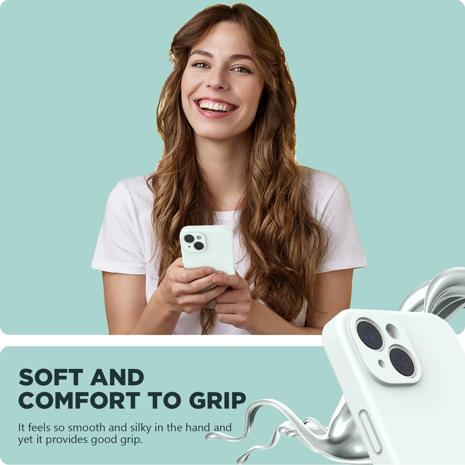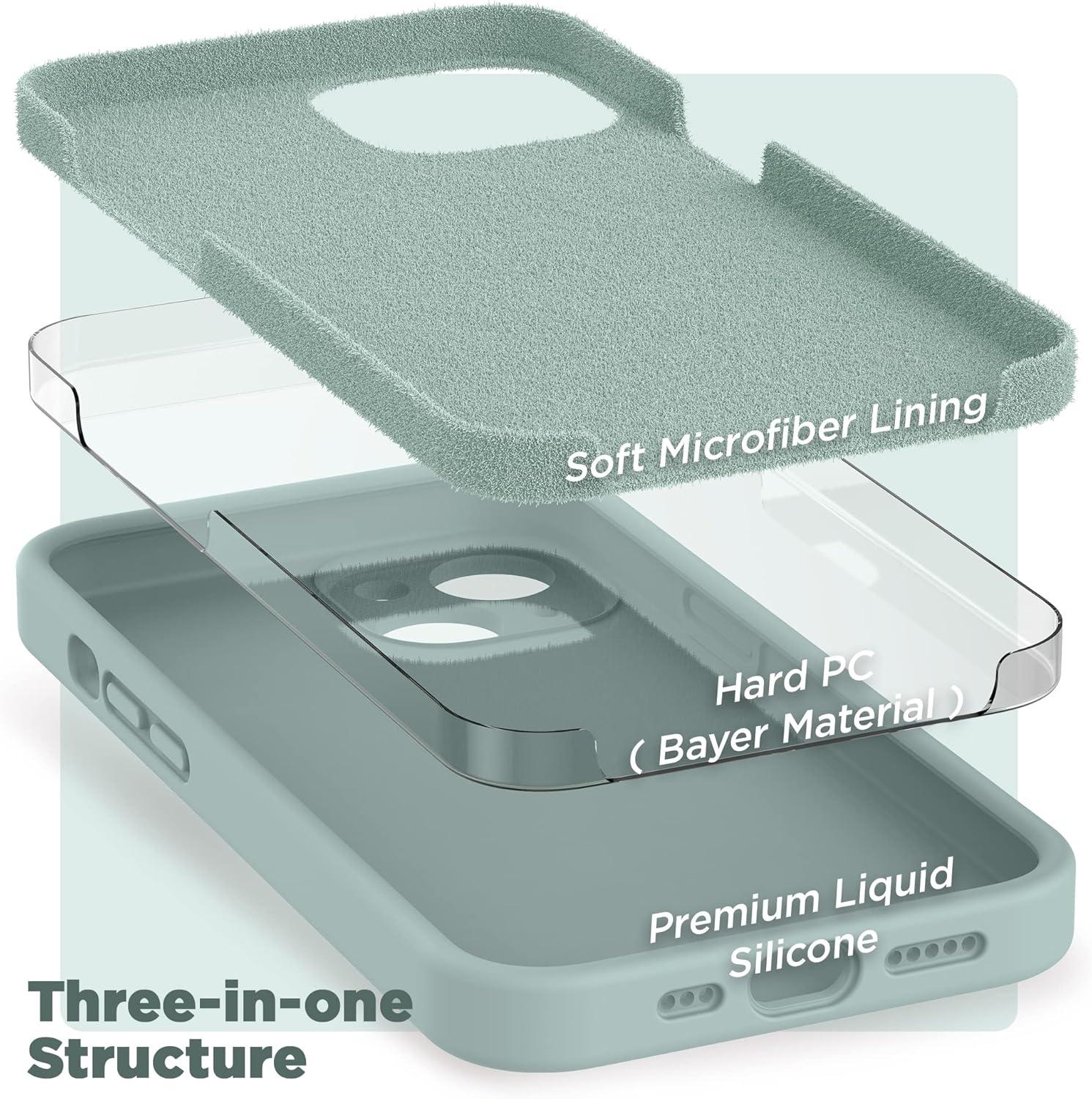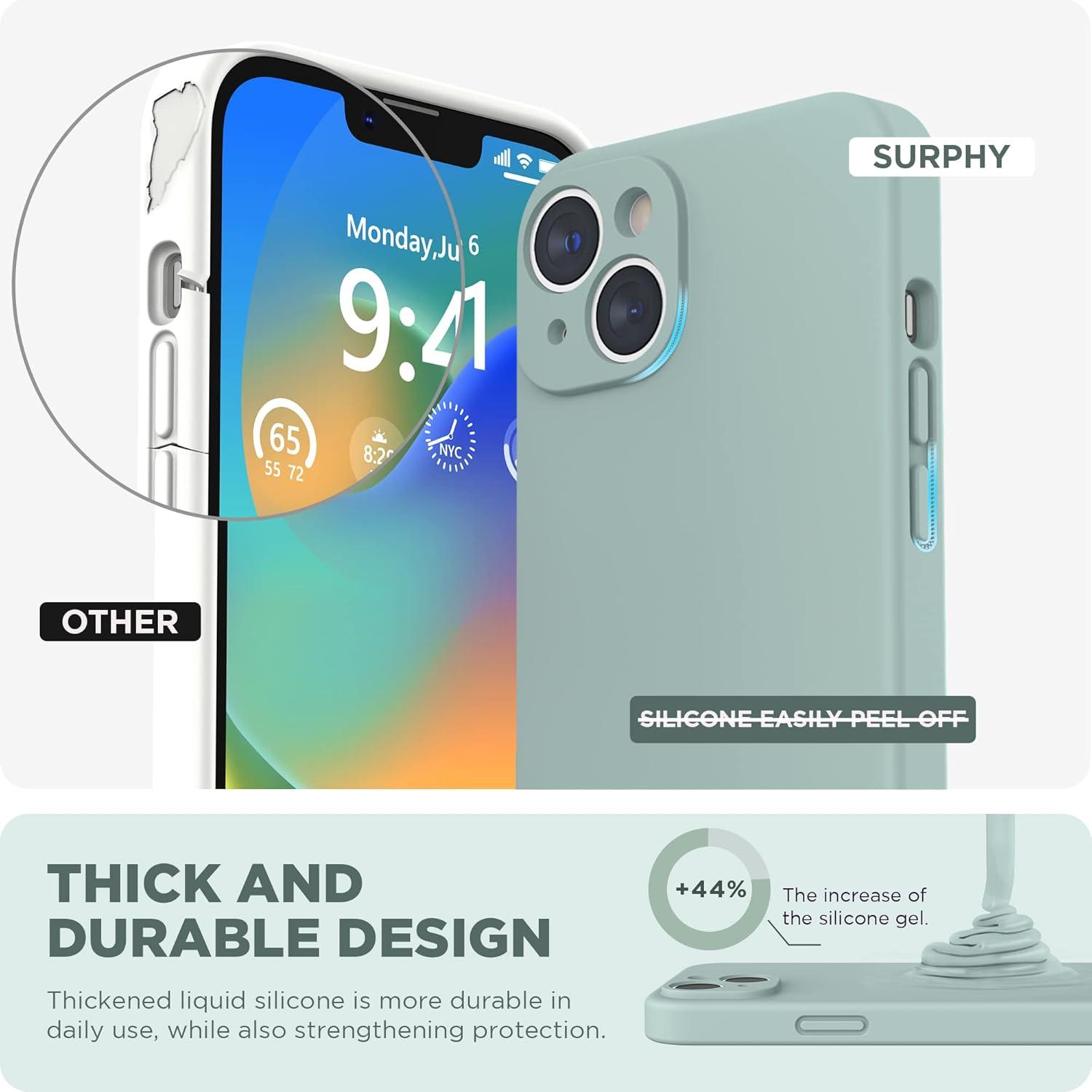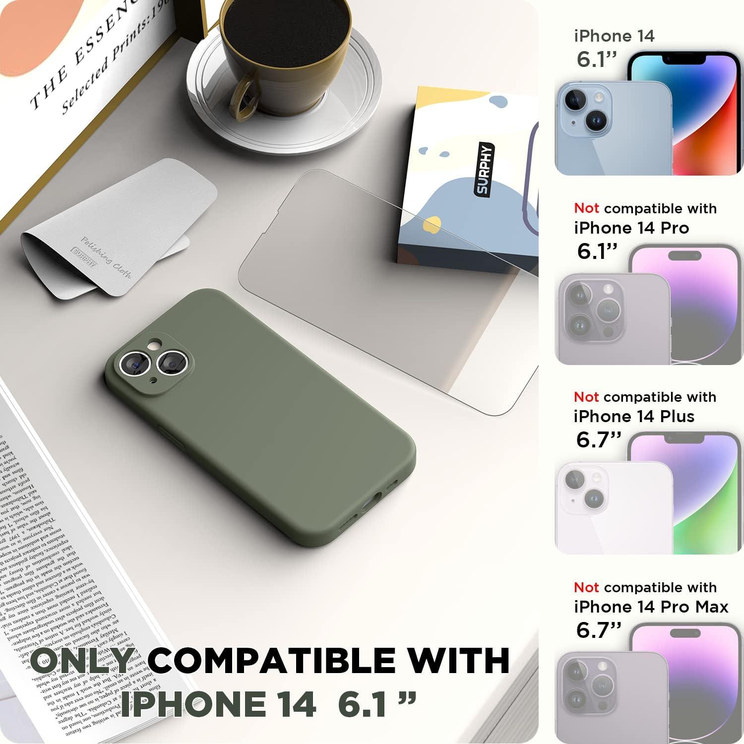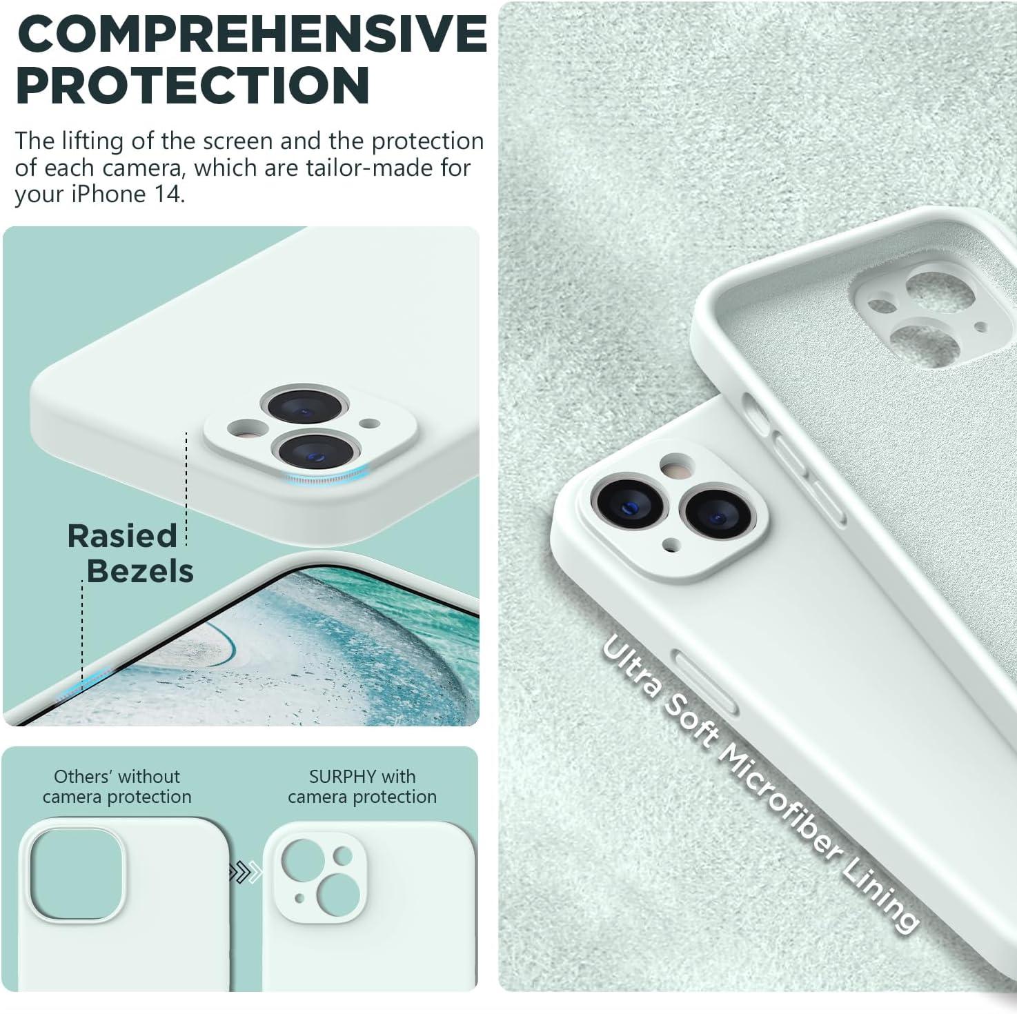 SURPHY (4 in 1 Designed for iPhone 14 Case Compatible with MagSafe (6.1 inch, 2022), with 2 Pack Screen Protector + Camera Cover, Liquid Silicone Phone Case (Cactus Green)(Soft Mint)