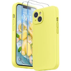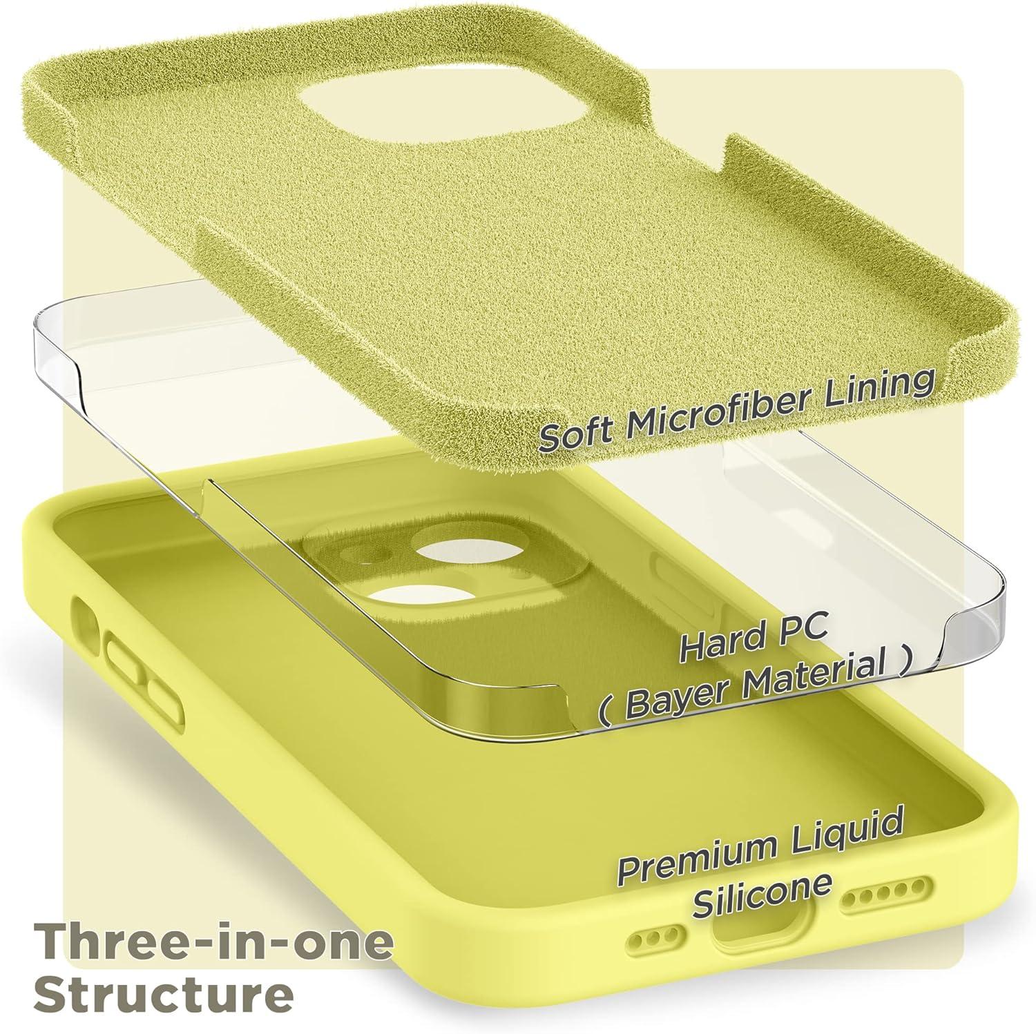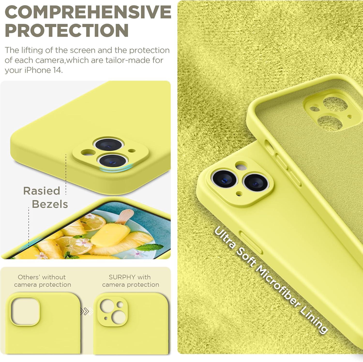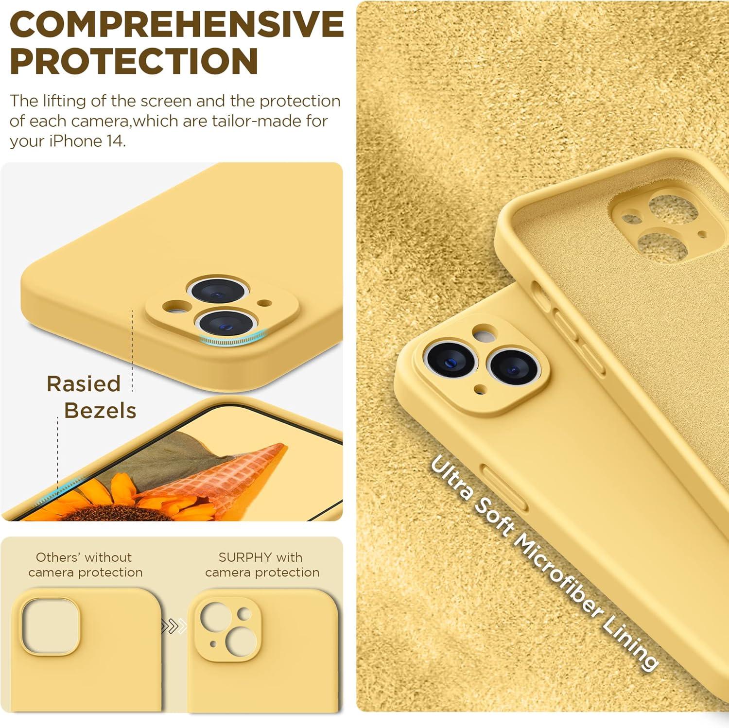 SURPHY (4 in 1 Designed for iPhone 14 Case Compatible with MagSafe (6.1 inch, 2022), with 2 Pack Screen Protector + Camera Cover, Liquid Silicone Phone Case (Cactus Green)(Sunshine)