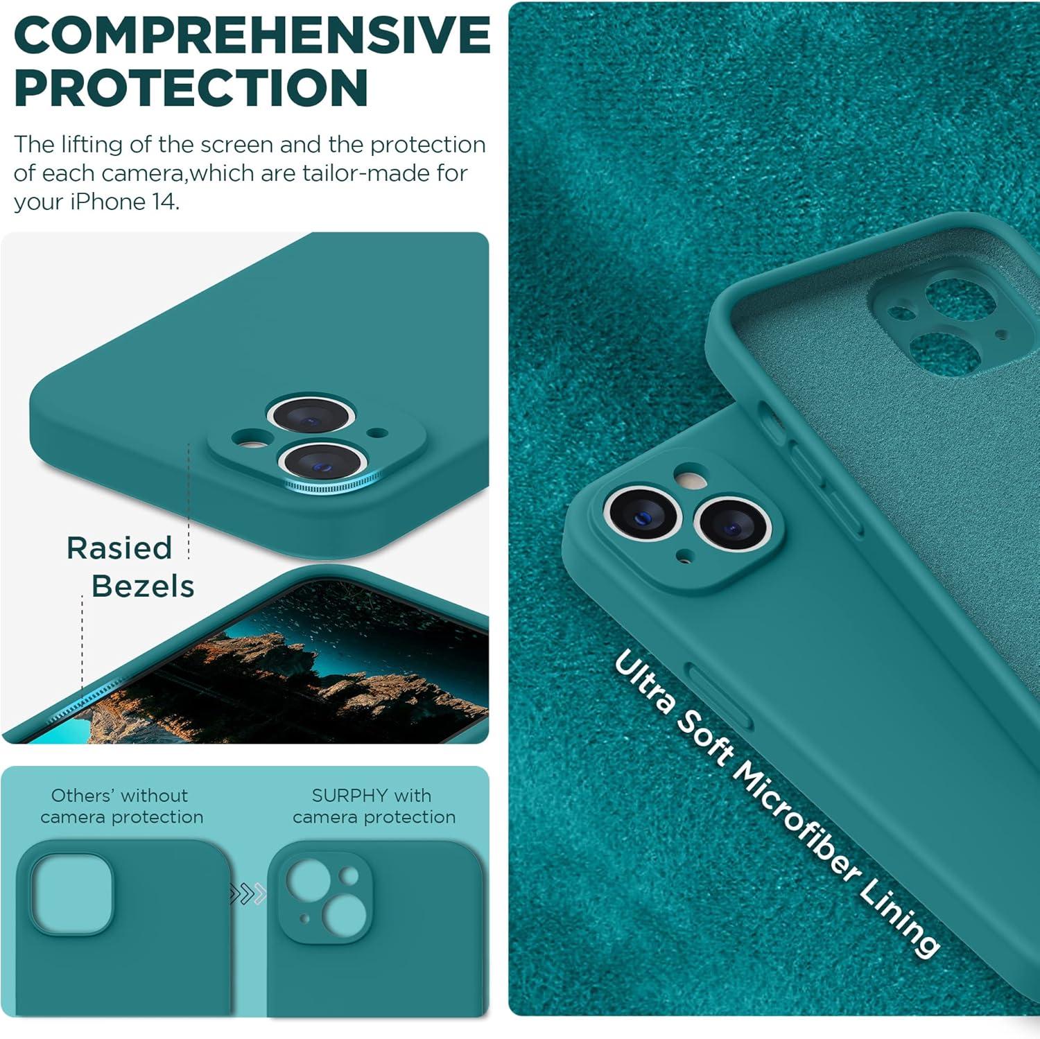 SURPHY (4 in 1 Designed for iPhone 14 Case Compatible with MagSafe (6.1 inch, 2022), with 2 Pack Screen Protector + Camera Cover, Liquid Silicone Phone Case (Cactus Green)(Blue Jay)
