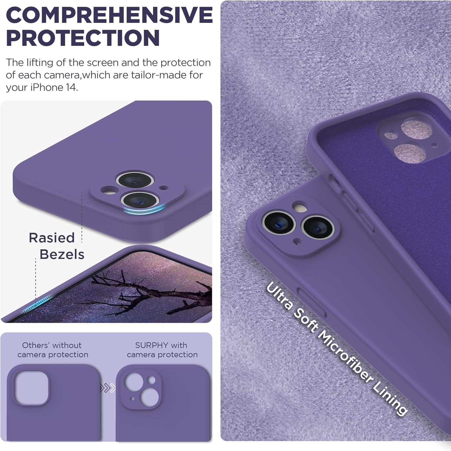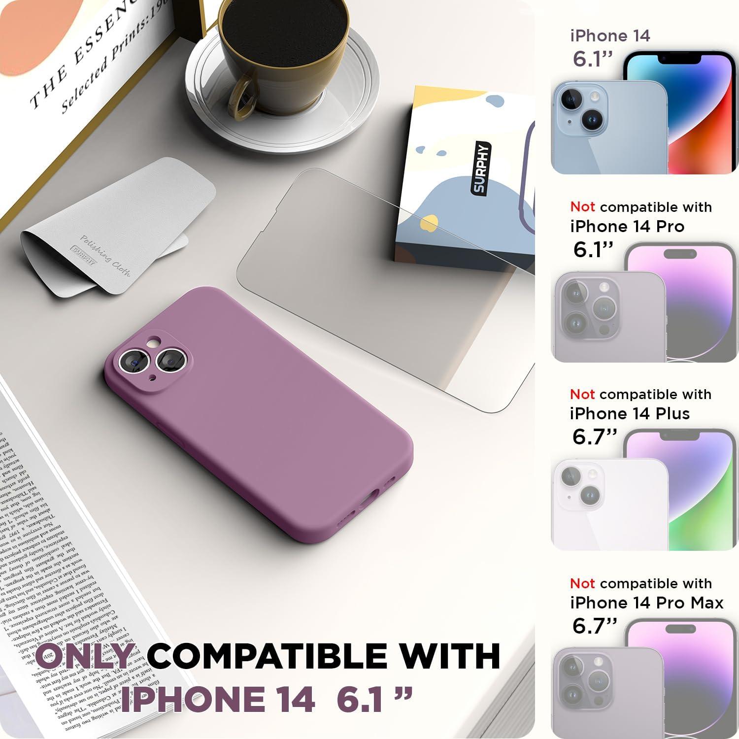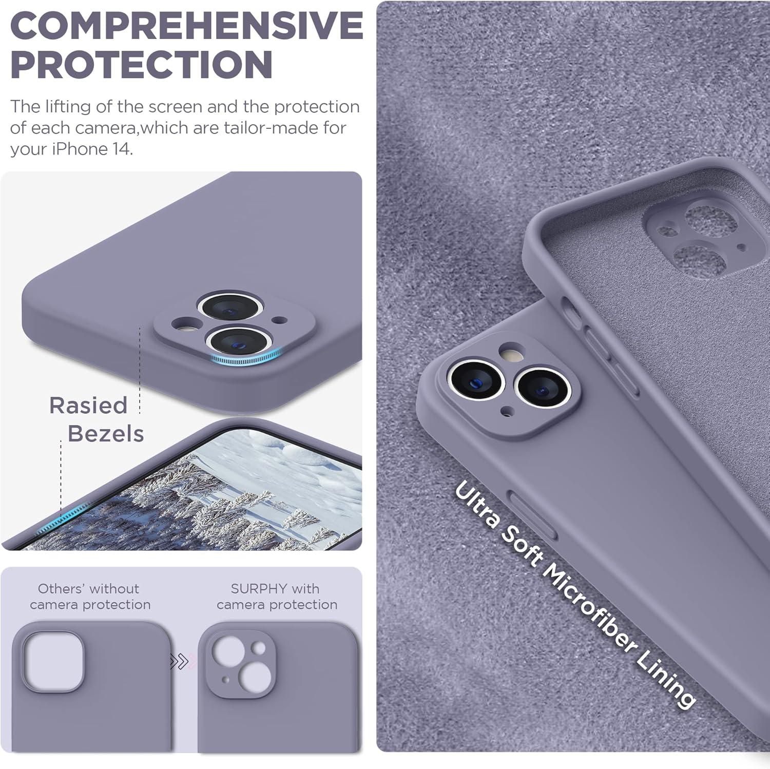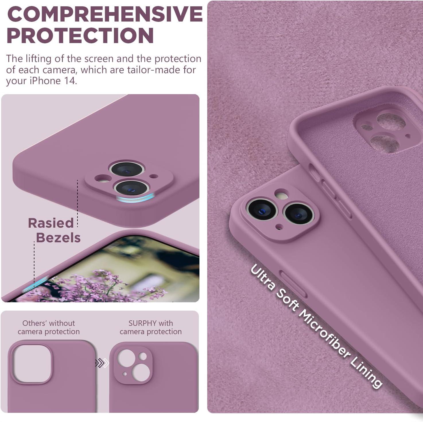SURPHY Compatible with iPhone 14 Case with Screen Protector (Camera Protection & Soft Microfiber Lining) Liquid Silicone Phone Case 6.1 inch 2022, Red(Lavender Gray)