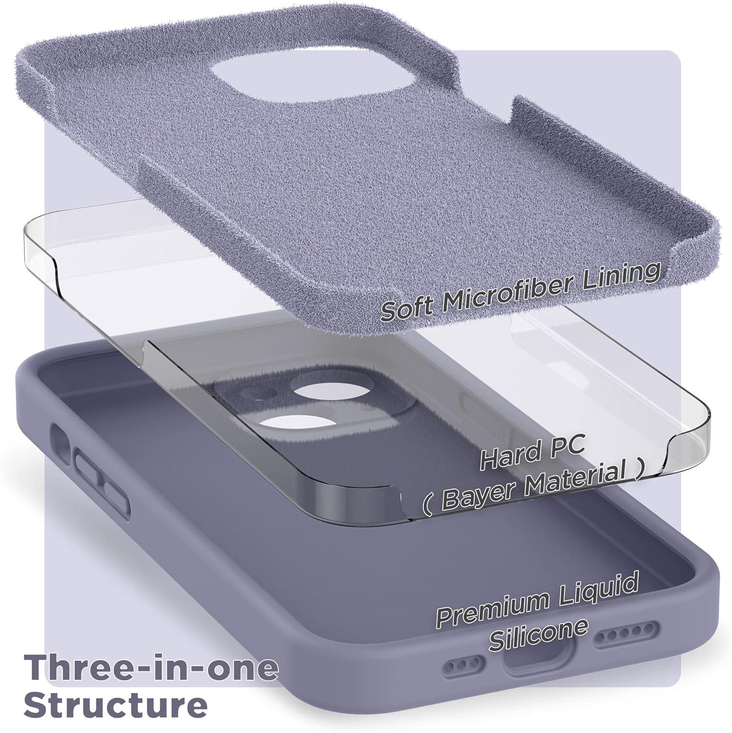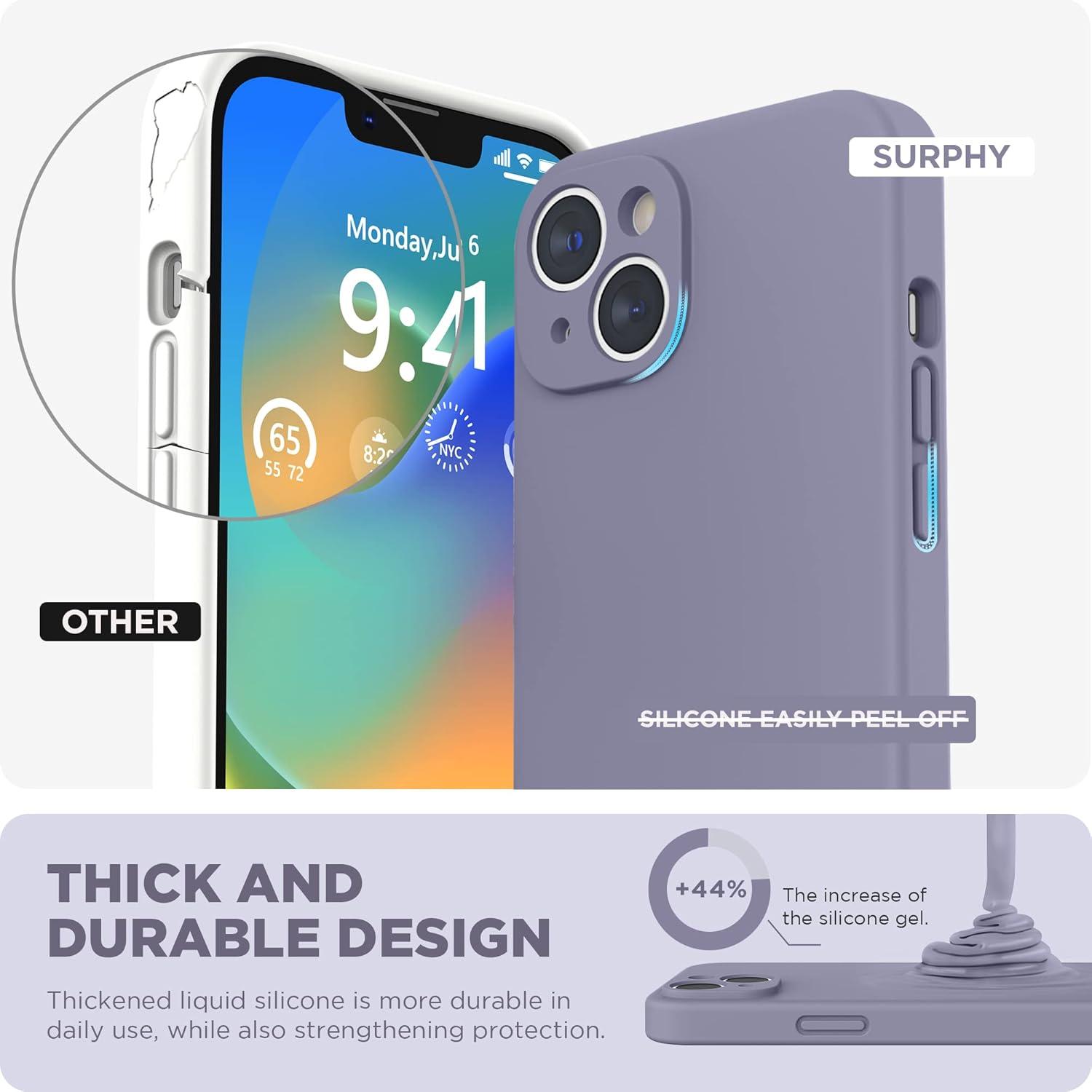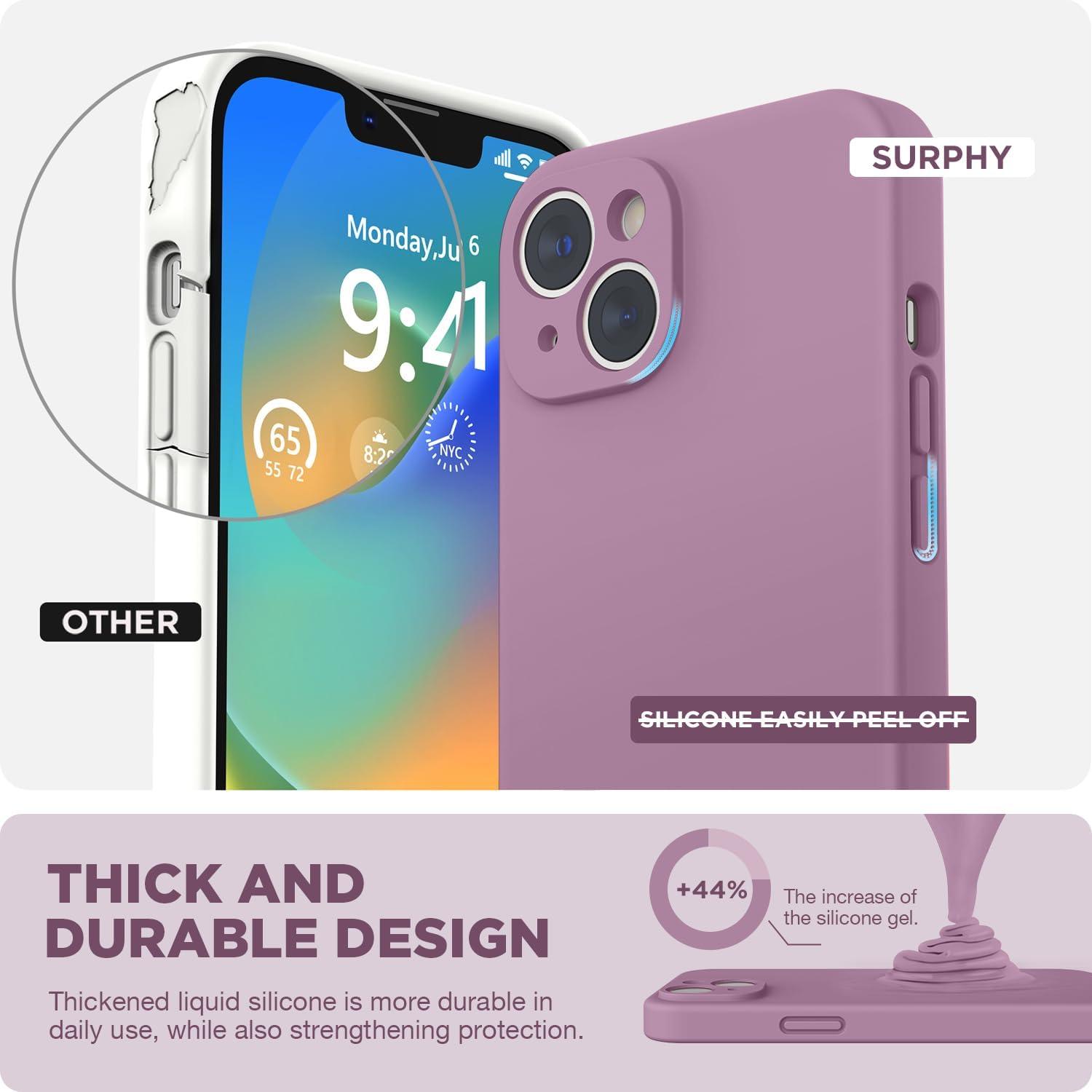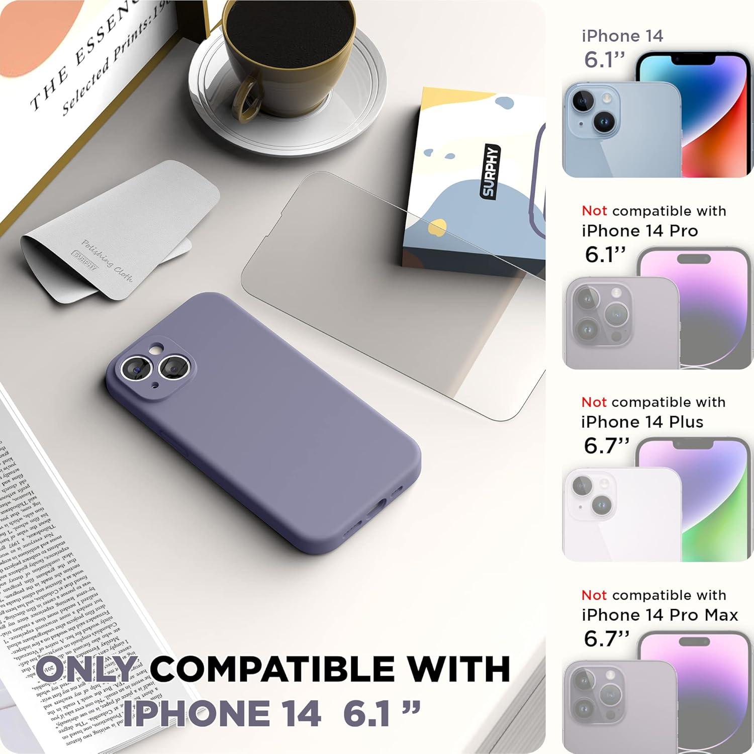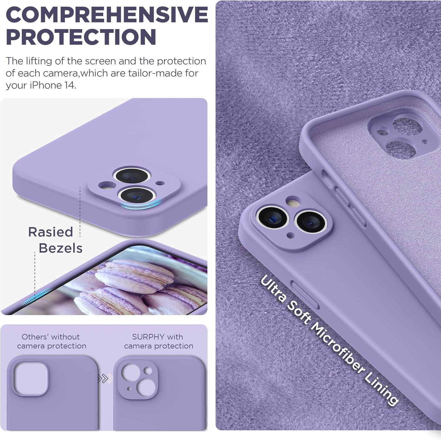 SURPHY Compatible with iPhone 14 Case with Screen Protector (Camera Protection & Soft Microfiber Lining) Liquid Silicone Phone Case 6.1 inch 2022, Red(Lavender Gray)