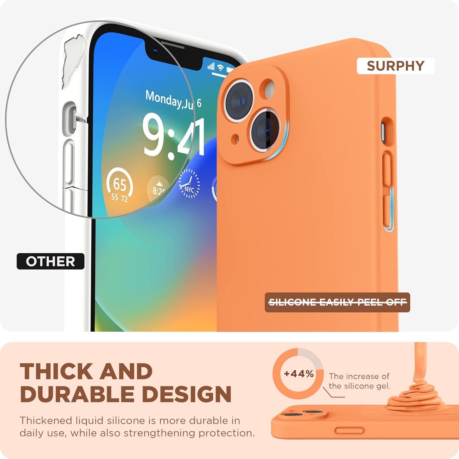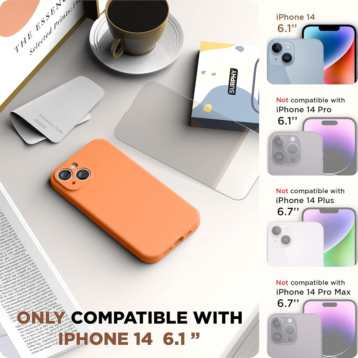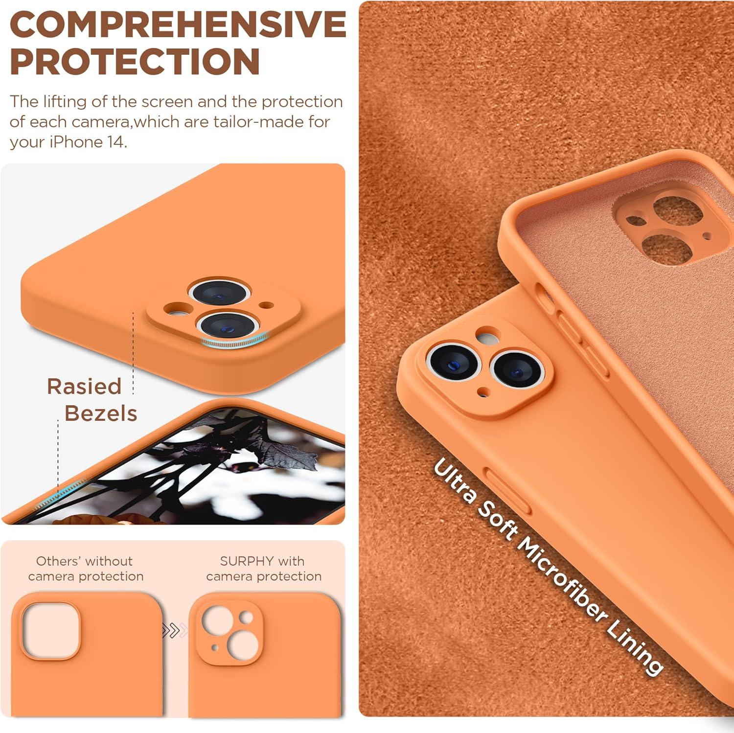 SURPHY Compatible with iPhone 14 Case with Screen Protector (Camera Protection & Soft Microfiber Lining) Liquid Silicone Phone Case 6.1 inch 2022, Red(Marigold Orange)