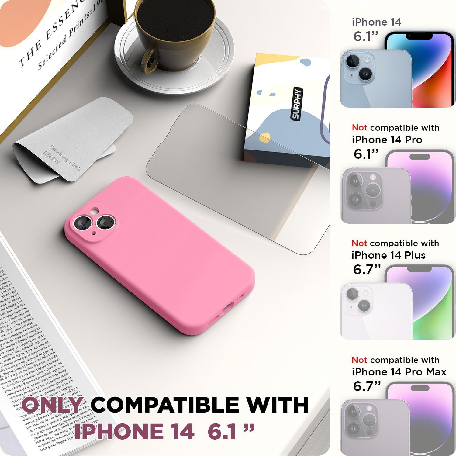 SURPHY (4 in 1 Designed for iPhone 14 Case Compatible with MagSafe (6.1 inch, 2022), with 2 Pack Screen Protector + Camera Cover, Liquid Silicone Phone Case (Cactus Green)(Pink)