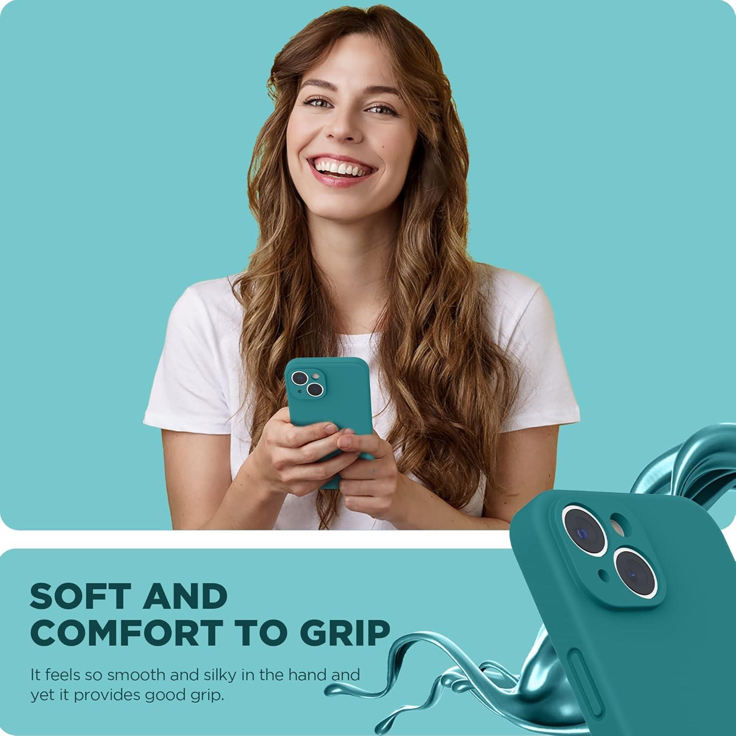 SURPHY Compatible with iPhone 14 Case with Screen Protector (Camera Protection & Soft Microfiber Lining) Liquid Silicone Phone Case 6.1 inch 2022, Red(Teal Blue)