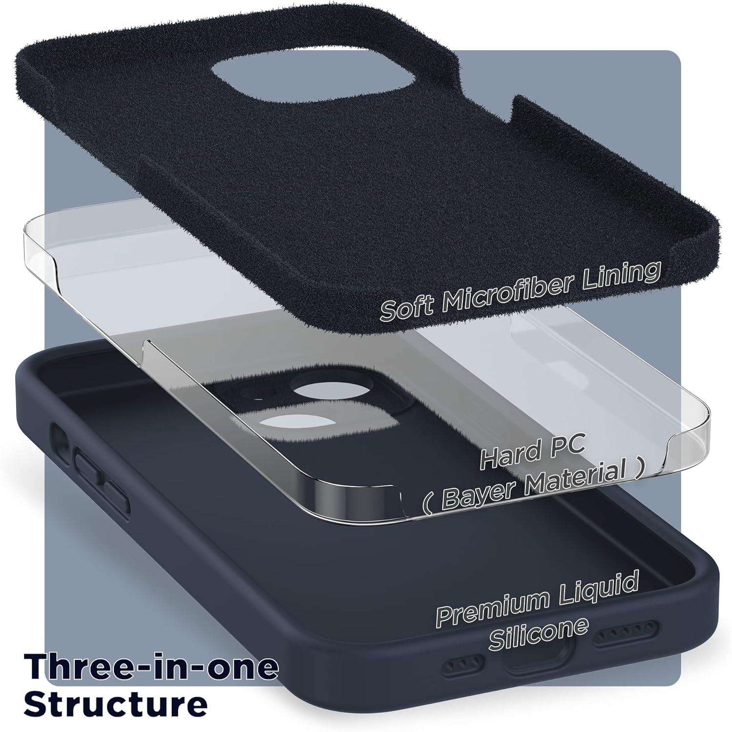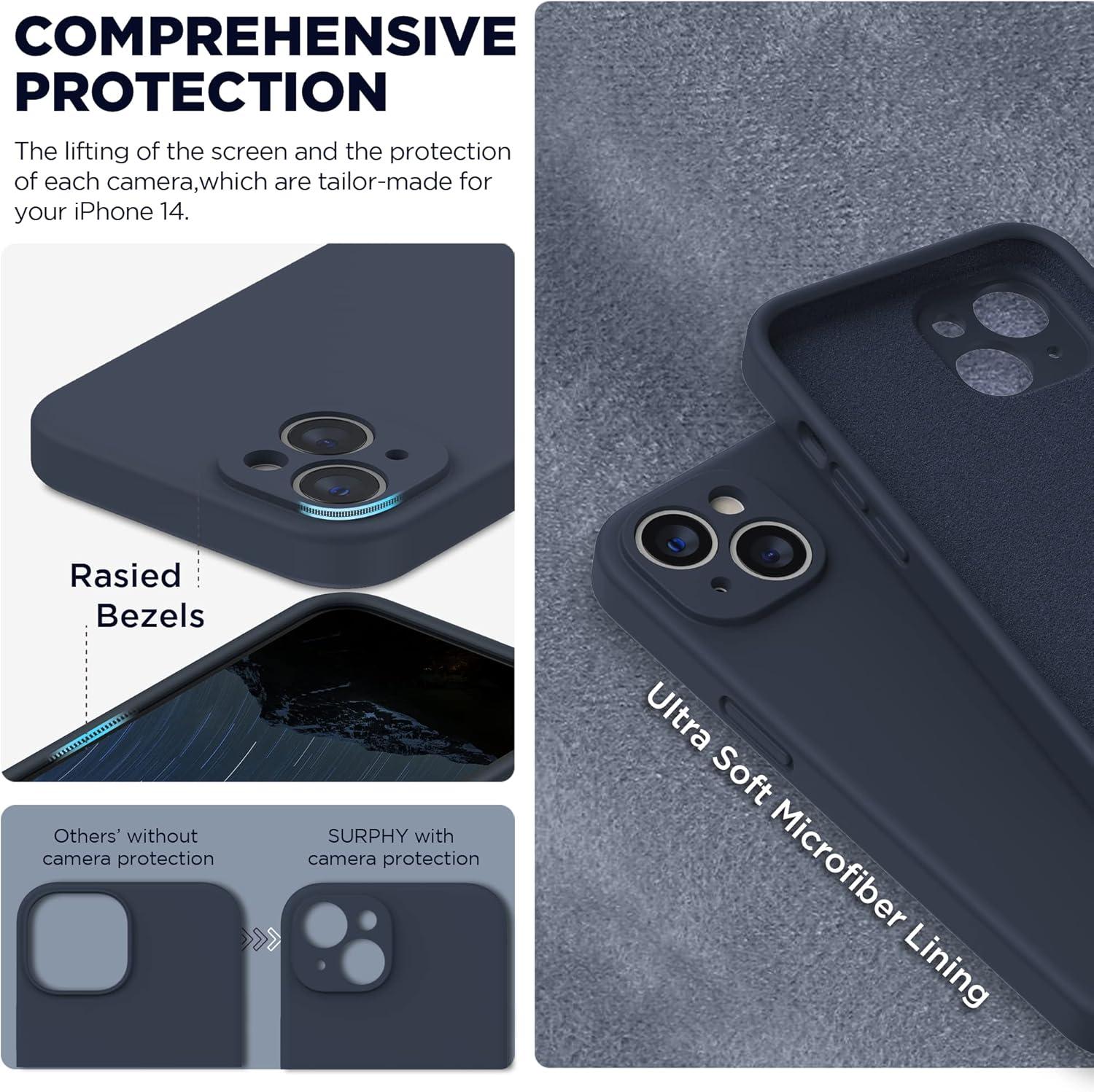 SURPHY Compatible with iPhone 14 Case with Screen Protector (Camera Protection & Soft Microfiber Lining) Liquid Silicone Phone Case 6.1 inch 2022, Red(Midnight Blue)