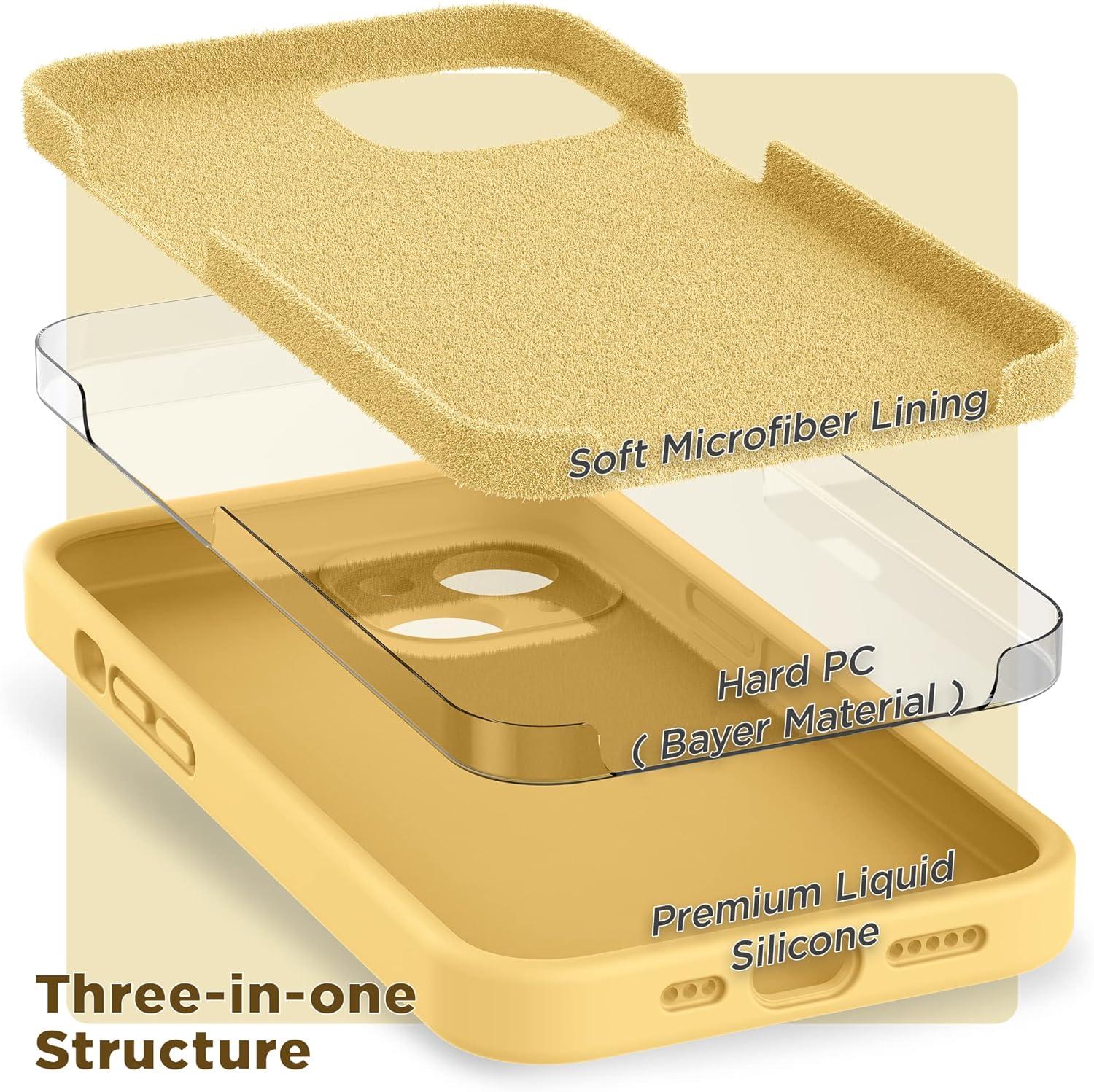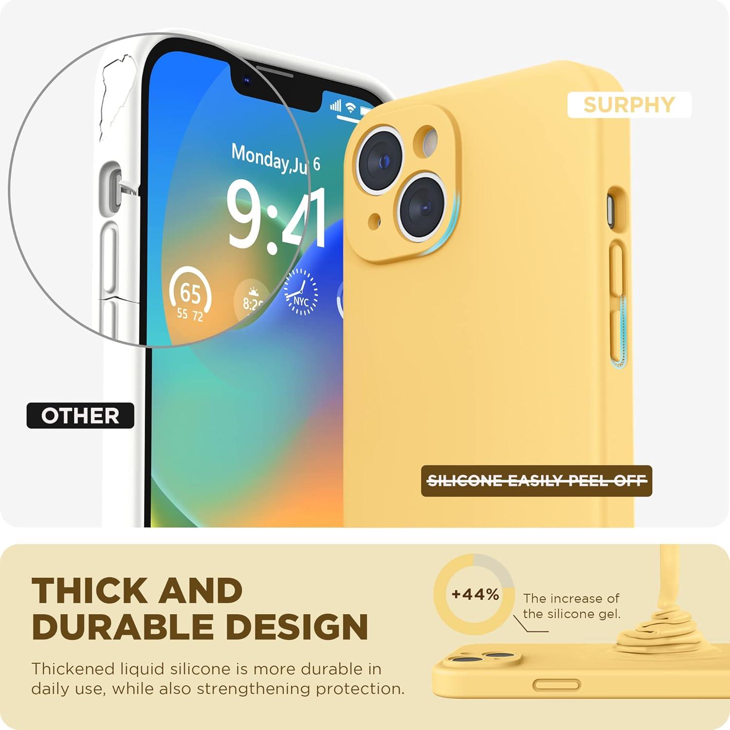 SURPHY Compatible with iPhone 14 Case with Screen Protector (Camera Protection & Soft Microfiber Lining) Liquid Silicone Phone Case 6.1 inch 2022, Red(Yellow)
