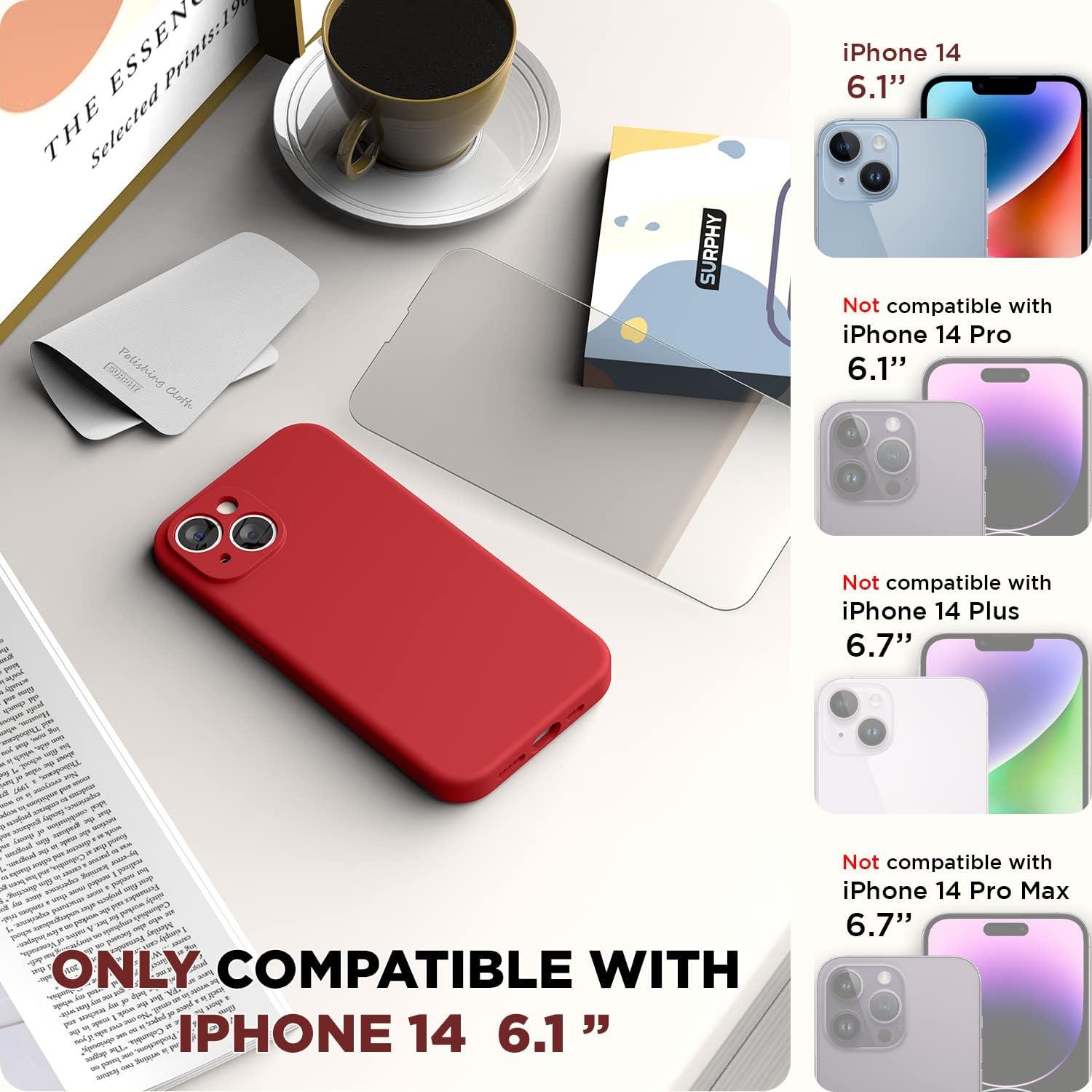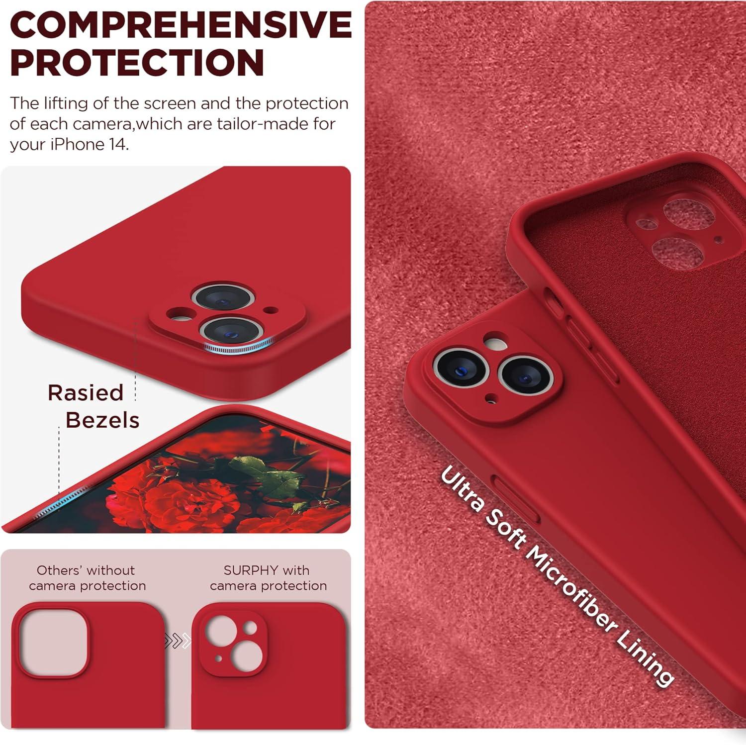SURPHY Compatible with iPhone 14 Case with Screen Protector (Camera Protection & Soft Microfiber Lining) Liquid Silicone Phone Case 6.1 inch 2022, Red(Red)