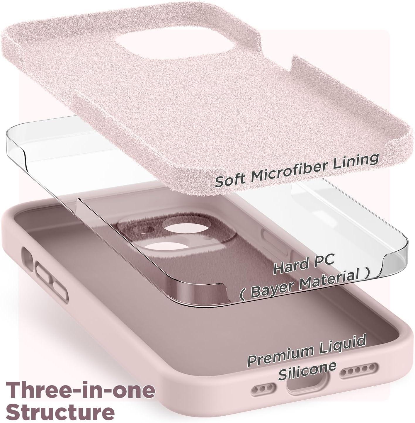 SURPHY Compatible with iPhone 14 Case with Screen Protector (Camera Protection & Soft Microfiber Lining) Liquid Silicone Phone Case 6.1 inch 2022, Red(Chalk Pink)