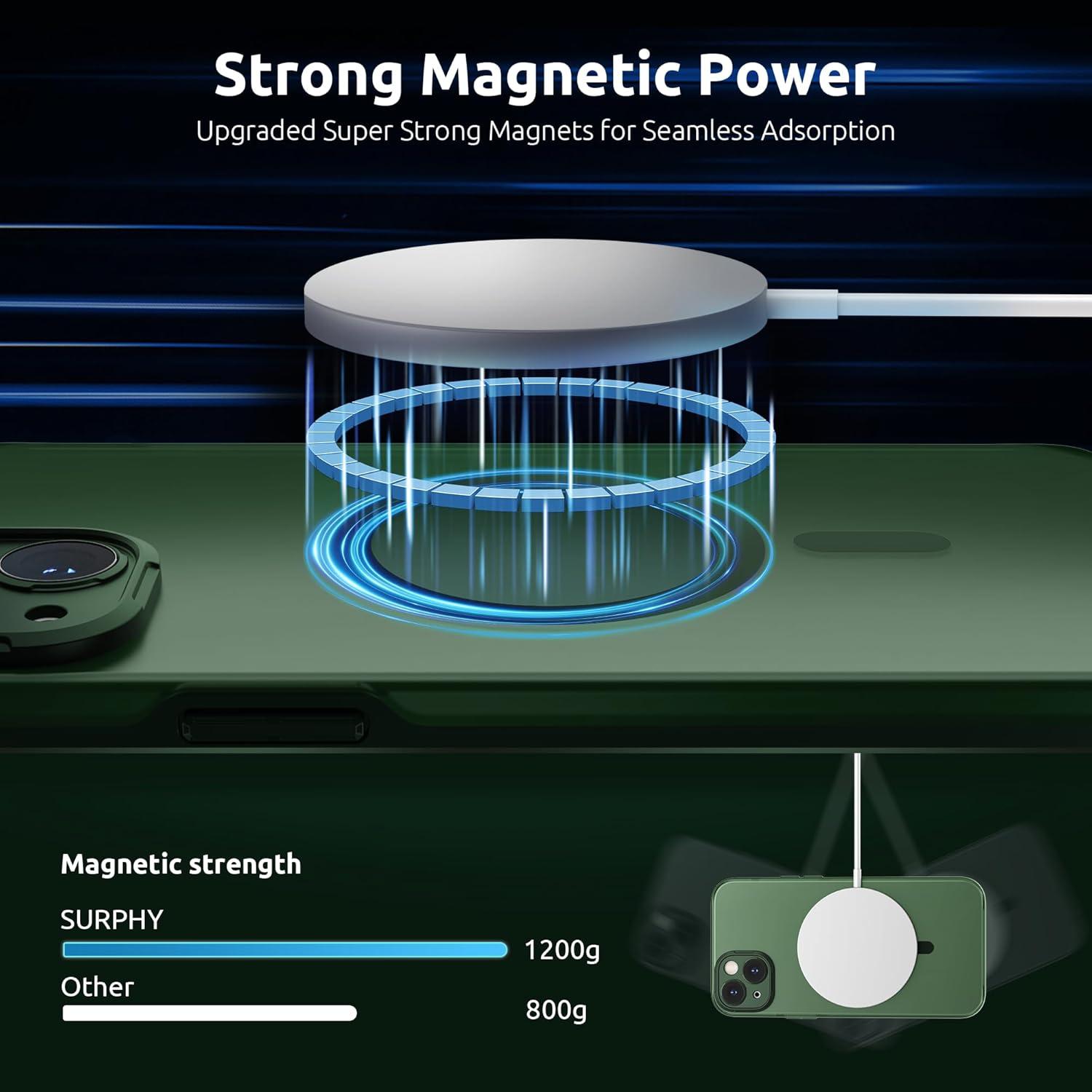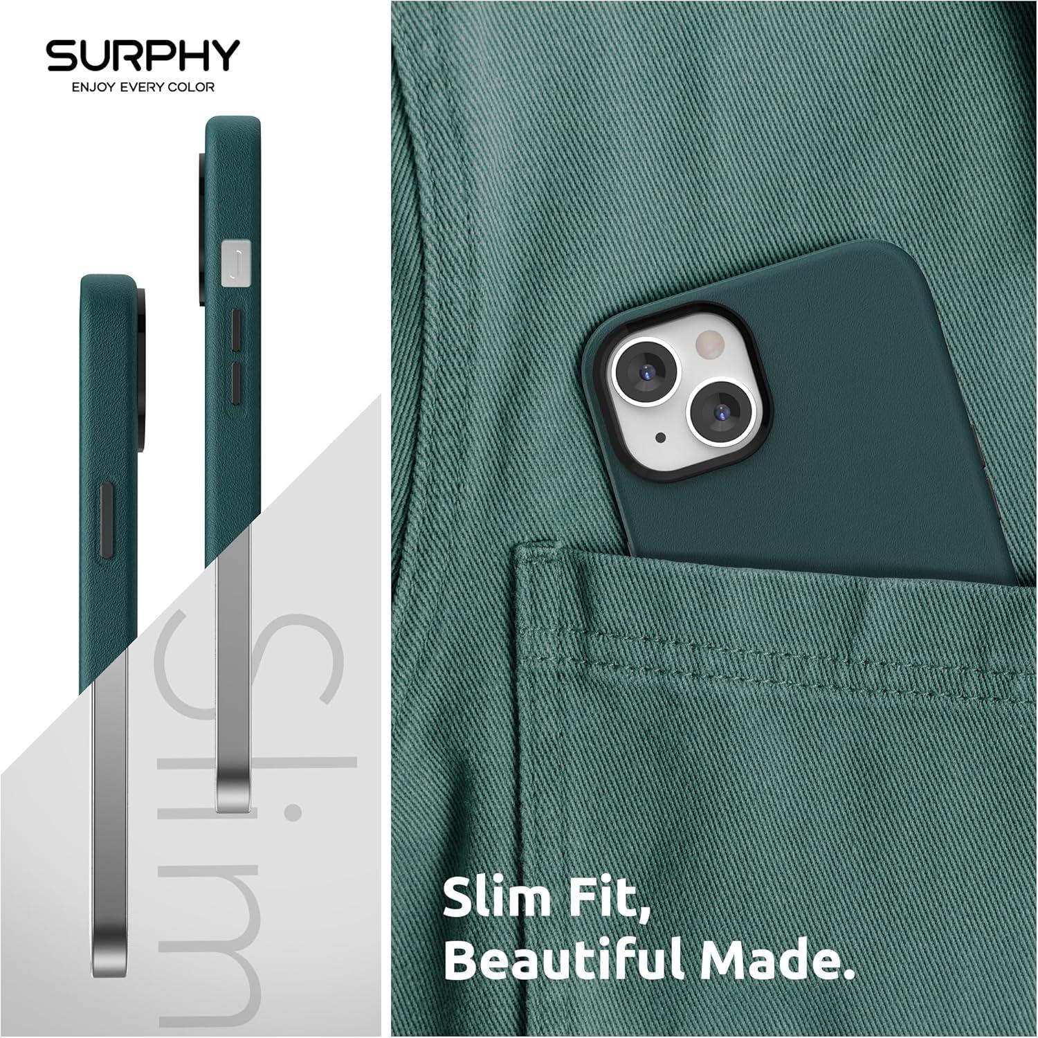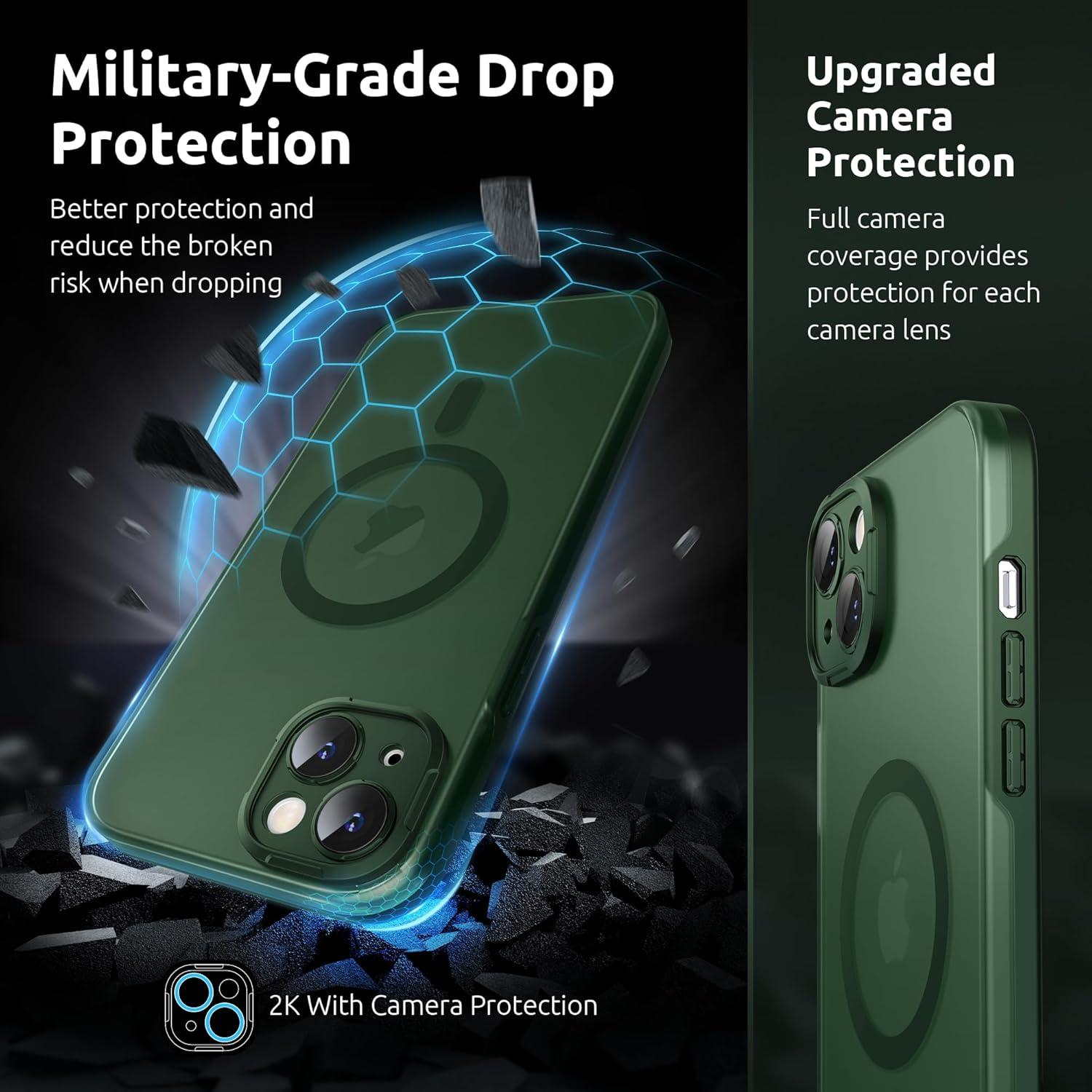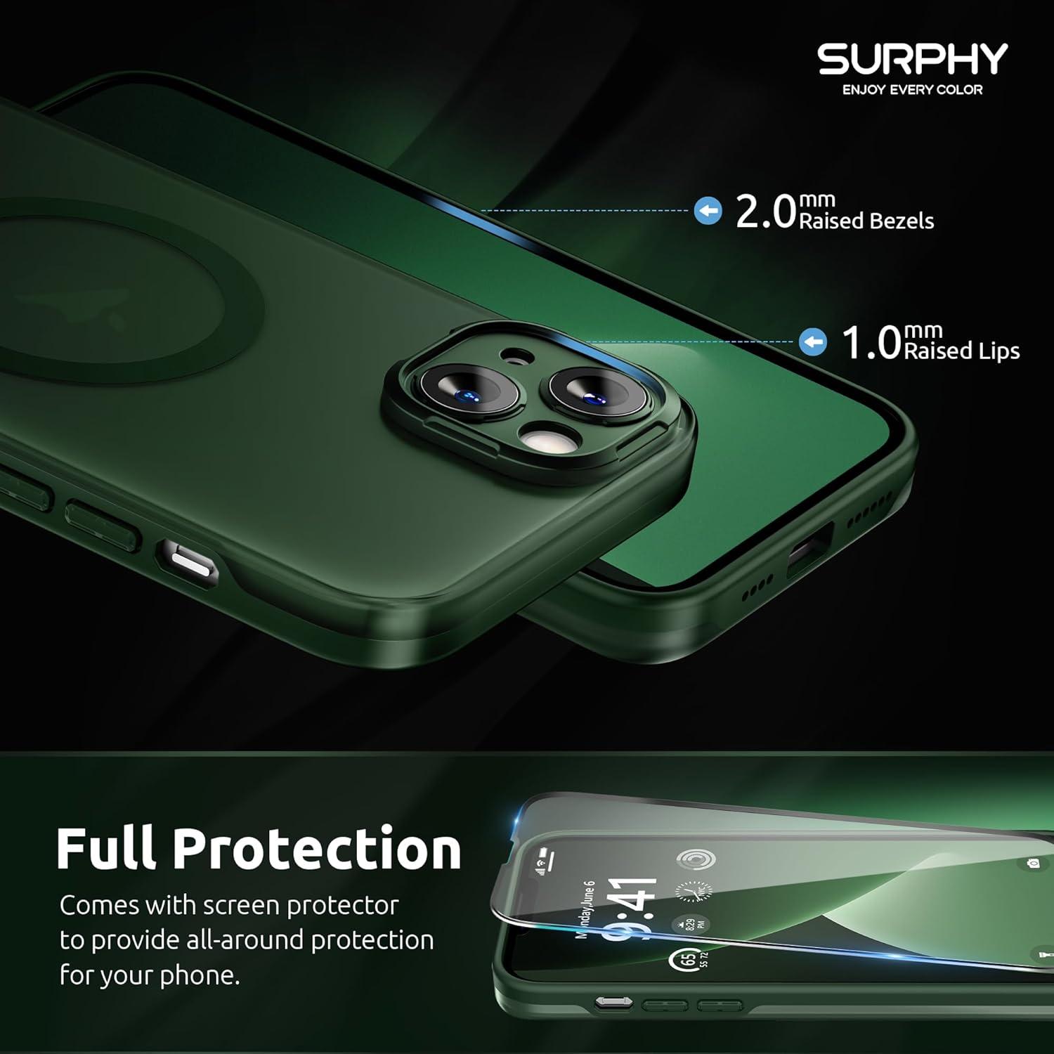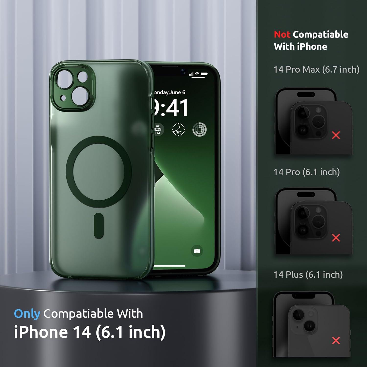 SURPHY Designed for iPhone 14 Case Compatible with MagSafe (6.1 inch, 2022), with Screen Protector & Camera Protector Translucent Matte Phone Case, Green