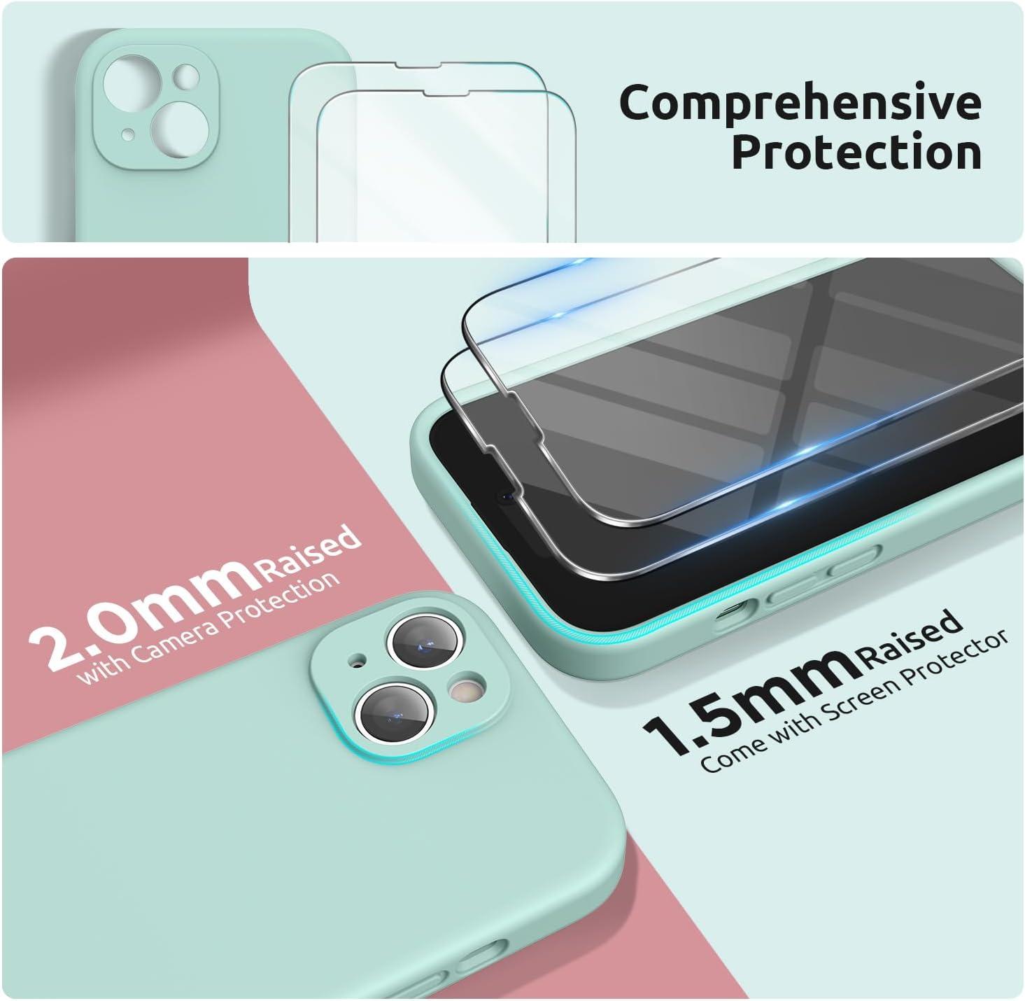 SURPHY Designed for iPhone 15 Case Compatible with MagSafe (6.1 inch 2023), with 2 Pack Screen Protector, Liquid Silicone Phone Case (Camera Protective & Soft Microfiber Lining) (Cactus Green)(Soft Mint)