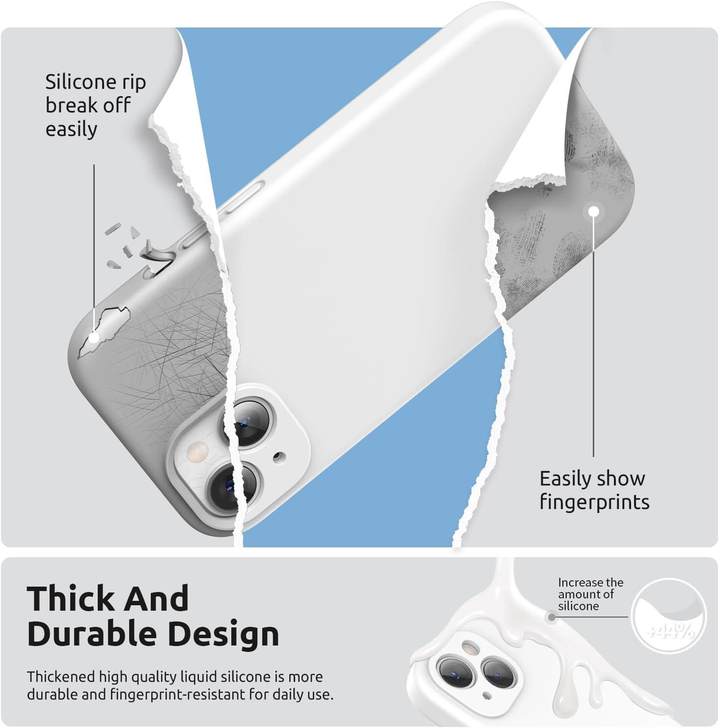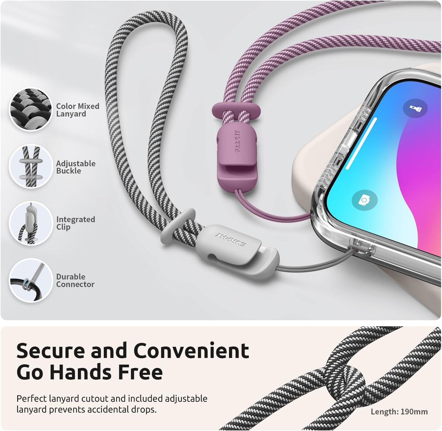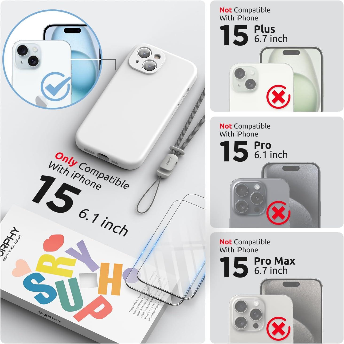 SURPHY Designed for iPhone 15 Case with Screen Protector and Lanyard, Phone Strap and Liquid Silicone Phone Case (Camera Protective & Soft Microfiber Lining) 6.1 inch 2023, Lilac Purple(White)