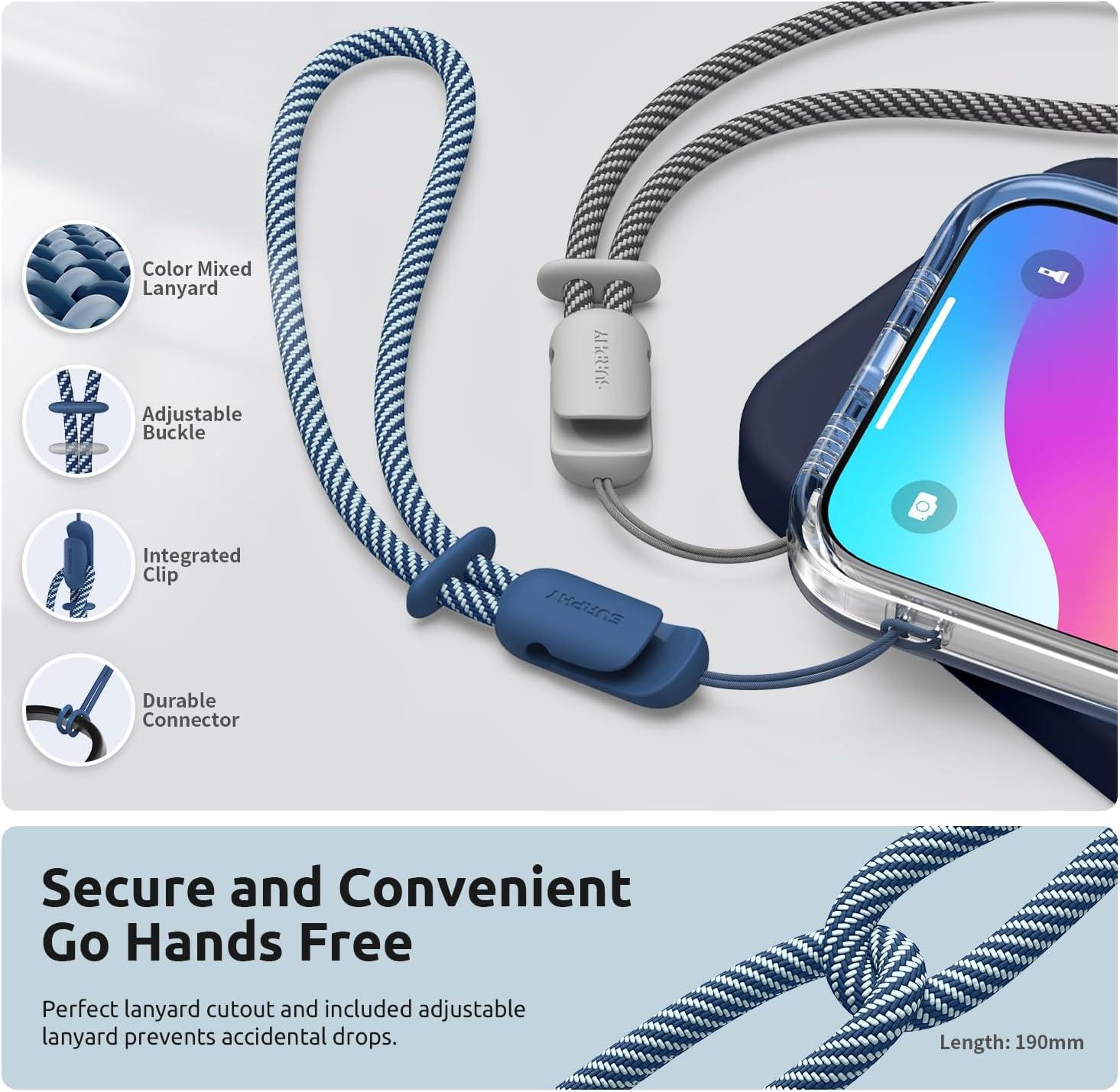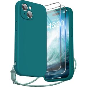 SURPHY Designed for iPhone 15 Case with Screen Protector and Lanyard, Phone Strap and Liquid Silicone Phone Case (Camera Protective & Soft Microfiber Lining) 6.1 inch 2023, Lilac Purple(Teal Blue)