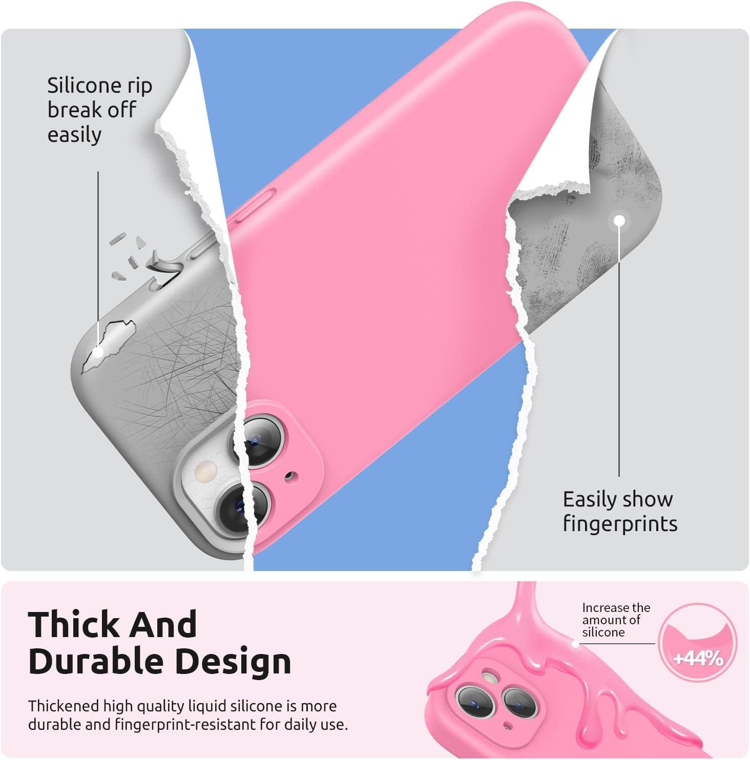 SURPHY Designed for iPhone 15 Case Compatible with MagSafe (6.1 inch 2023), with 2 Pack Screen Protector, Liquid Silicone Phone Case (Camera Protective & Soft Microfiber Lining) (Cactus Green)(Pink)