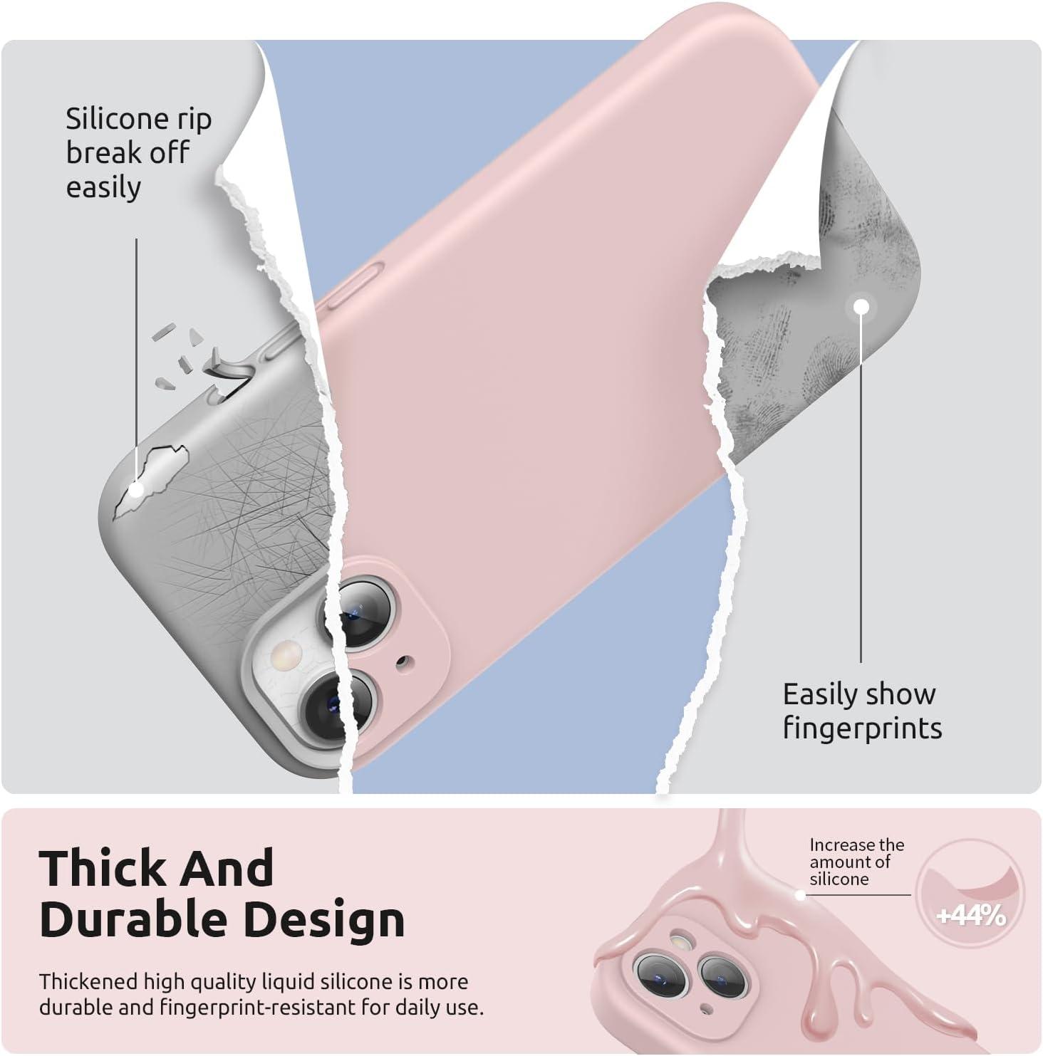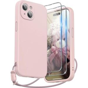 SURPHY Designed for iPhone 15 Case with Screen Protector and Lanyard, Phone Strap and Liquid Silicone Phone Case (Camera Protective & Soft Microfiber Lining) 6.1 inch 2023, Lilac Purple(Pink Sand)