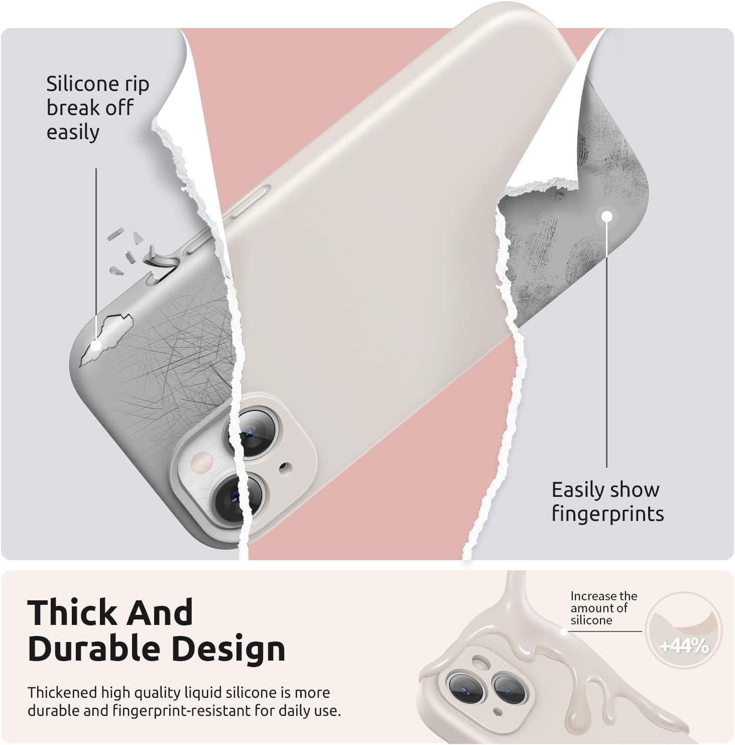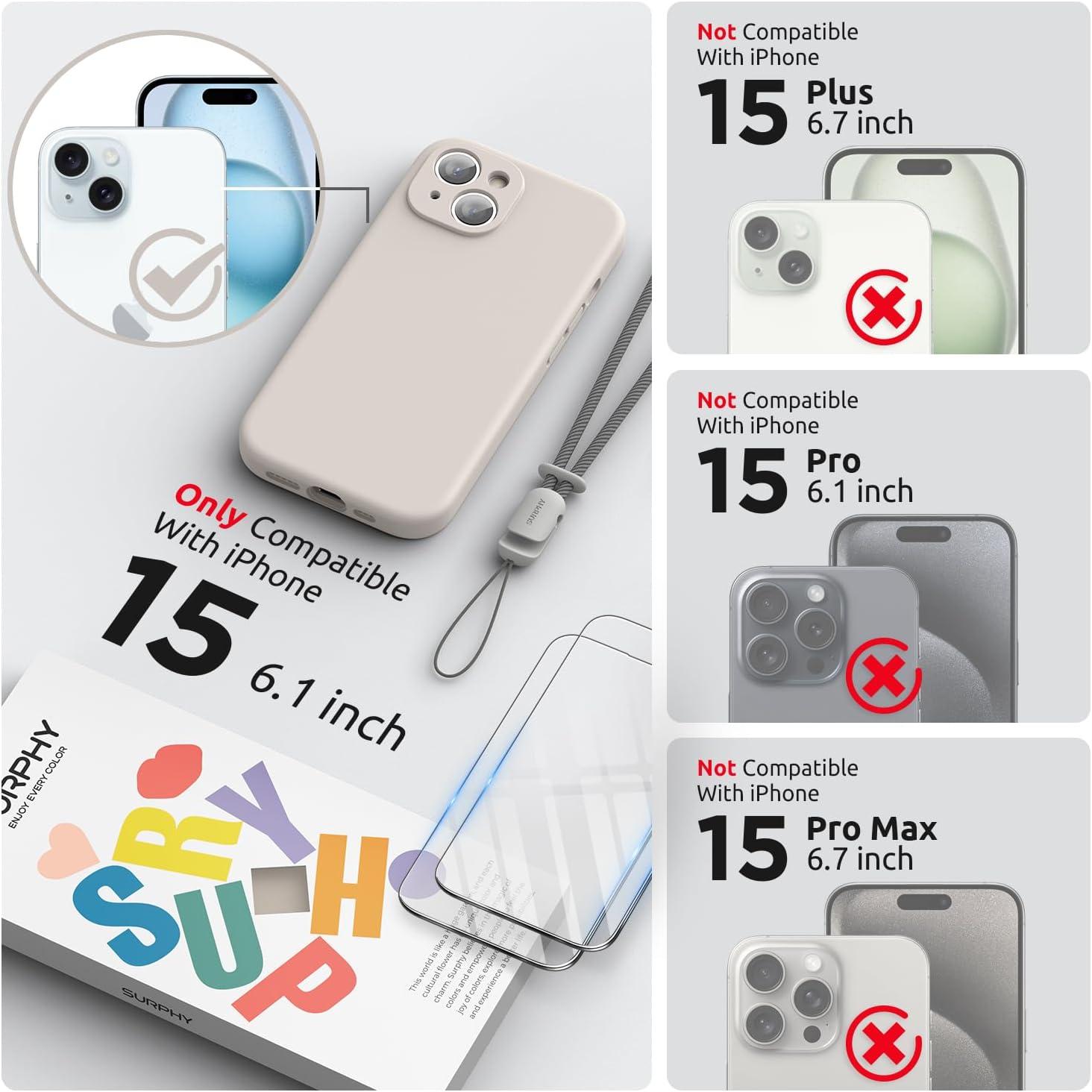 SURPHY Designed for iPhone 15 Case with Screen Protector and Lanyard, Phone Strap and Liquid Silicone Phone Case (Camera Protective & Soft Microfiber Lining) 6.1 inch 2023, Lilac Purple(Stone)