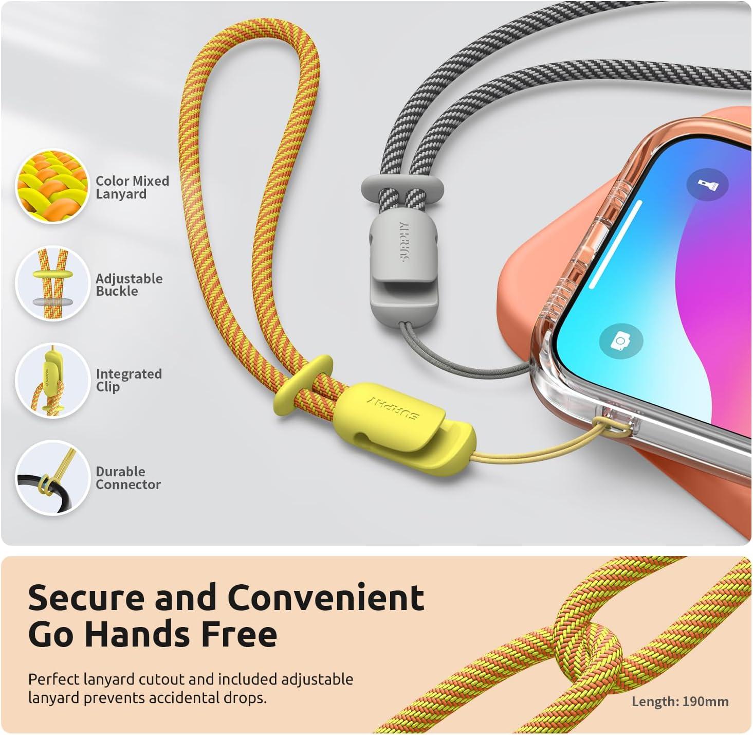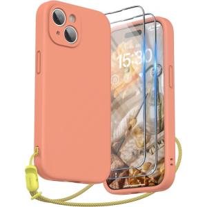 SURPHY Designed for iPhone 15 Case with Screen Protector and Lanyard, Phone Strap and Liquid Silicone Phone Case (Camera Protective & Soft Microfiber Lining) 6.1 inch 2023, Lilac Purple(Orange Sorbet)