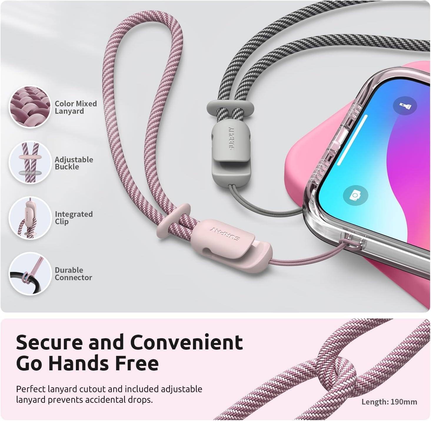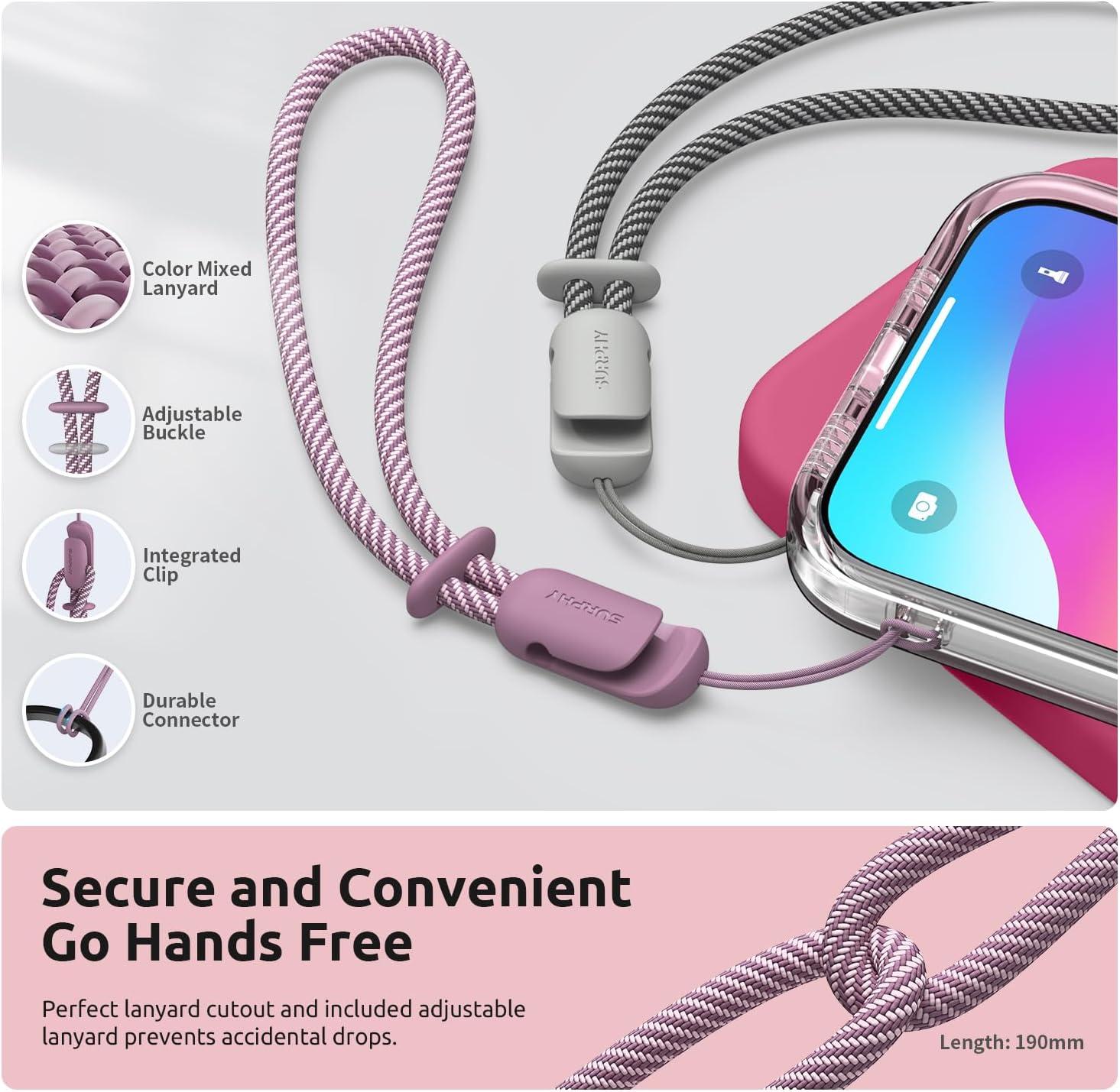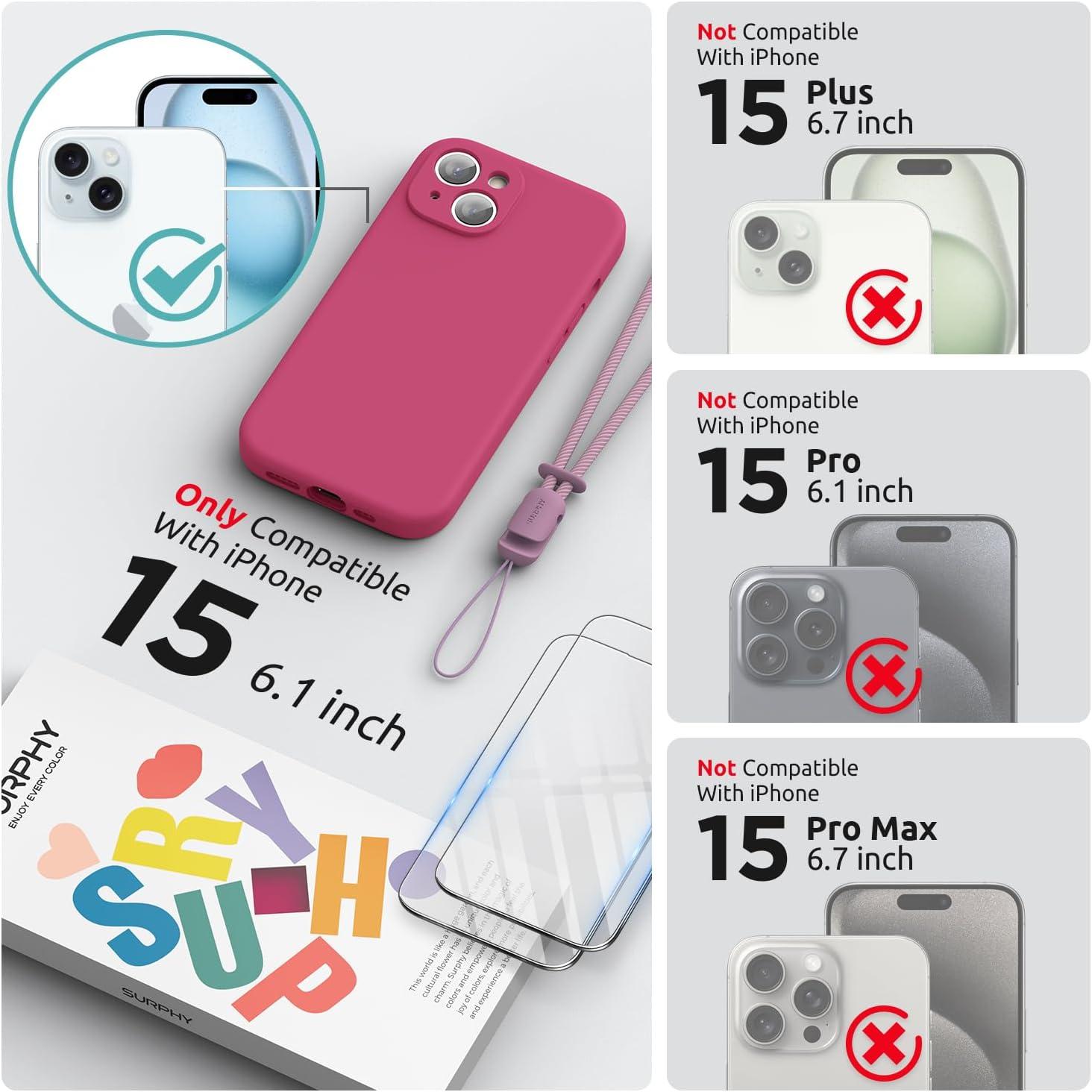 SURPHY Designed for iPhone 15 Case with Screen Protector and Lanyard, Phone Strap and Liquid Silicone Phone Case (Camera Protective & Soft Microfiber Lining) 6.1 inch 2023, Lilac Purple(Pink)