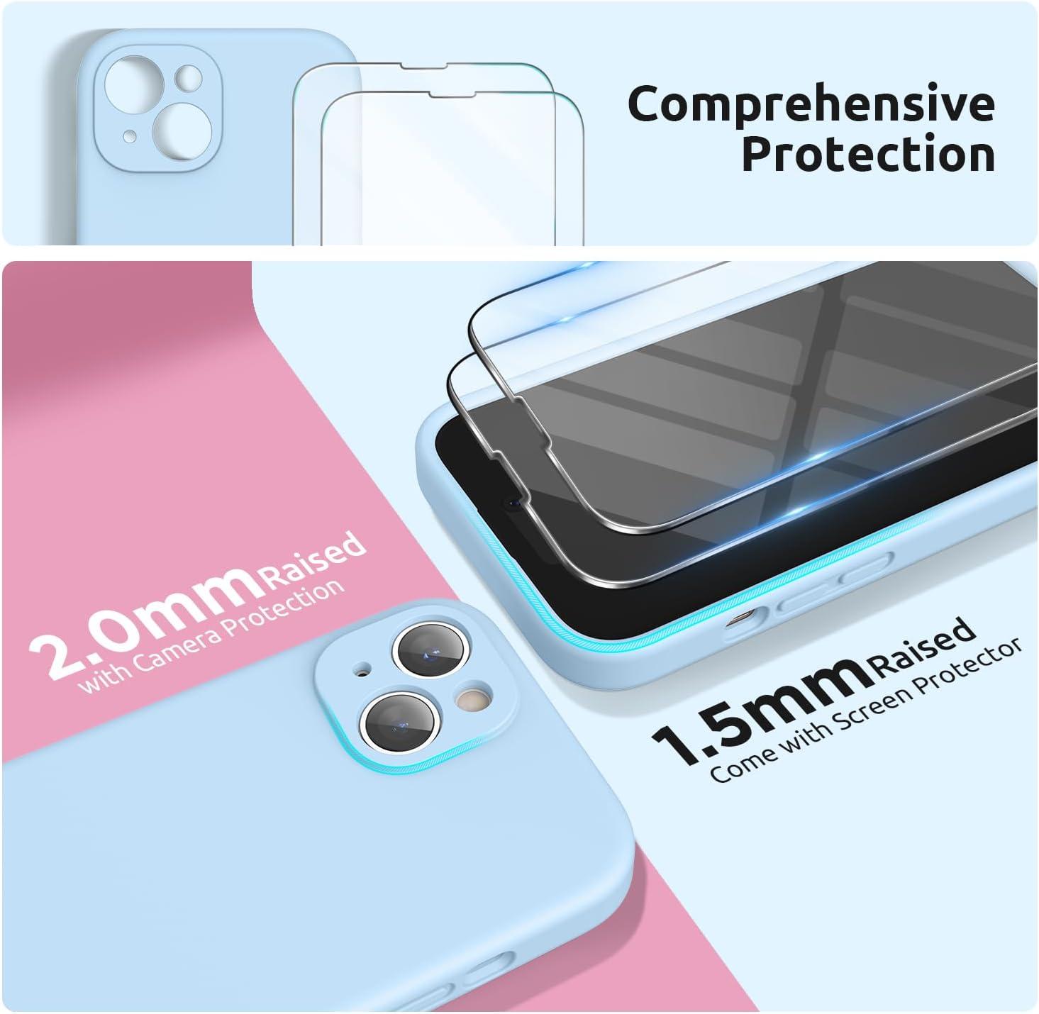 SURPHY Designed for iPhone 15 Case Compatible with MagSafe (6.1 inch 2023), with 2 Pack Screen Protector, Liquid Silicone Phone Case (Camera Protective & Soft Microfiber Lining) (Cactus Green)(Winter Blue)