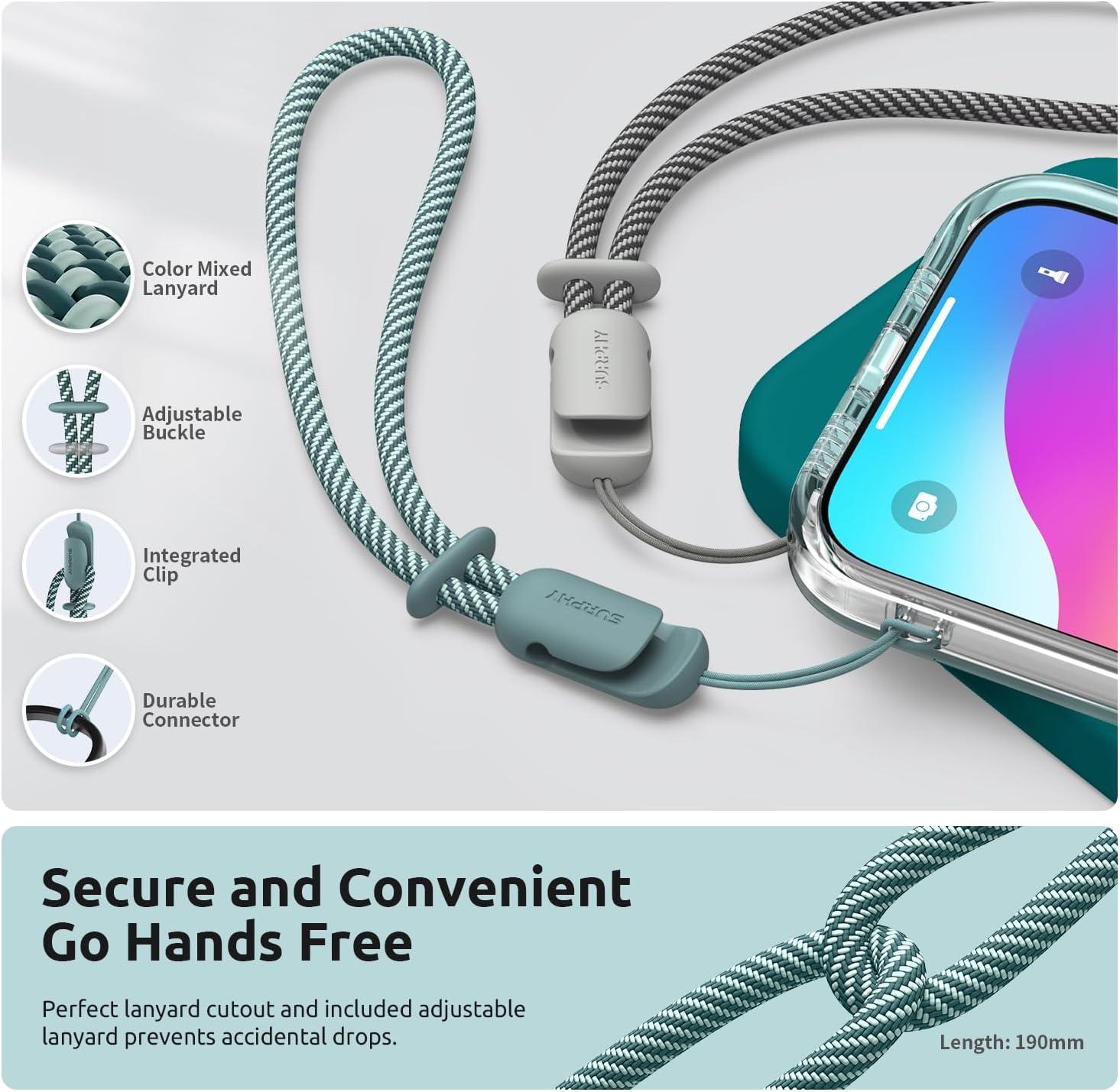 SURPHY Designed for iPhone 15 Case with Screen Protector and Lanyard, Phone Strap and Liquid Silicone Phone Case (Camera Protective & Soft Microfiber Lining) 6.1 inch 2023, Lilac Purple(Mint Green)