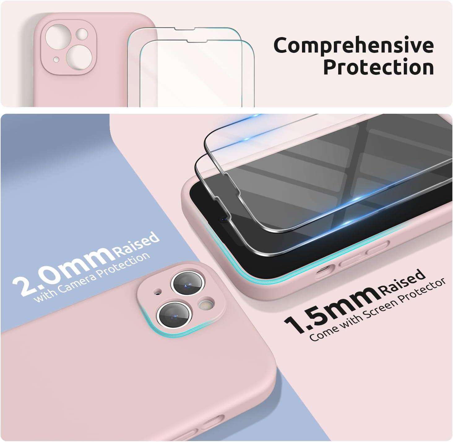 SURPHY Designed for iPhone 15 Case Compatible with MagSafe (6.1 inch 2023), with 2 Pack Screen Protector, Liquid Silicone Phone Case (Camera Protective & Soft Microfiber Lining) (Cactus Green)(Chalk Pink)