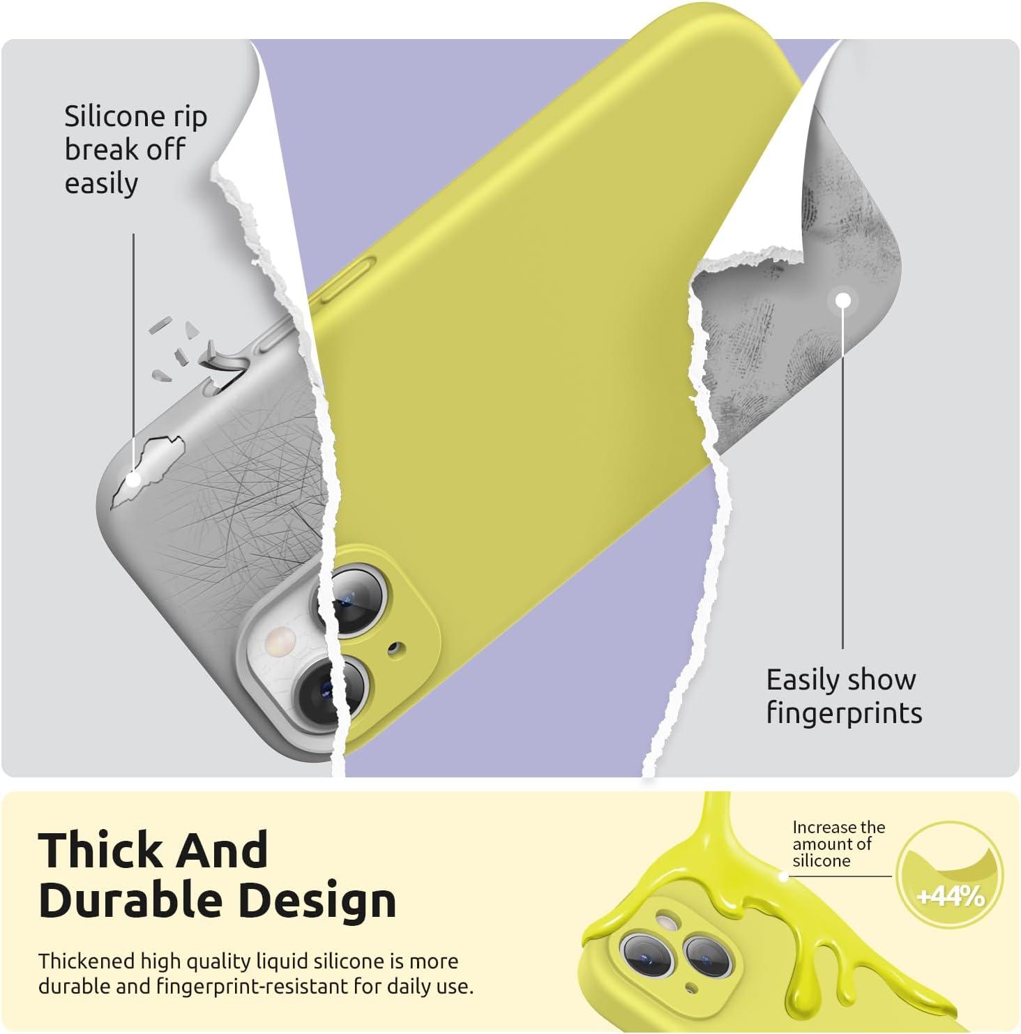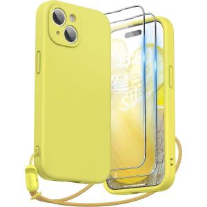 SURPHY Designed for iPhone 15 Case with Screen Protector and Lanyard, Phone Strap and Liquid Silicone Phone Case (Camera Protective & Soft Microfiber Lining) 6.1 inch 2023, Lilac Purple(Canary Yellow)