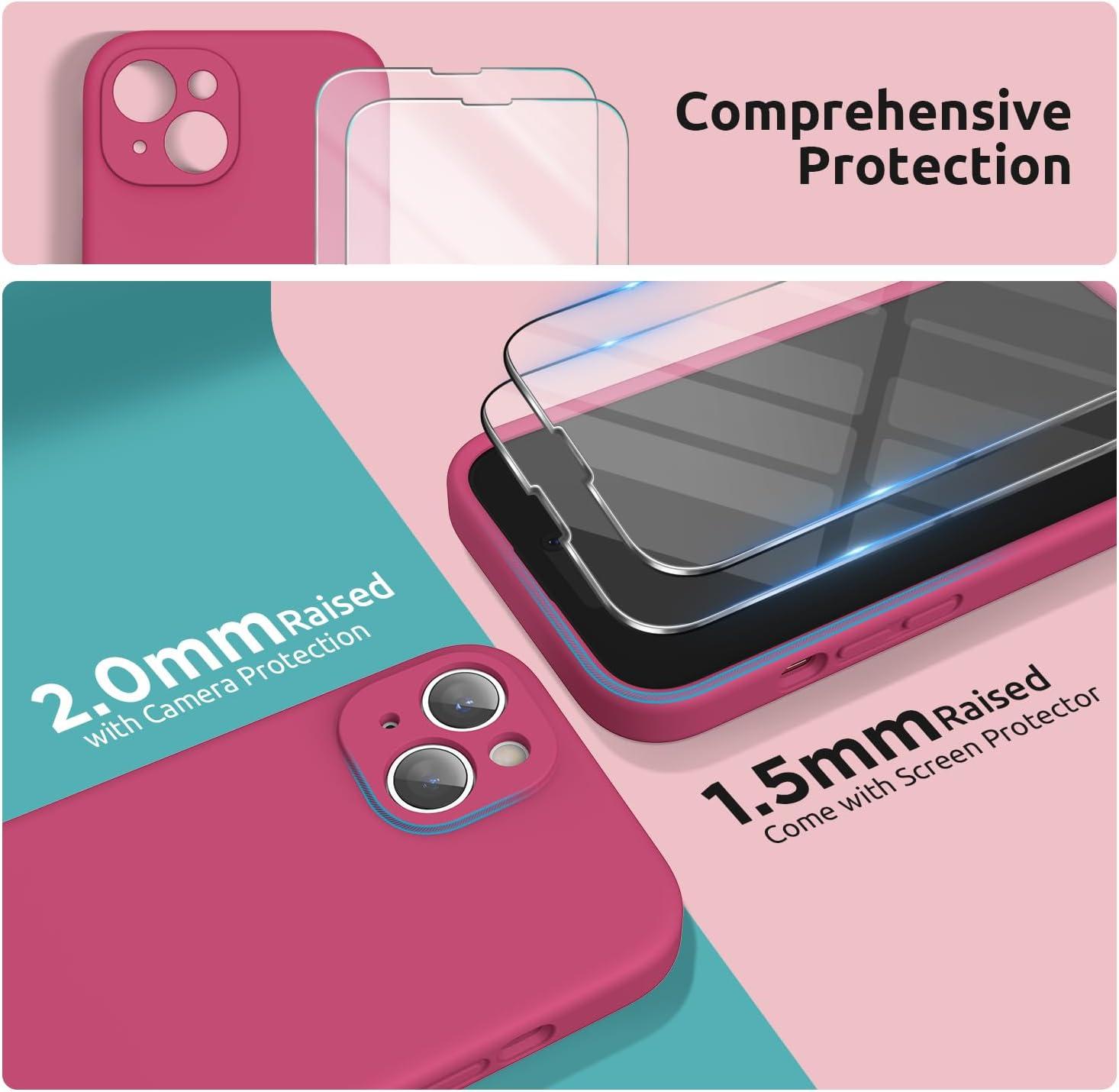 SURPHY Designed for iPhone 15 Case Compatible with MagSafe (6.1 inch 2023), with 2 Pack Screen Protector, Liquid Silicone Phone Case (Camera Protective & Soft Microfiber Lining) (Cactus Green)(Guava)