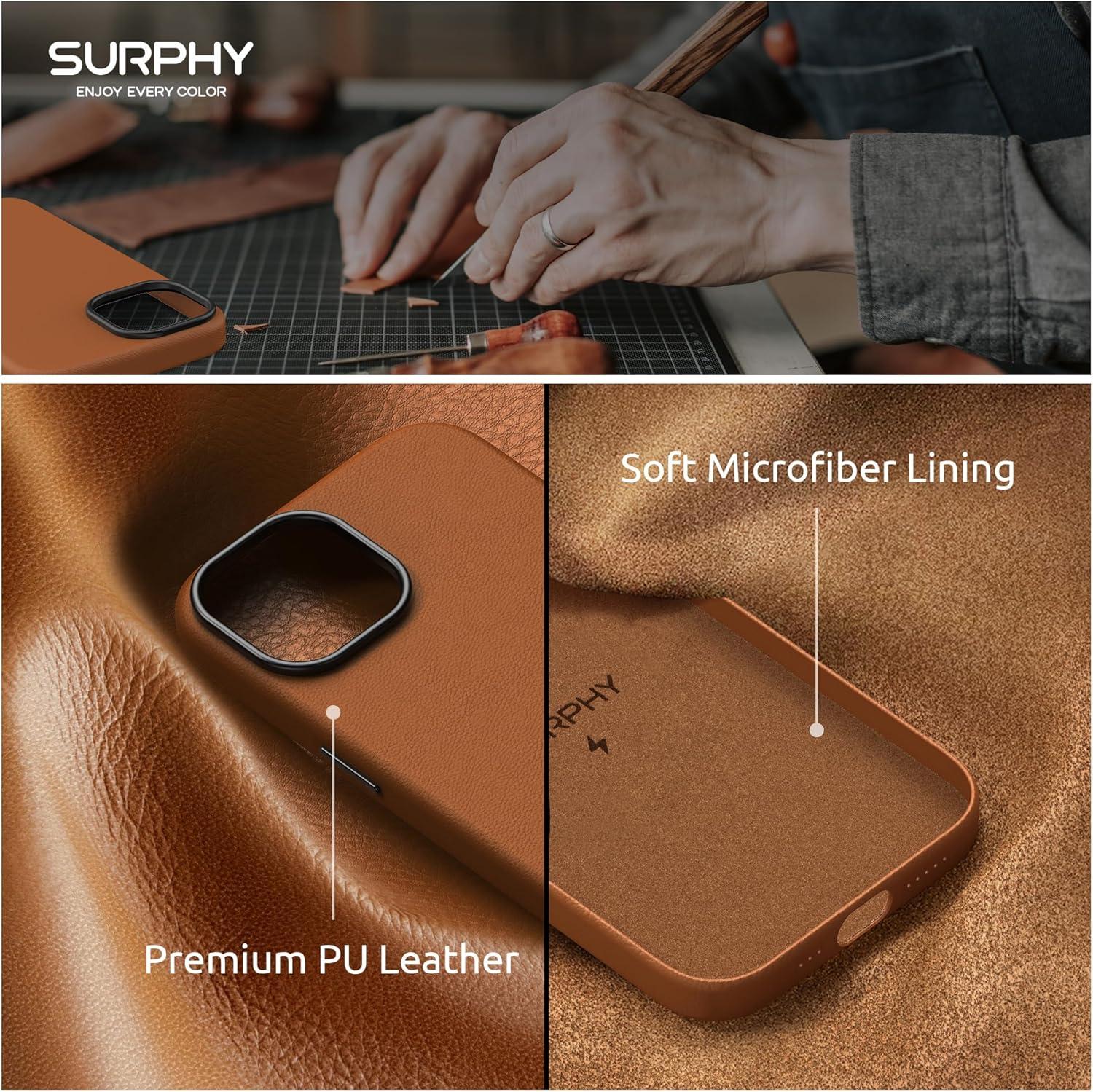 SURPHY Designed for iPhone 15 Leather Case with Screen Protector Compatible with MagSafe, Faux Leather Case (Metallic Buttons & Microfiber Lining) for 15 6.1 inch 2023, Brown(Brown)
