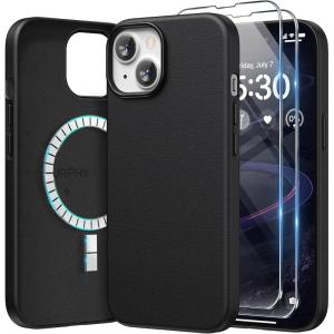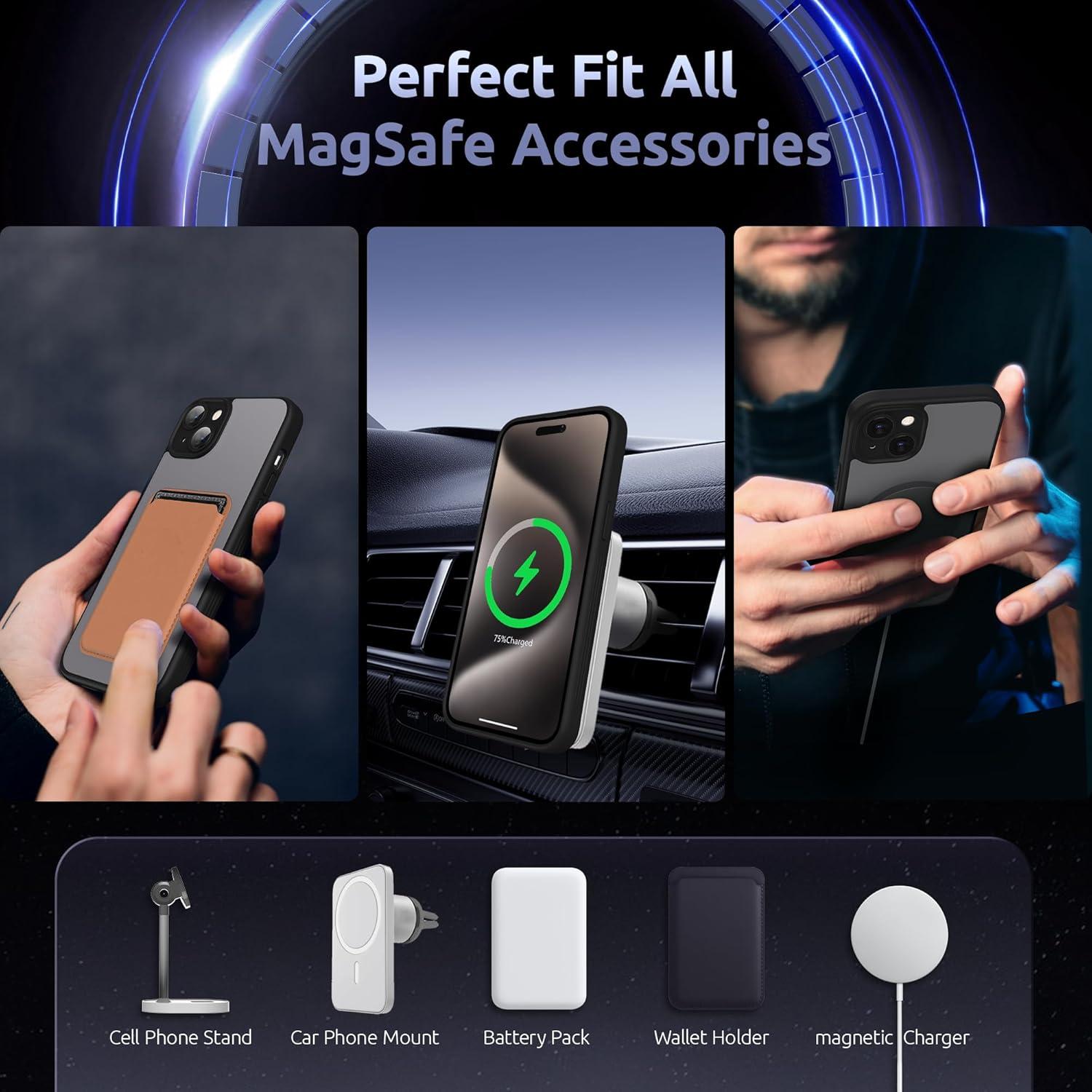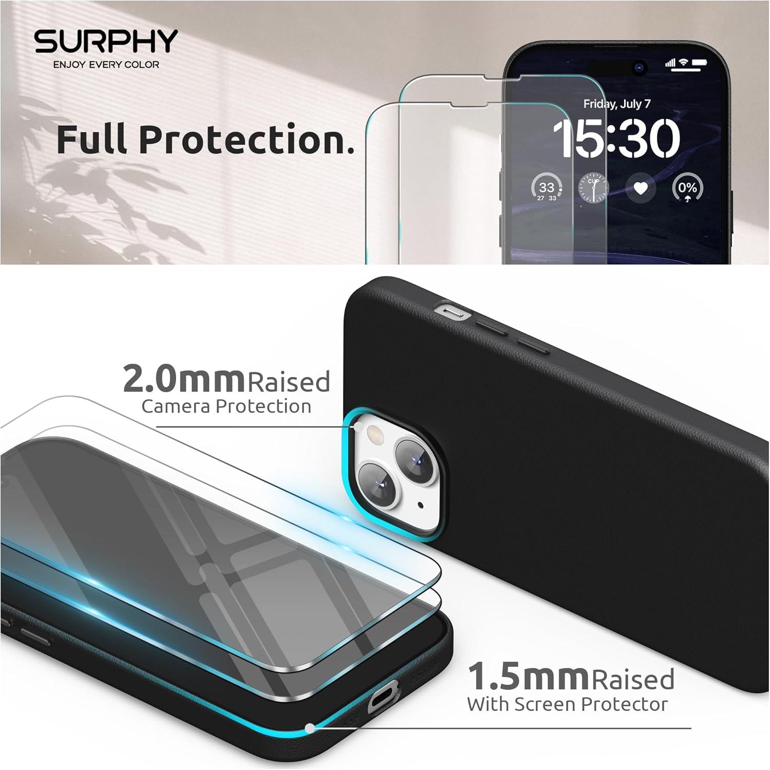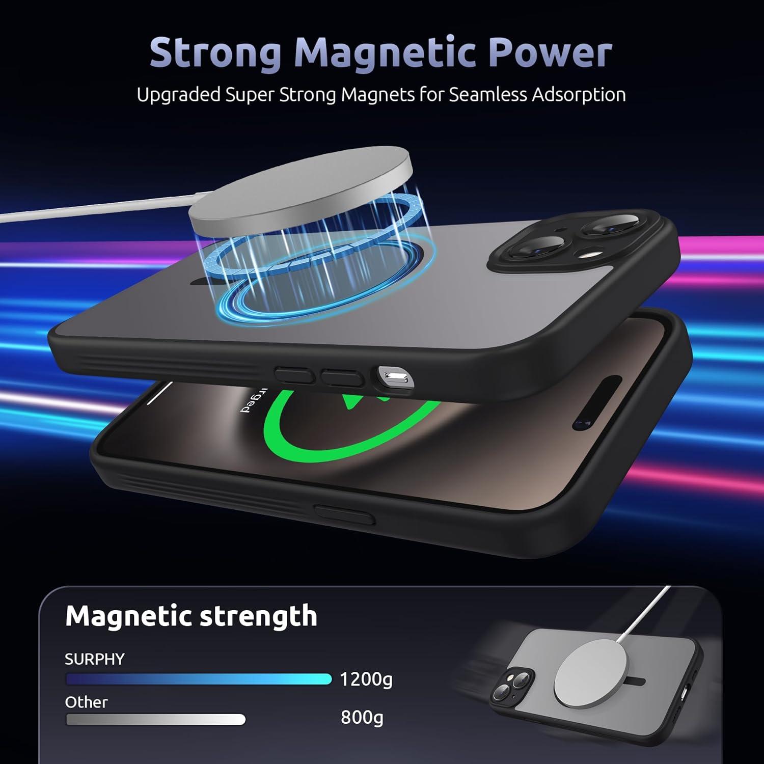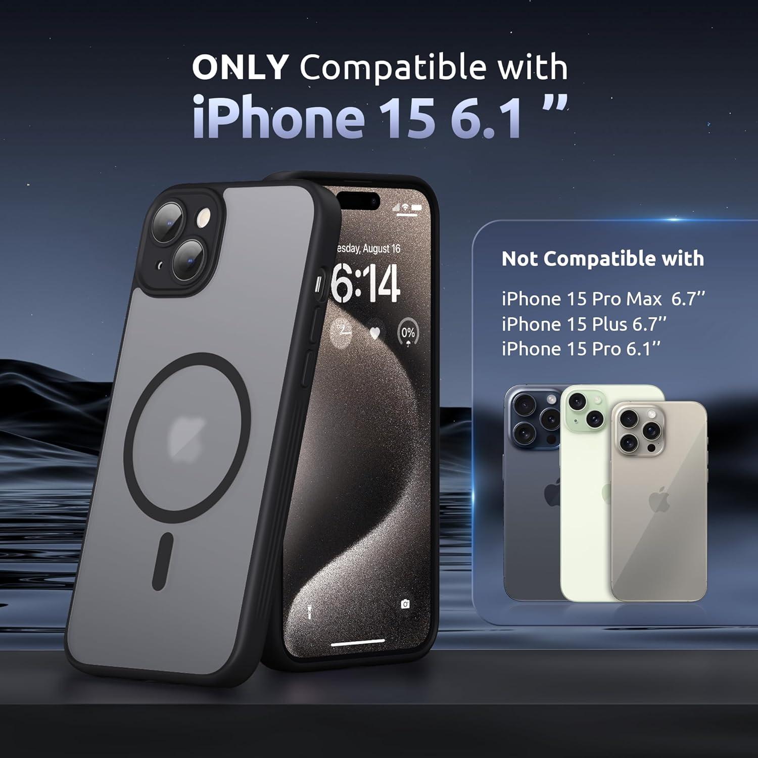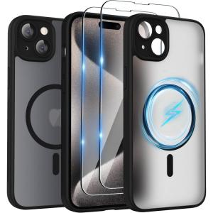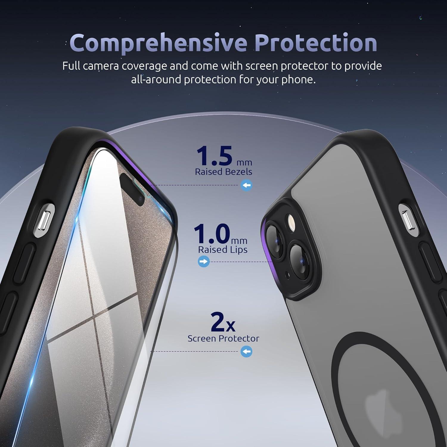 SURPHY Made for iPhone 15 Case Compatible with MagSafe, and Screen Protector 2 Pack, Translucent Matte Phone Case with Camera Protective 6.1 inch 2023, Black(Black)