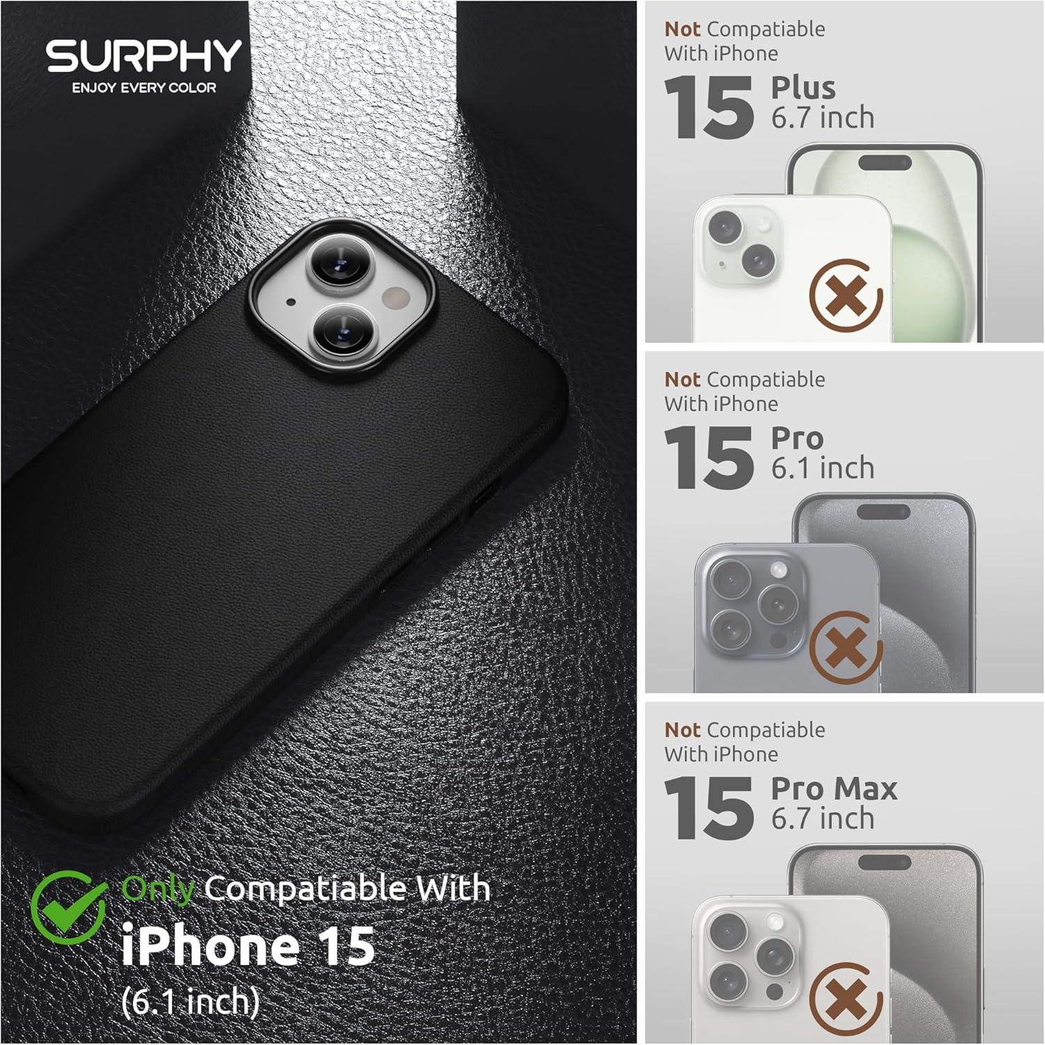 SURPHY Designed for iPhone 15 Leather Case with Screen Protector Compatible with MagSafe, Faux Leather Case (Metallic Buttons & Microfiber Lining) for 15 6.1 inch 2023, Brown(Black)