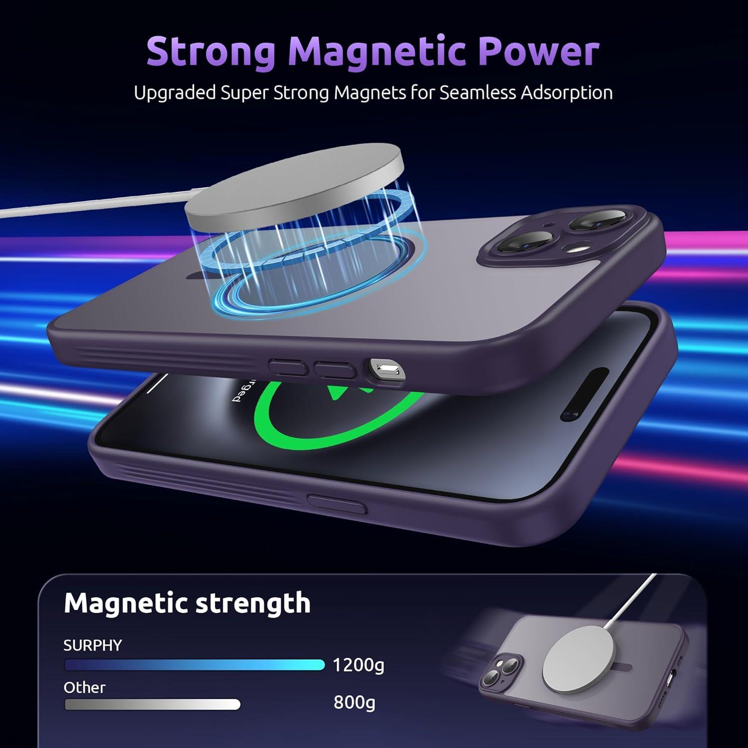 SURPHY Made for iPhone 15 Case Compatible with MagSafe, and Screen Protector 2 Pack, Translucent Matte Phone Case with Camera Protective 6.1 inch 2023, Black(Purple)