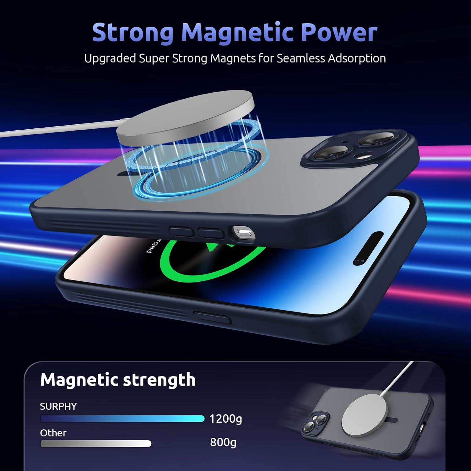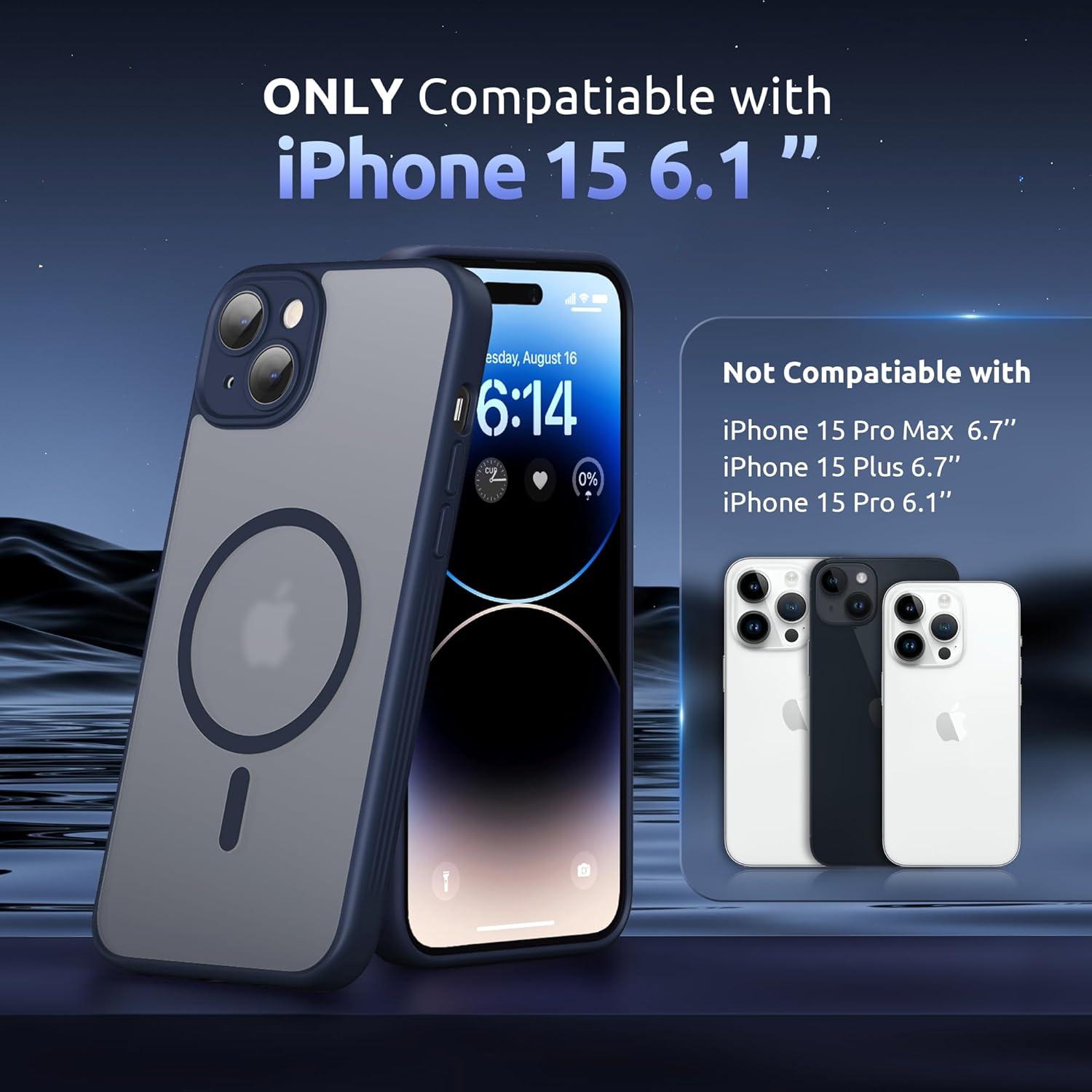 SURPHY Made for iPhone 15 Case Compatible with MagSafe, and Screen Protector 2 Pack, Translucent Matte Phone Case with Camera Protective 6.1 inch 2023, Black(Blue)