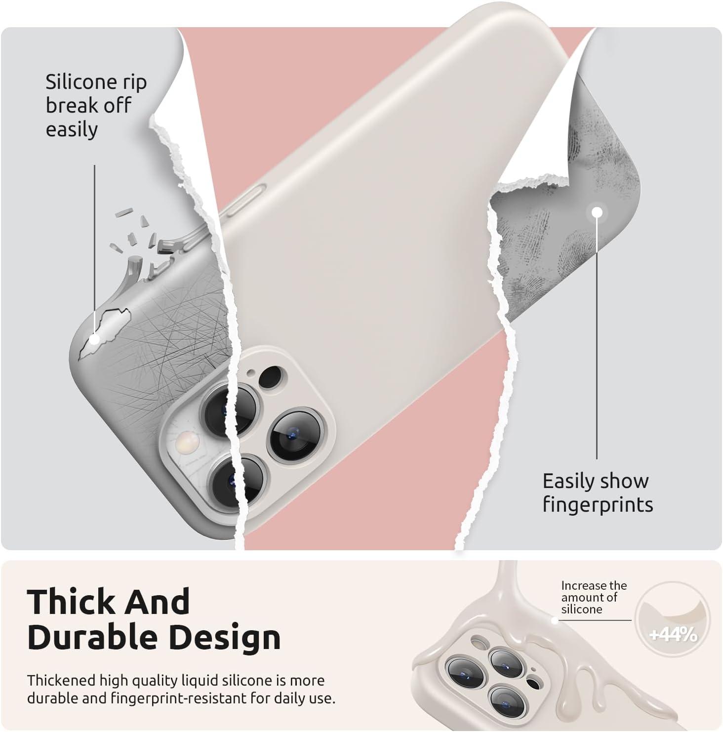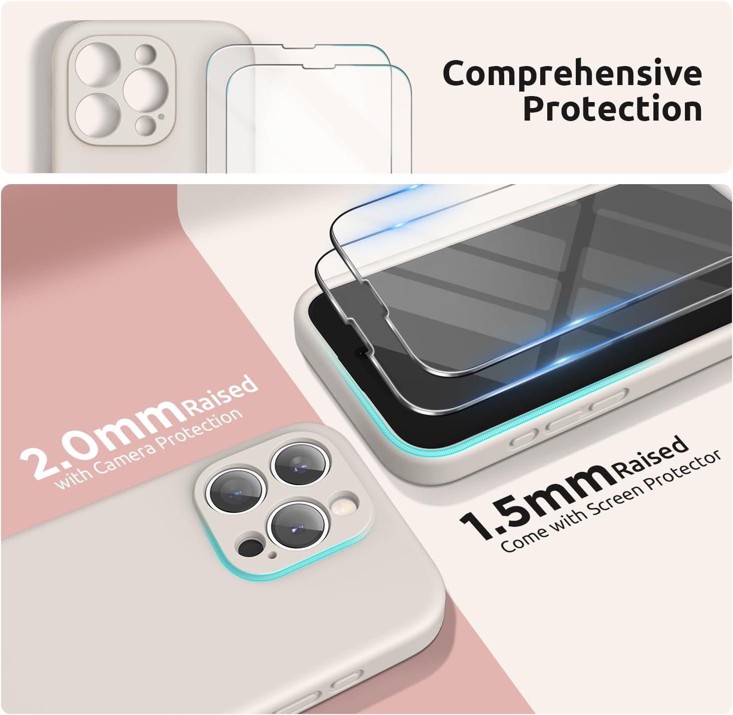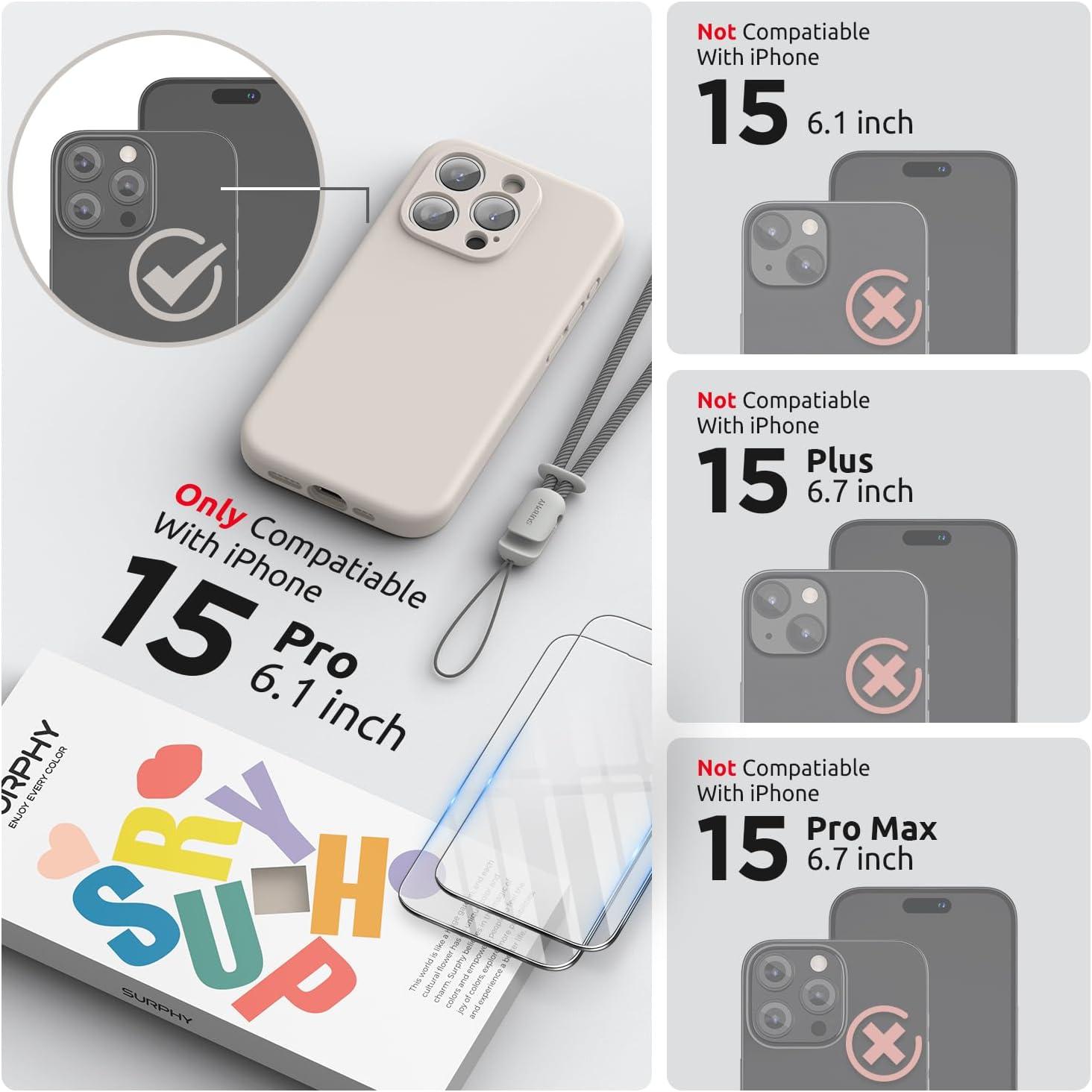 SURPHY Designed for iPhone 15 Pro Case with Screen Protector and Lanyard, Phone Strap and Liquid Silicone Phone Case (Camera Protective & Soft Microfiber Lining) 6.1 inch 2023, Lilac Purple(Stone)