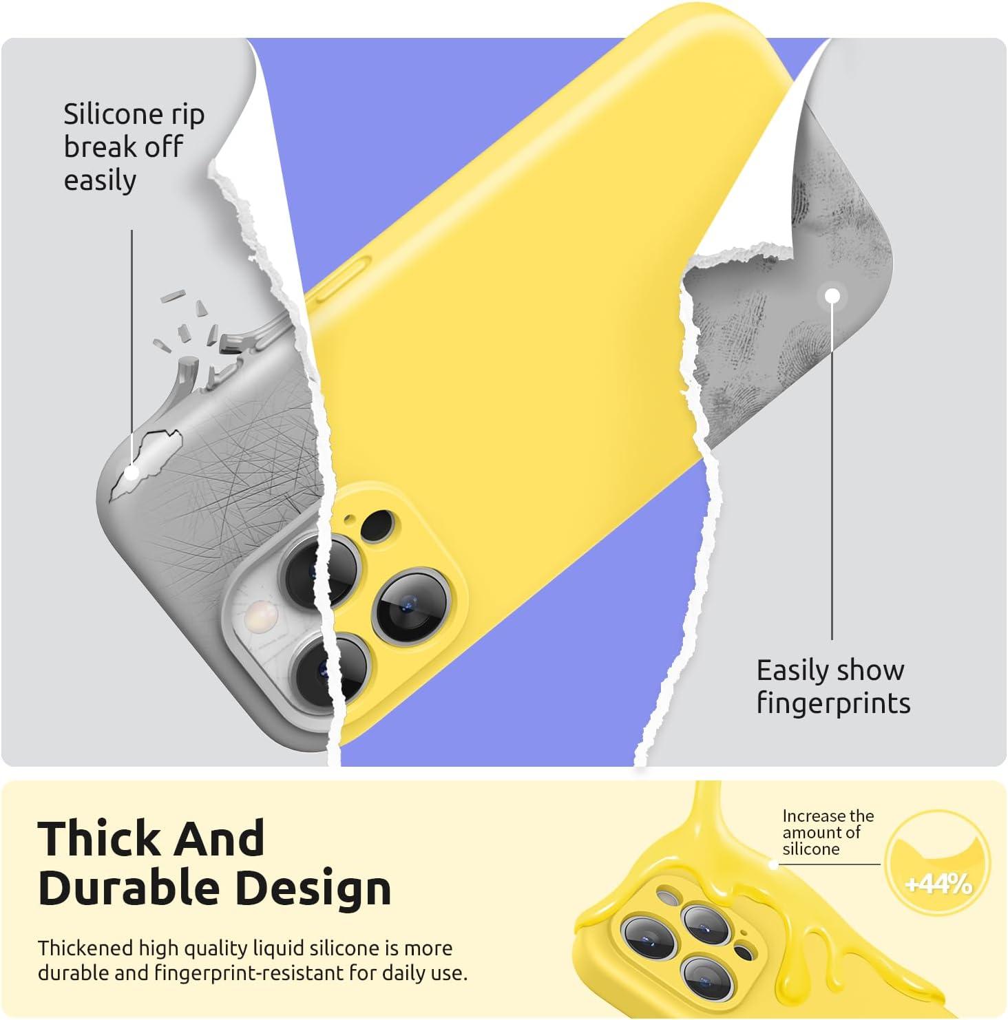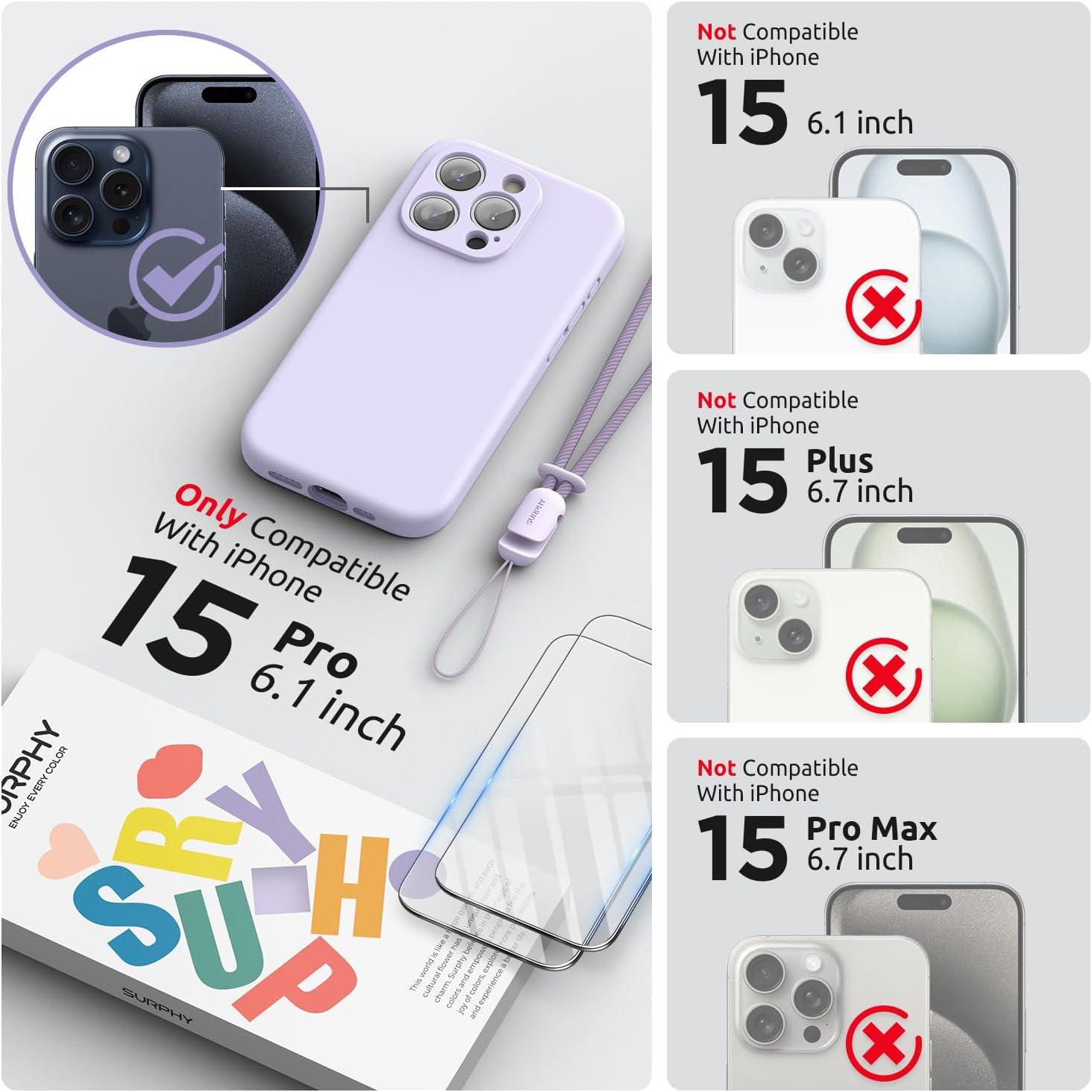 SURPHY Designed for iPhone 15 Pro Case with Screen Protector and Lanyard, Phone Strap and Liquid Silicone Phone Case (Camera Protective & Soft Microfiber Lining) 6.1 inch 2023, Lilac Purple(Lilac)