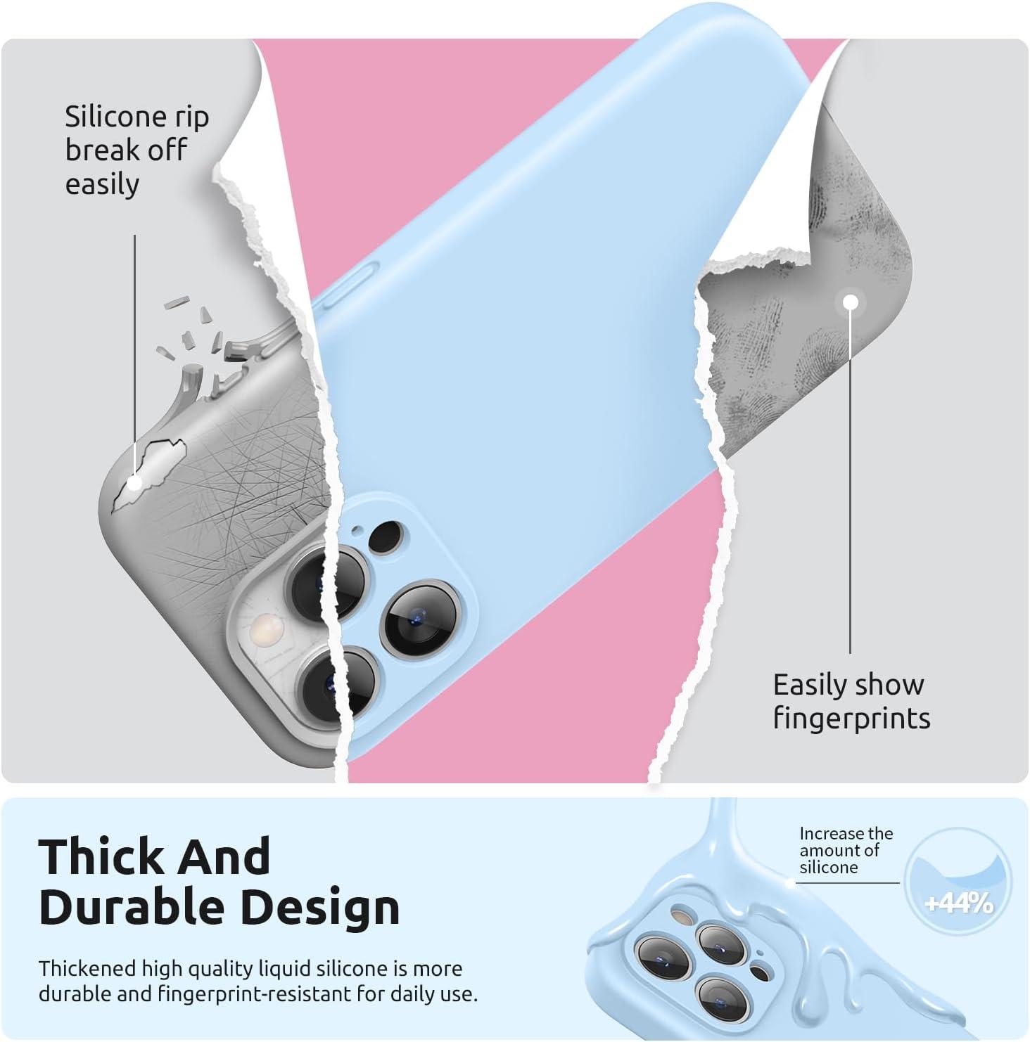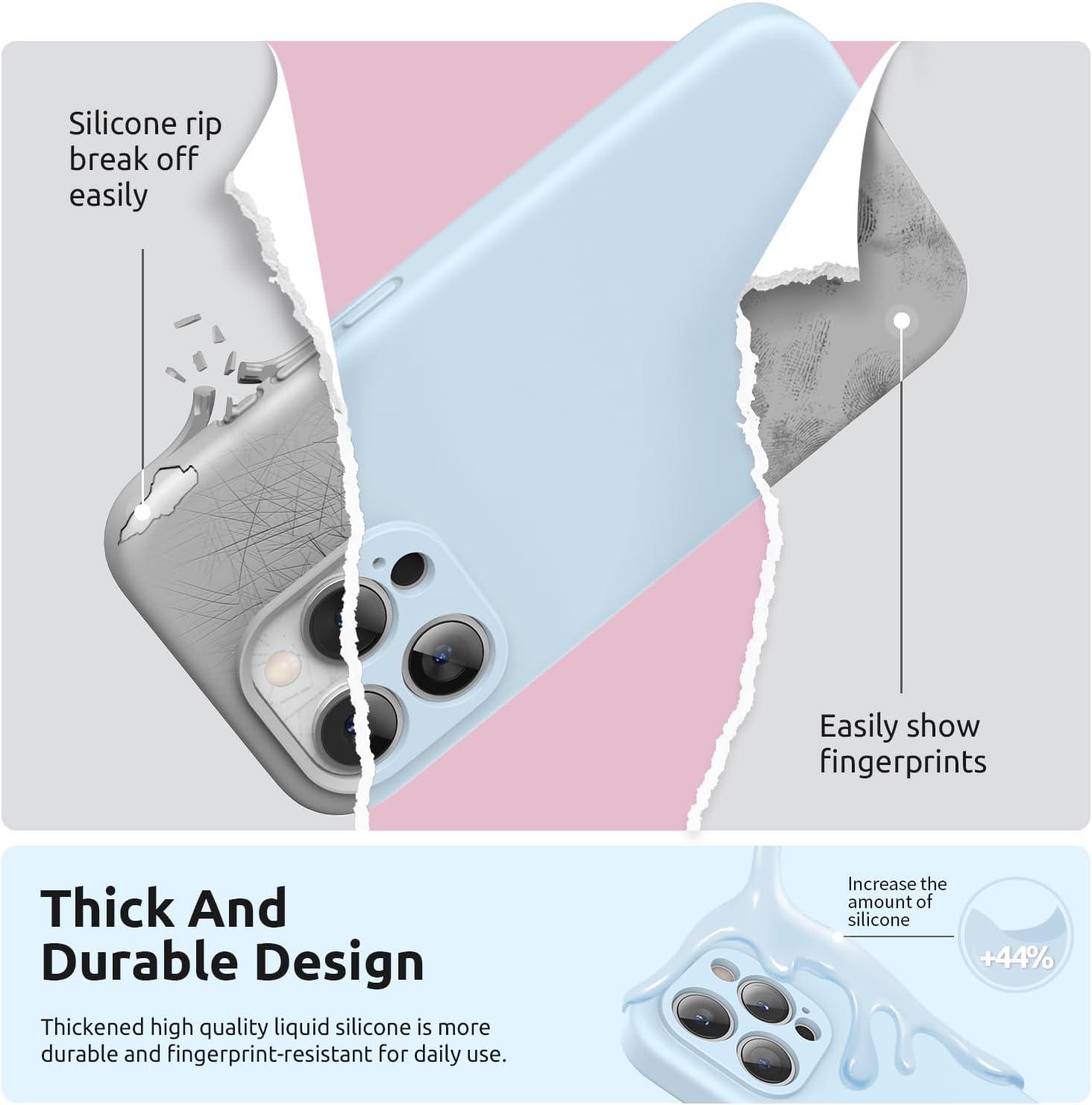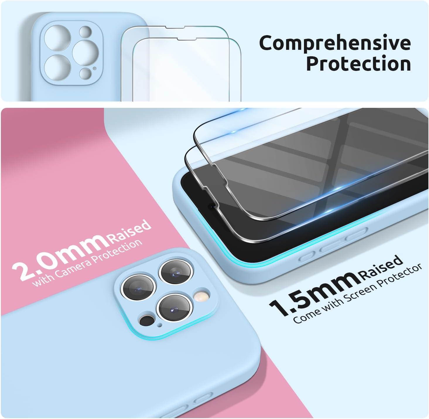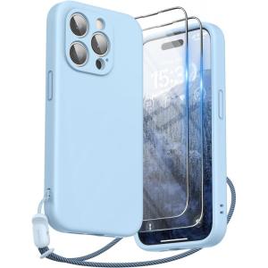 SURPHY Designed for iPhone 15 Pro Case with Screen Protector and Lanyard, Phone Strap and Liquid Silicone Phone Case (Camera Protective & Soft Microfiber Lining) 6.1 inch 2023, Lilac Purple(Cloud Blue)