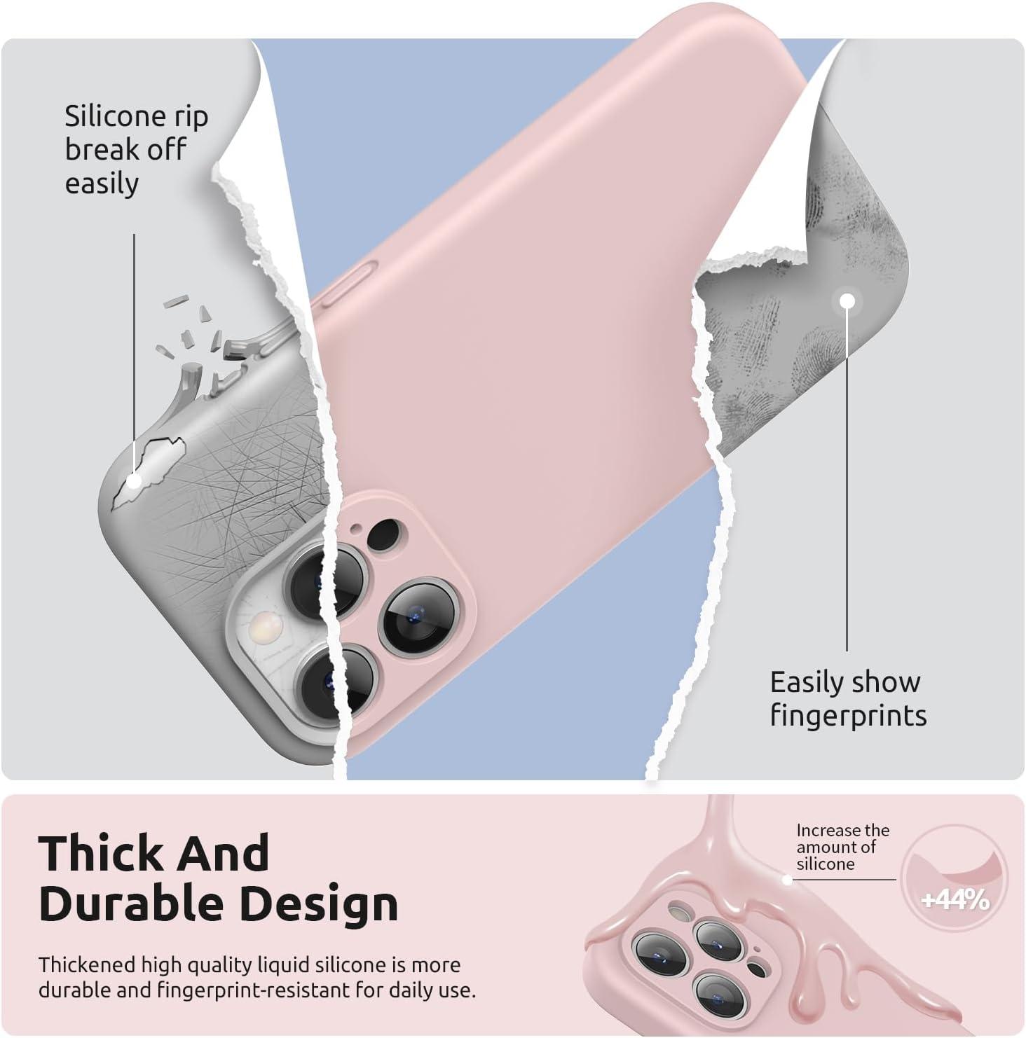 SURPHY Designed for iPhone 15 Pro Case with Screen Protector and Lanyard, Phone Strap and Liquid Silicone Phone Case (Camera Protective & Soft Microfiber Lining) 6.1 inch 2023, Lilac Purple(Pink Sand)