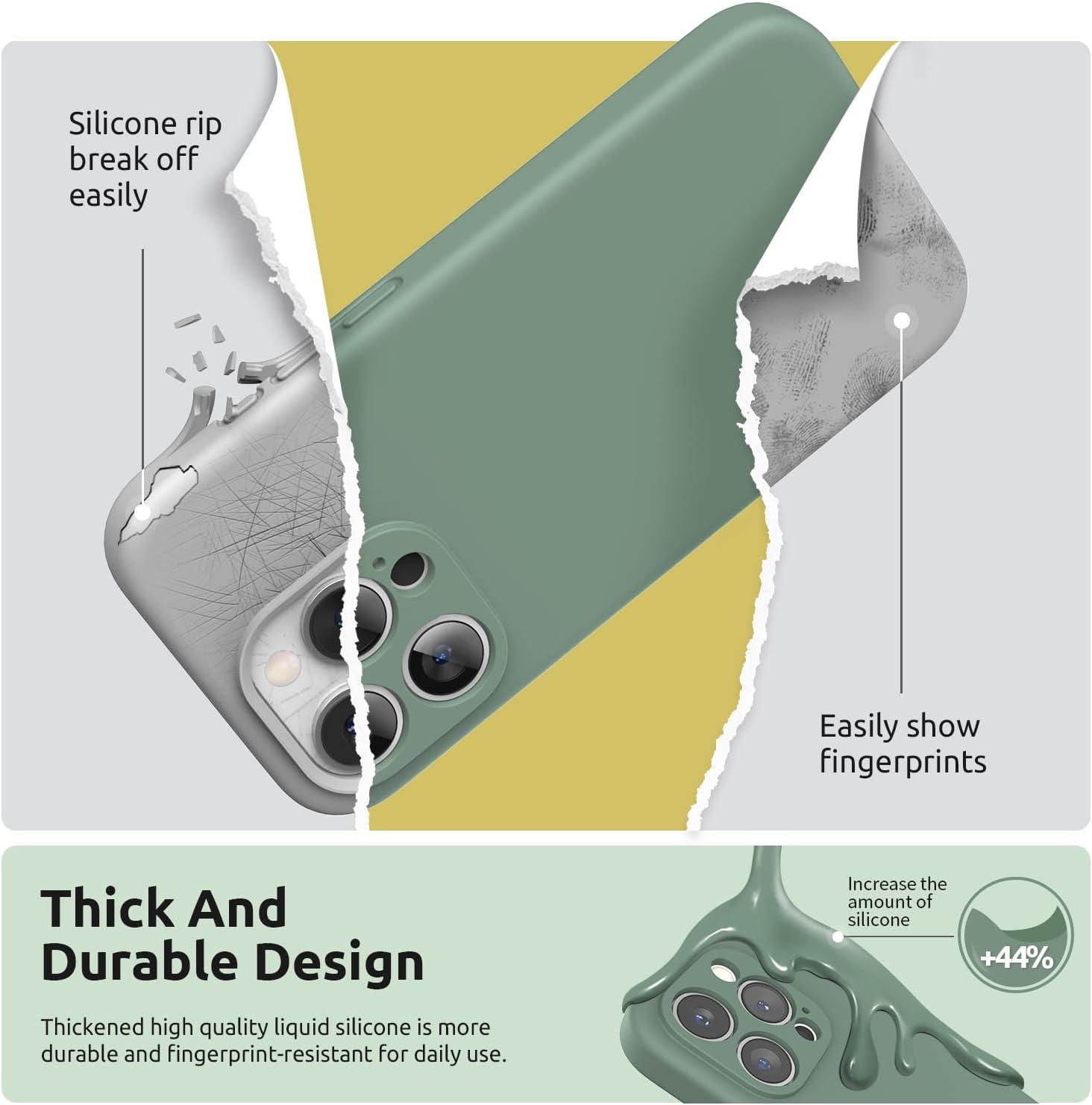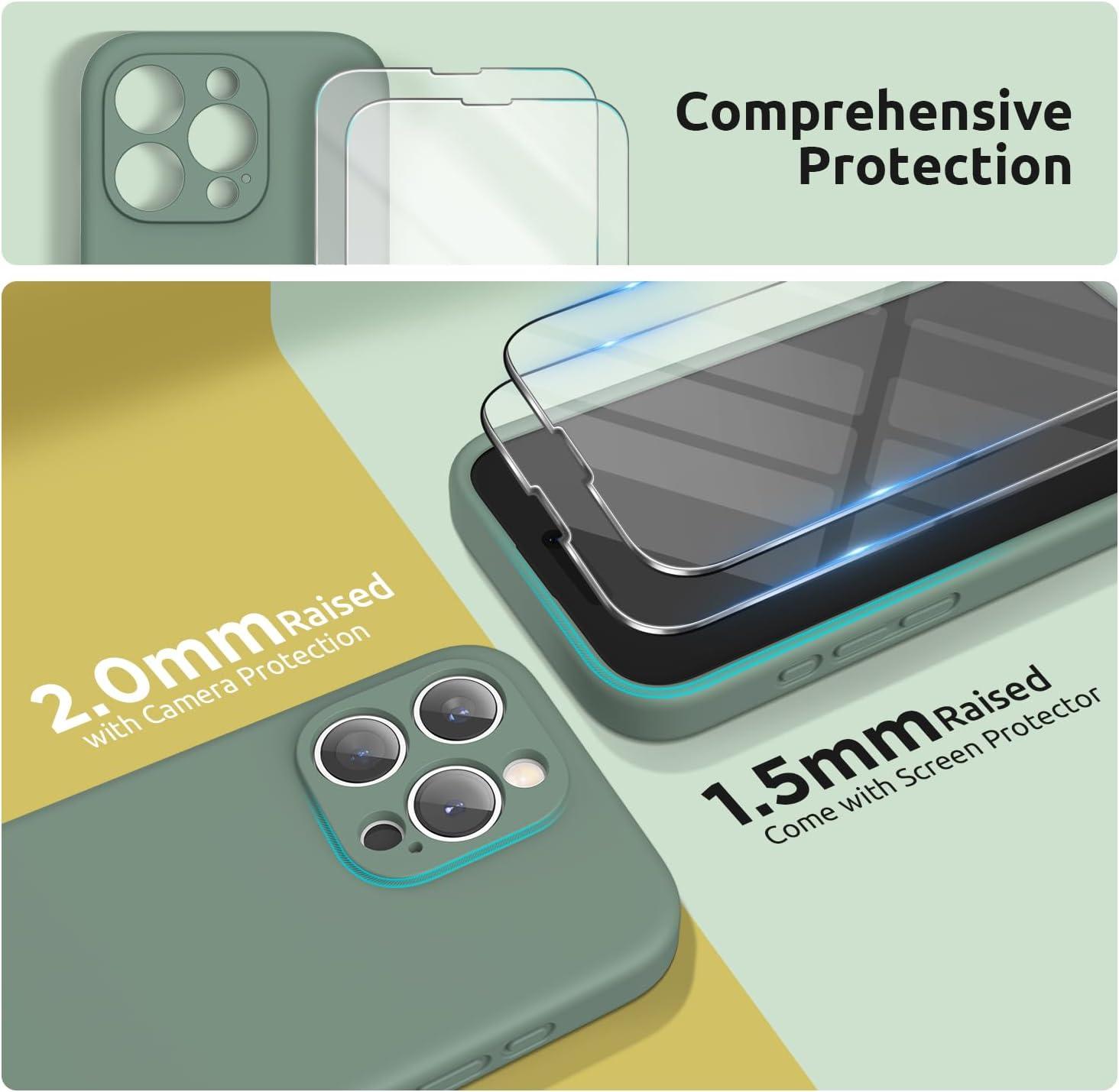 SURPHY Designed for iPhone 15 Pro Case Compatible with MagSafe (6.1 inch 2023), with 2 Pack Screen Protector, Liquid Silicone Phone Case (Camera Protective & Soft Microfiber Lining), Cactus Green(Clay)