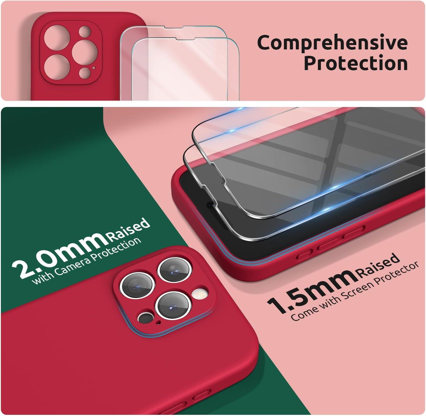 SURPHY Designed for iPhone 15 Pro Case Compatible with MagSafe (6.1 inch 2023), with 2 Pack Screen Protector, Liquid Silicone Phone Case (Camera Protective & Soft Microfiber Lining), Cactus Green(Red)