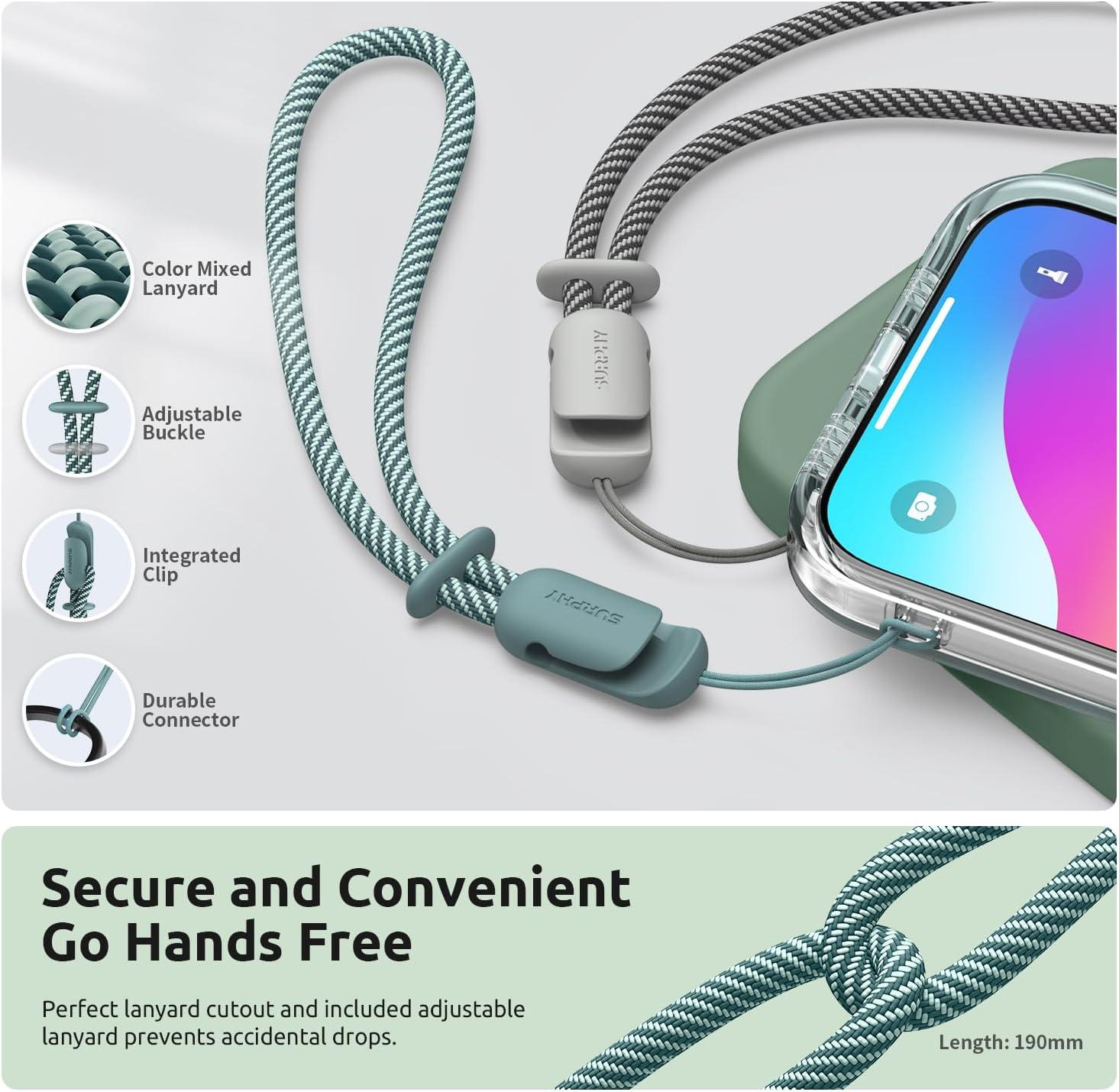 SURPHY Designed for iPhone 15 Pro Case with Screen Protector and Lanyard, Phone Strap and Liquid Silicone Phone Case (Camera Protective & Soft Microfiber Lining) 6.1 inch 2023, Lilac Purple(Mint Green)