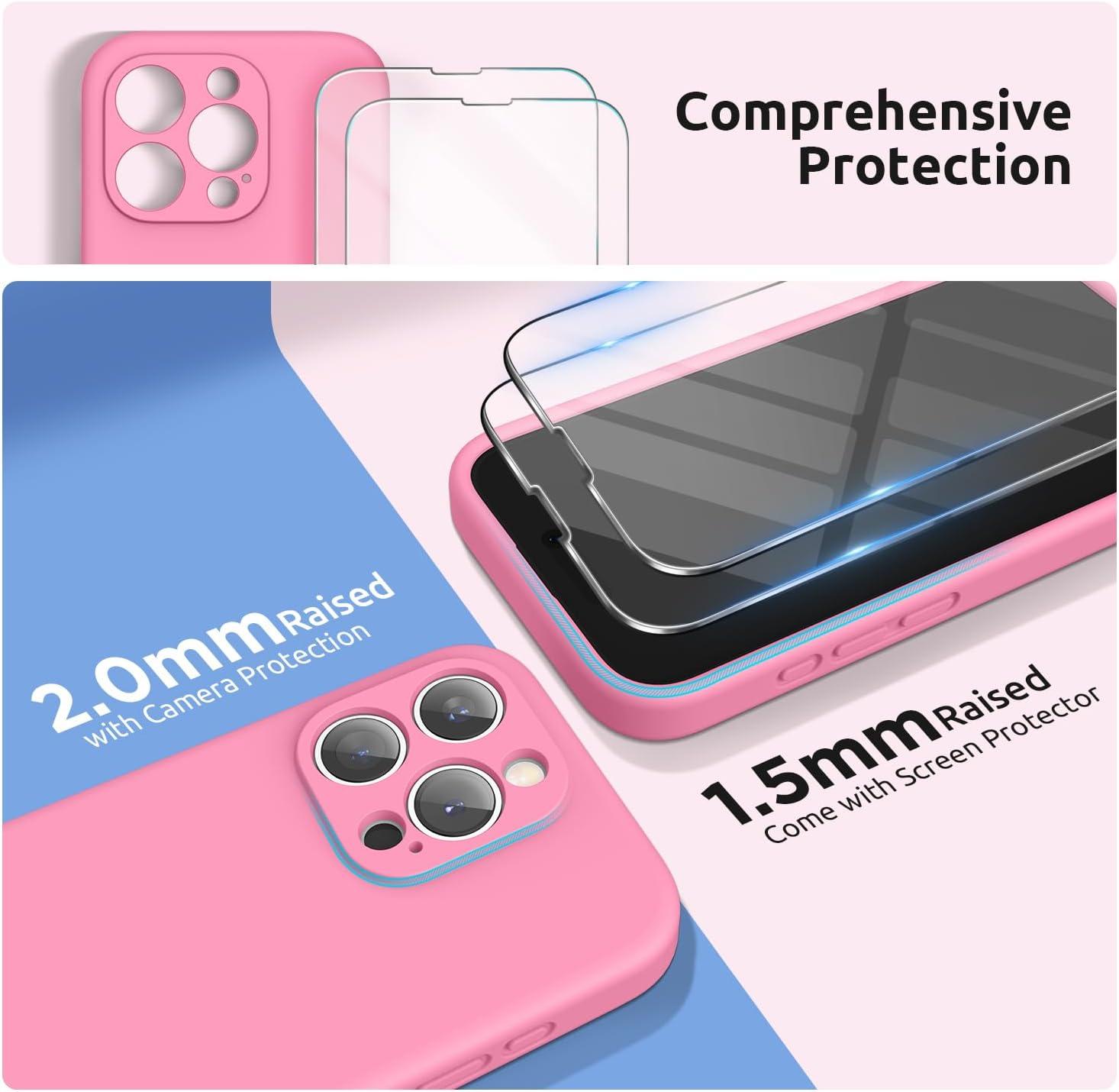 SURPHY Designed for iPhone 15 Pro Case Compatible with MagSafe (6.1 inch 2023), with 2 Pack Screen Protector, Liquid Silicone Phone Case (Camera Protective & Soft Microfiber Lining), Cactus Green(Pink)