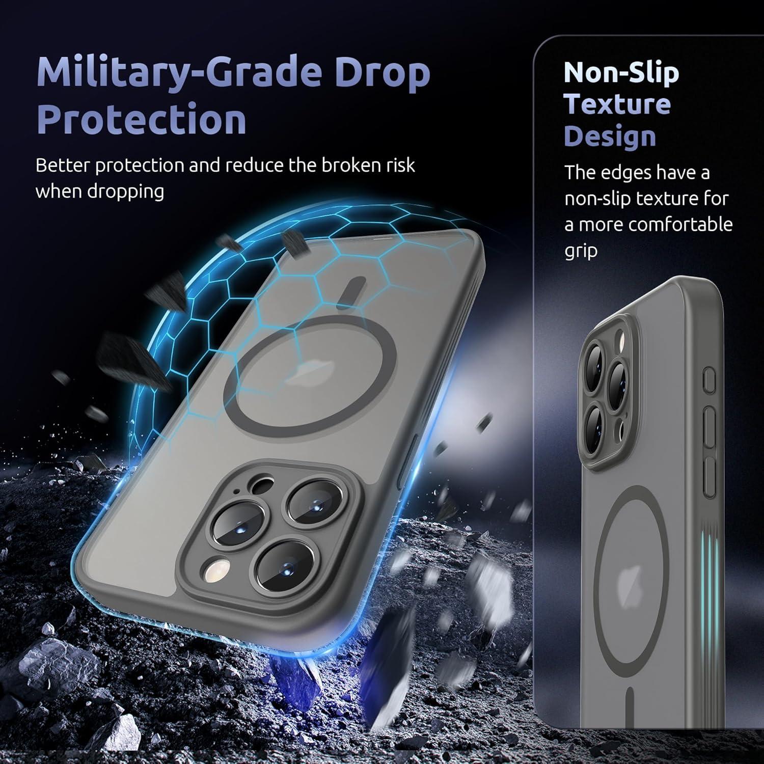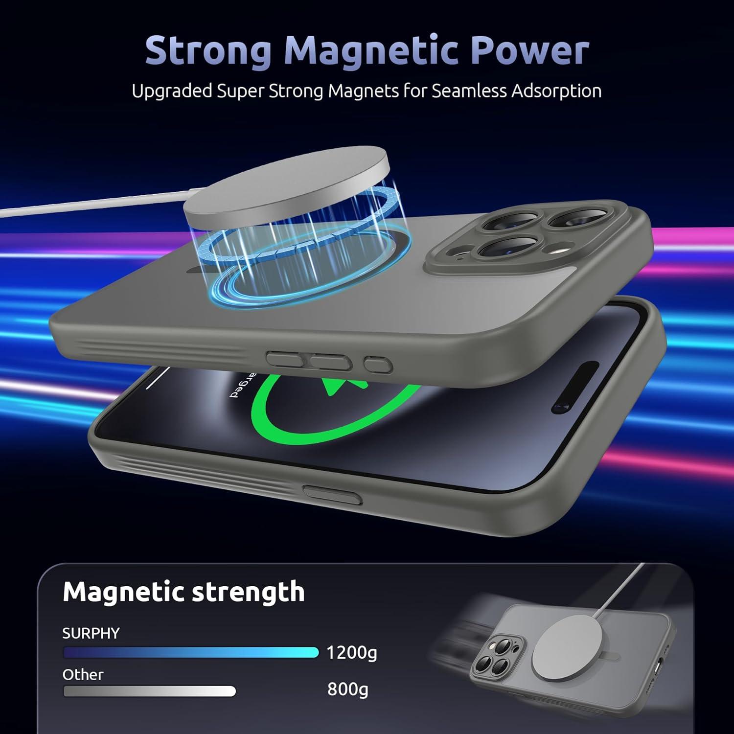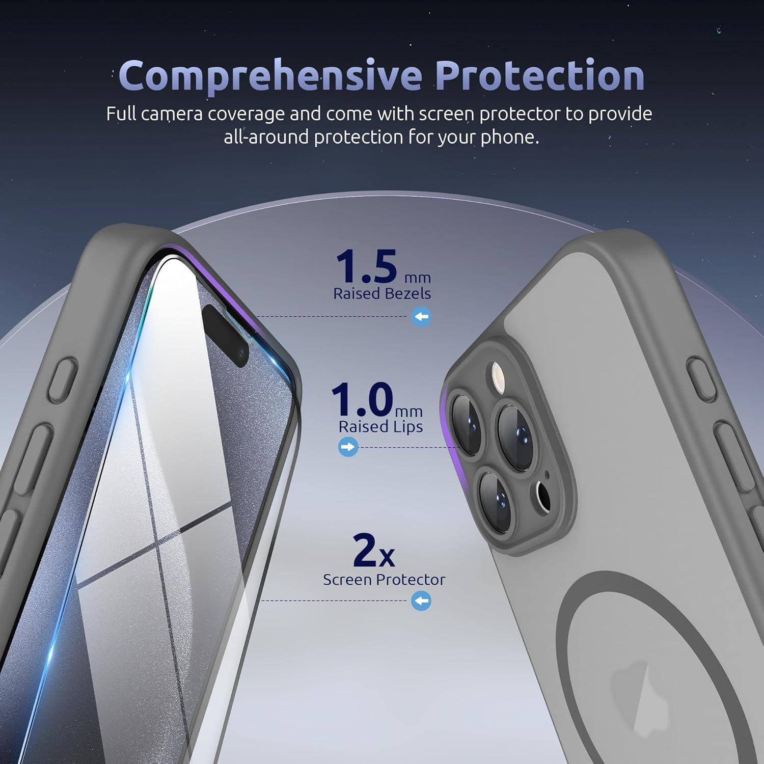SURPHY Made for iPhone 15 Pro Case Compatible with MagSafe, and Screen Protector 2 Pack, Translucent Matte Phone Case with Camera Protective 6.1 inch 2023, Black(Gray)