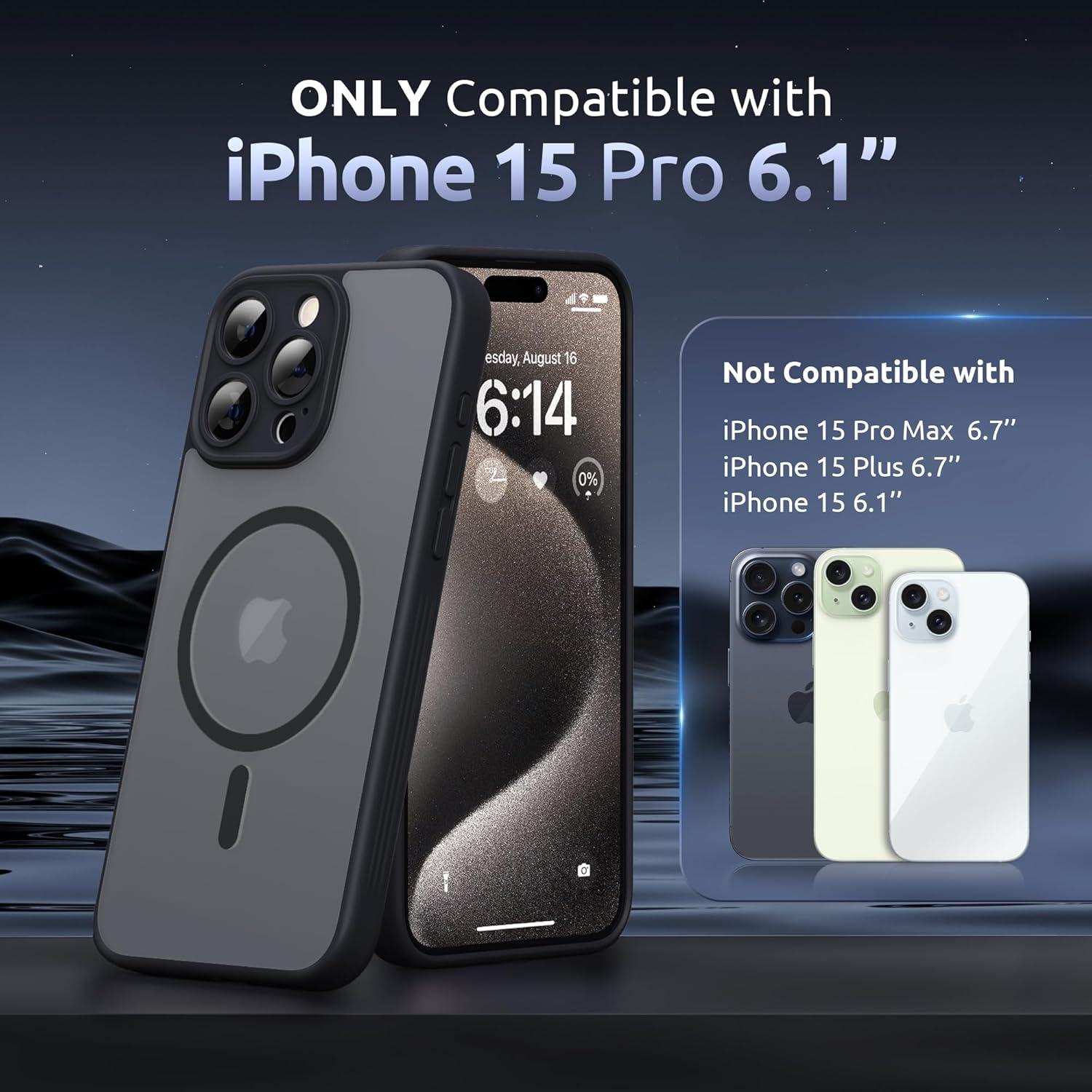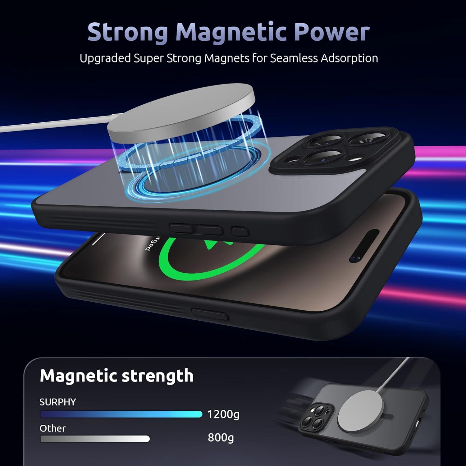 SURPHY Made for iPhone 15 Pro Case Compatible with MagSafe, and Screen Protector 2 Pack, Translucent Matte Phone Case with Camera Protective 6.1 inch 2023, Black(Black)